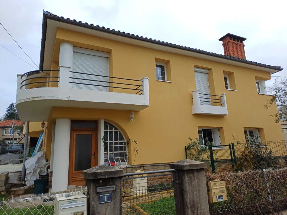Maison sur sous sol avec garage et entrée indépendante. Maison récemment restaurée : Isolation par l'extérieur, Pompe à chaleur, Chauffeau thermodynamique, Climatisation. 1 er niveau : séjour, cuisine ouverte, salon, salle d'eau, 3 chambres. Grande terrasse 31 m2 donnant sur jardin clos avec cabanon 20 m2. Au RDC : Appartement T2 de 47 m2 avec jardin loué 327 euros. Cellier 8 m2. Renouvellement des diagnostiques en cours suite aux travaux. raccordement au tout à l'égout. Prise extérieur recharge électrique. Très proche des commodités et du parc Capel