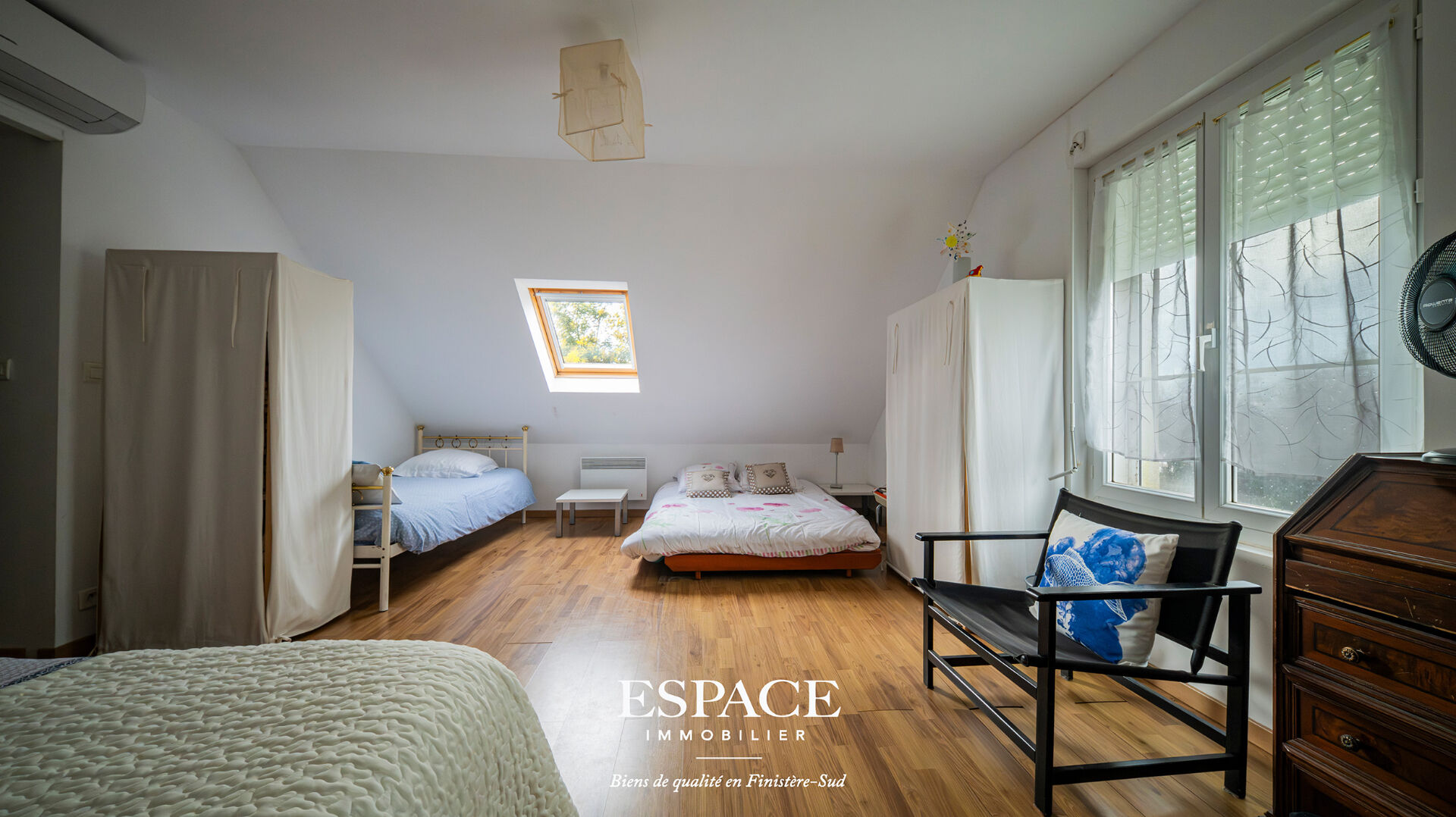 Située dans l'un des quartiers les plus prisés de Concarneau, au coeur des Sables Blancs, cette maison bénéficie du calme d'un environnement résidentiel, à seulement quelques pas du bord de mer et des plages. Implantée sur un terrain clos de 840 m², elle séduit par son important potentiel d'accueil et de réaménagement, s'adaptant à différents projets de vie. Cette maison constitue une réelle opportunité pour une famille nombreuse, en résidence principale comme secondaire. Elle offre également la possibilité d'une vie confortable en grande partie de plain-pied, une configuration rare et recherchée. Le rez-de-chaussée s'articule autour d'un salon séjour lumineux avec cheminée insert, ouvert sur une cuisine aménagée et équipée. Ce niveau comprend également trois chambres, une salle de bains avec WC, une salle d'eau avec WC, une lingerie, ainsi qu'un garage avec espace de stockage. A l'étage, une pièce palière distribue une kitchenette, cinq chambres dont une de type dortoir, une salle de bains et un WC indépendant. A l'extérieur, le jardin clos, la terrasse ensoleillée et l'abri de jardin composent un cadre paisible, propice à la détente et à la convivialité. Une maison qui se prête naturellement à la vie de famille et aux plaisirs du bord de mer. Un bien sélectionné et présenté par ESPACE IMMOBILIER - spécialiste des belles maisons et des beaux appartements en Finistère Sud. Les informations sur les risques auxquels ce bien est exposé sont disponibles sur le site Géorisques : [www.georisques.gouv.fr](http://www.georisques.gouv.fr). (3.73 % honoraires TTC à la charge de l'acquéreur.)