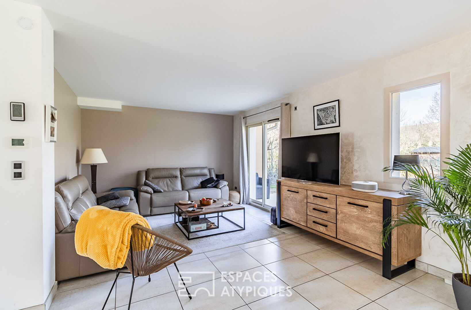 Sur la commune de Pouilly le Monial, nichée au fond d'une impasse privée et discrète, à proximité immédiate des commodités, cette maison vous séduira par son cadre rare et préservé. Un grand jardin arboré, traversé par un ruisseau apaisant, ainsi qu'un espace piscine intimiste offrent un véritable havre de paix où chaque instant invite à la détente. Pensée pour la vie de famille, la villa propose de beaux volumes lumineux, une ambiance chaleureuse et des prestations soignées. Dès l'entrée, un hall spacieux conduit vers un vaste séjour ouvert sur l'extérieur, en lien direct avec une cuisine entièrement équipée, idéale pour recevoir. Un bureau indépendant au rez-de-chaussée permet de télétravailler dans le calme, sans être isolé du reste de la maison. A l'étage, la suite parentale, avec dressing et salle de bains privative, constitue un véritable cocon. Trois autres chambres ainsi qu'une grande salle de bains complètent harmonieusement l'espace nuit. A seulement 14 minutes de la gare et de l'autoroute, cette maison bénéficie d'un chauffage par géothermie, offrant un classement énergétique en C, d'un garage de 40 m² et d'un environnement particulièrement calme. Prête à vivre, elle n'attend plus que vous. Un véritable coup de coeur pour ceux qui recherchent le charme, la nature et la proximité des commerces, écoles et transports, sans compromis sur l'intimité. CLASSE ENERGIE : C / CLASSE CLIMAT : A Montant moyen estimé des dépenses annuelles d'énergie pour un usage standard, indexées aux années 2021, 2022, 2023 : entre 1210 euros et 1690 euros (abonnement compris) Contact : Clément - 06 68 34 94 66 Clément GIRAUD (EI) Agent Commercial - Numéro RSAC : 828 928 101 - Villefranche.