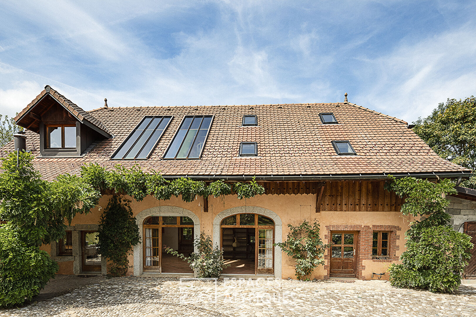 Idéalement située au calme sur la très agréable commune d'Arbusigny, à proximité immédiate de la nature et facile d'accès depuis Genève, cette bâtisse déploie tout son charme sur une parcelle bucolique de 2 300 m². Fruit d'une rénovation passionnée et atypique, cette ancienne ferme a su conserver son âme authentique, proposant aujourd'hui une surface d'environ 238 m² habitables (340 m² utiles) aux volumes spectaculaires. La visite débute par un rez-de-chaussée époustouflant, entièrement décloisonné, où la hauteur sous plafond vertigineuse et la charpente apparente donnent le ton. Baignée de lumière grâce à un puits de jour central, cette vaste pièce de vie réunit salon, salle à manger et cuisine autour d'une cheminée artisanale, promesse de soirées conviviales au coin du feu. L'espace nuit se découvre à l'étage, accessible par deux escaliers de style. Il dessert cinq chambres mansardées à l'atmosphère feutrée et singulière ainsi qu'une salle de bain et une salle d'eau. Le dernier niveau, véritable cocon sous les toits, abrite une grand coin détente habillé de bois pouvant aisément se transformer en bureau cosy ou bien salle de cinéma ou encore salle de jeux selon les envies ou les besoins de chacun. Les extérieurs sont une invitation à la douceur de vivre avec un jardin entouré de champs et de bois, agrémenté d'un préau, d'un brasero et d'un barbecue en pierres pour de beaux moments de partage aux beaux jours. Pour parfaire ce bien unique, un atelier lumineux, une cave à vin et une buanderie offrent des espaces de rangement et de création très appréciables. CLASSE ÉNERGIE : E / CLASSE CLIMAT : C Montant moyen estimé des dépenses annuelles d'énergie pour un usage standard, établi à partir des prix de l'énergie de l'année 2021 : entre 3470 Euros et 4760 Euros. Les informations sur les risques auxquels ce bien est exposé sont disponibles sur le site Géorisques : www.georisques.gouv.fr. Contact : Ariane 06 81 30 65 84 Ariane VINCIGUERRA (EI) Agent Commercial - Numéro RSAC : 835 156 589 - Annecy.