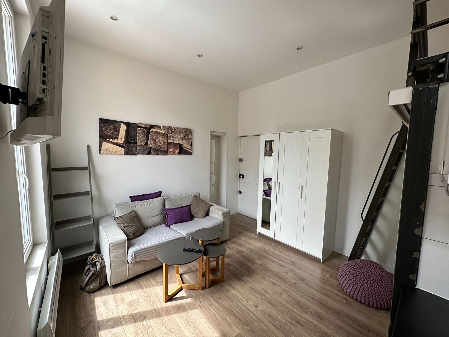Proche centre appartement de type studio meublé entièrement refait à neuf comprenant une pièce principale avec coin cuisine équipée, couchage mezzanine, salle d'eau, calme, vue jardin, plein sud.