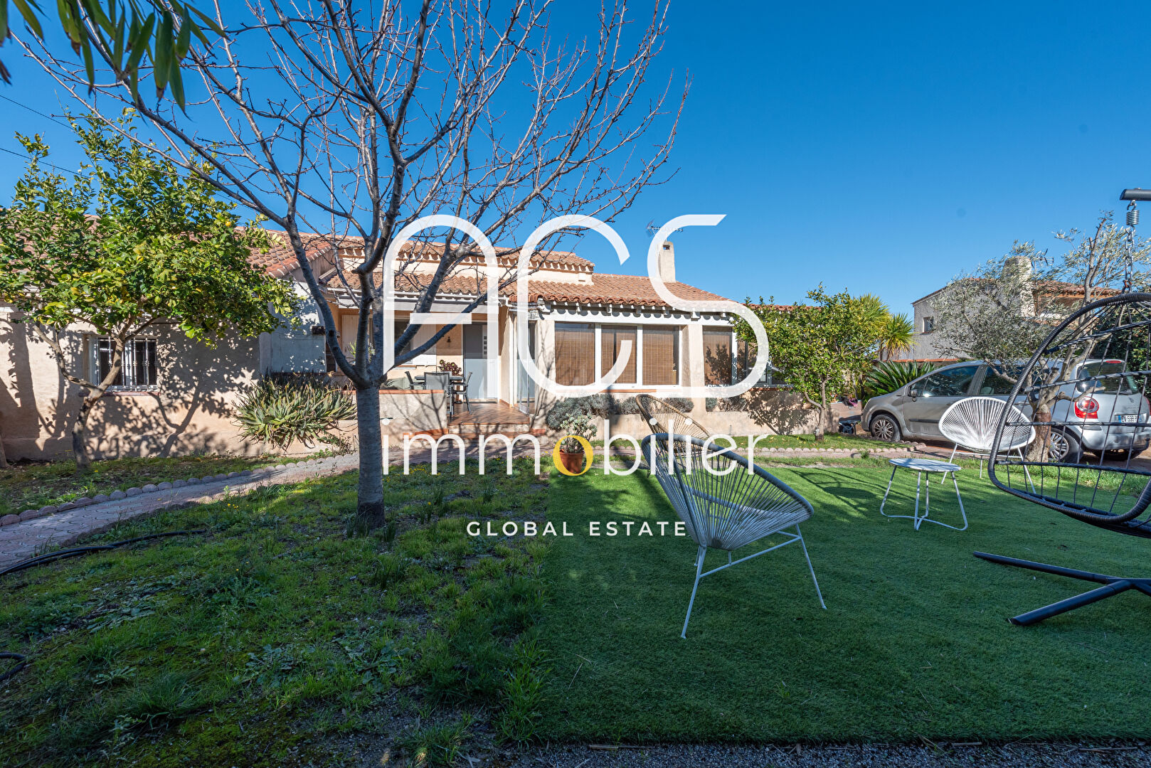 En EXCLUSIVITÉ, ACS IMMOBILIER, vos Agences en Conseils et Services Immobilier vous proposent à la vente, sur la commune de CHATEAUNEUF-LES-MARTIGUES, une maison de plain pied de Type 4 d'environ 109m2 ( 91m2 carrez à laquelle s'ajoute une véranda de 18m2), au calme absolu, composée : d'une entrée, d'une cuisine aménagée et équipée, d'un vaste séjour, d'une véranda lumineuse, de 3 chambres, d'une salle d'eau et d'un wc. Le tout sur une parcelle d'environ 500m² avec une terrasse plein sud et une seconde au nord pour profiter d'un peu de fraicheur l'été, et d'un beau jardin. Vous bénéficierez également d'un grand garage, d'une cave et d'une dépendance de 13m2. Copropriété de 2 lots, pas de charges. Prix : 477 000 euros F.A.I. ACS IMMOBILIER - Carole MARTIN RCS 808 407 936 Contactez-nous au 04.42.02.76.73 Copropriété de 2 lots - dont 2 lots habitation.(Pas de procédure en cours).