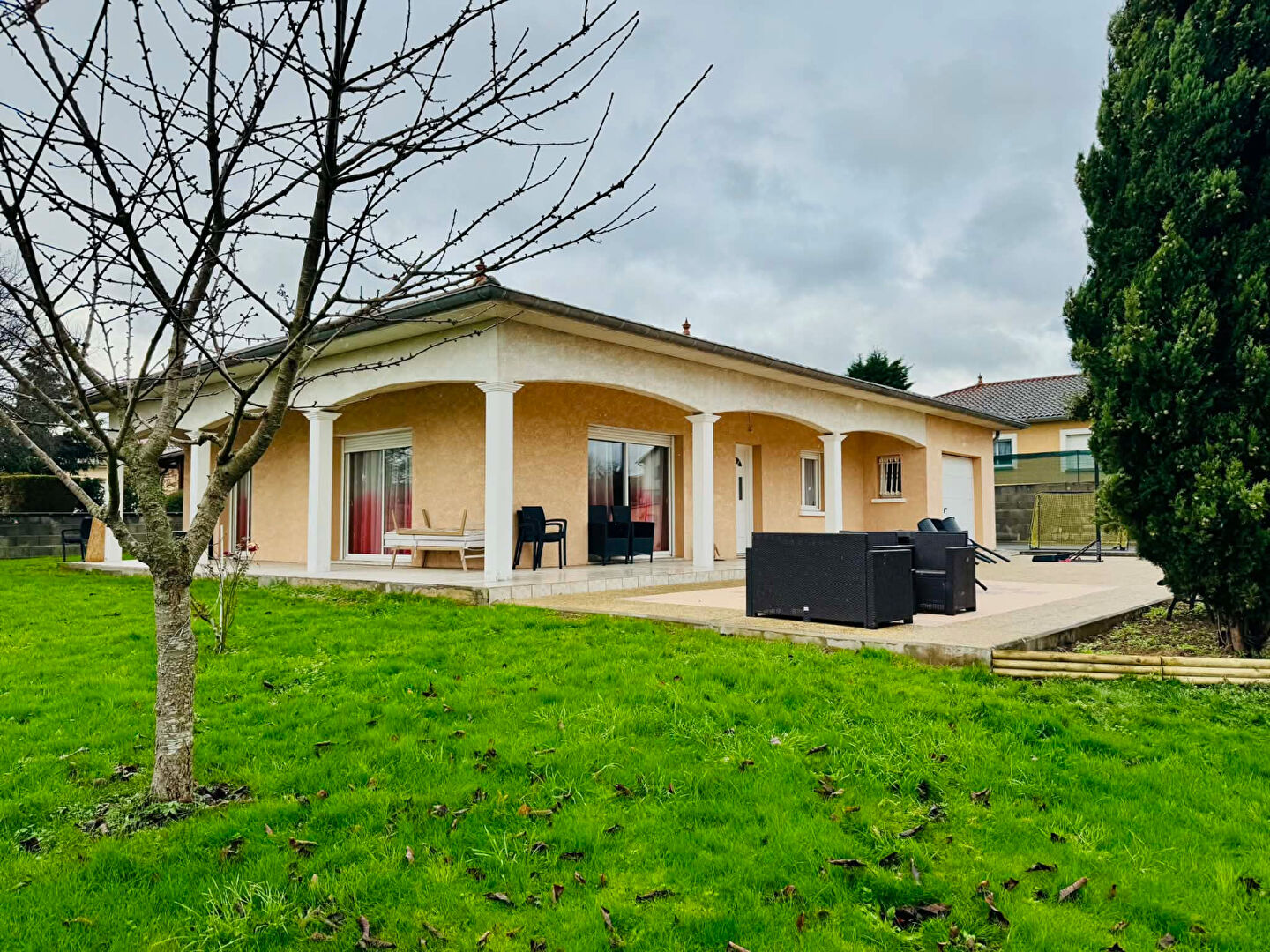 Située à Mably, dans un secteur résidentiel calme et recherché, à proximité immédiate de la zone commerciale et des axes principaux de Roanne, cette villa de plain-pied construite en 2003 constitue une opportunité rare sur le marché local. Implantée sur une parcelle plate et agréable d'environ 910 m², elle développe 140 m² habitables et offre un cadre de vie confortable, fonctionnel et lumineux, parfaitement adapté à une vie de famille. Dès l'entrée, la maison s'ouvre sur un vaste espace de vie de plus de 50 m² regroupant une cuisine moderne aménagée et équipée avec îlot central, une salle à manger conviviale et un salon baigné de lumière. Les larges ouvertures orientées sud-est permettent de profiter pleinement de la luminosité naturelle et offrent un accès direct sur le jardin, idéal pour les beaux jours. L'agencement fluide et les volumes généreux apportent une véritable sensation d'espace et de confort. L'espace nuit se compose de trois grandes chambres, dont une belle chambre parentale d'environ 16 m² permettant l'aménagement d'un dressing et d'un espace bureau tout en conservant aisément un couchage en 180 cm. Une salle d'eau moderne équipée d'une douche à l'italienne, deux WC dont un indépendant ainsi qu'un cellier buanderie viennent compléter cet espace, répondant parfaitement aux besoins du quotidien. Le garage de 19,60 m², actuellement aménagé en cuisine d'été, buanderie et espace de stockage, est intégré à la surface habitable. Il peut être transformé très facilement en quatrième chambre, bureau ou espace professionnel grâce à la présence d'un point d'eau existant, offrant ainsi un réel potentiel d'évolution du bien. La maison bénéficie de prestations confortables avec un chauffage au gaz de ville assuré par une chaudière à condensation , des menuiseries PVC double vitrage, des volets roulants électriques et un raccordement au tout-à-l'égout. Plusieurs stationnements extérieurs complètent l'ensemble ainsi qu'un box de stockage . Classée en énergie C, cette villa offre un bon équilibre entre confort thermique et maîtrise des consommations. Rare sur le secteur de Mably, ce bien séduit par son plain-pied, son environnement paisible, sa proximité immédiate des commodités et son excellent rapport emplacement, volumes et potentiel. Une maison clé en main à découvrir rapidement. Michaël BOYET (EI) Agent Commercial - Numéro RSAC : 530 294 982 - ROANNE.