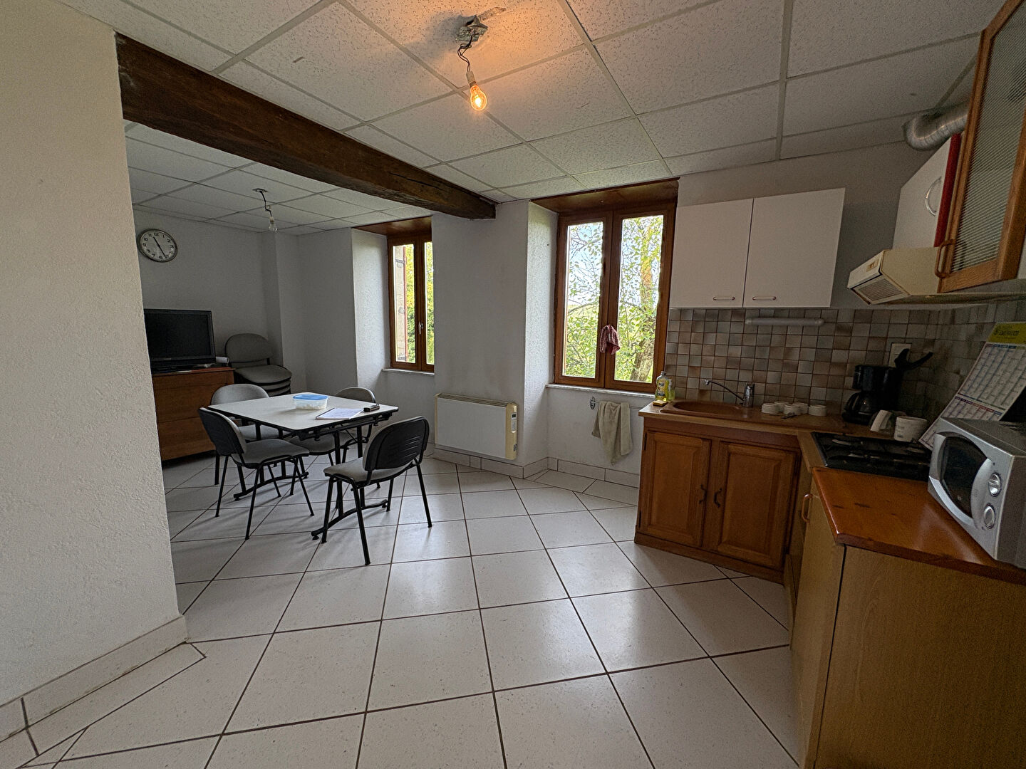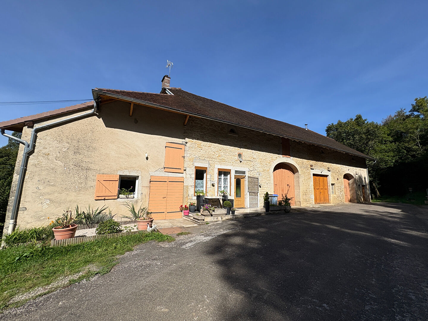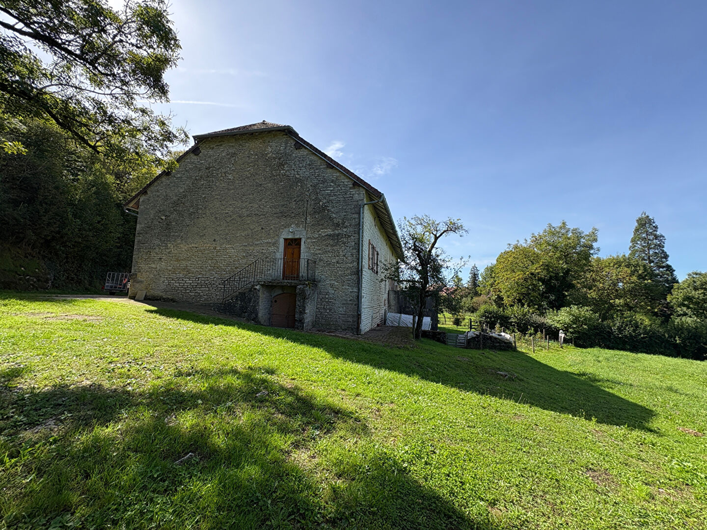 Corps de ferme individuel sur 1,2 hectare de terrain libre de locations composé de deux logements. Pré avec jolie vue sur la nature environnante, à 70 mètres du premier voisin et en lisère de forêt. Un logement de plain-pied exposé Est-Ouest et comprenant : entrée, cuisine, pièce de vie, salle d'eau, toilettes d'une surface de 76 m² et un studio d'une surface de 28 m². Très grandes dépendances au sol : surface de 220 m² et greniers aménageables sur la totalité du bâtiment. Belle cave voutée. Bien raccordé au tout à l'égout, chauffage central, menuiseries double vitrage. Pour toute demande contactez votre agent Guillaume CHASSOT par SMS au 06 44 26 13 59 ou mail gchassot@gc-ifs.com Carte pro: CPI 3901 2019 000 041 682 (CCI du Jura). RCS : 814 064 515. Stéphanie ROY-MENOUILLARD (EI) Agent Commercial - Numéro RSAC : 811564426 - Lons Le Saunier.