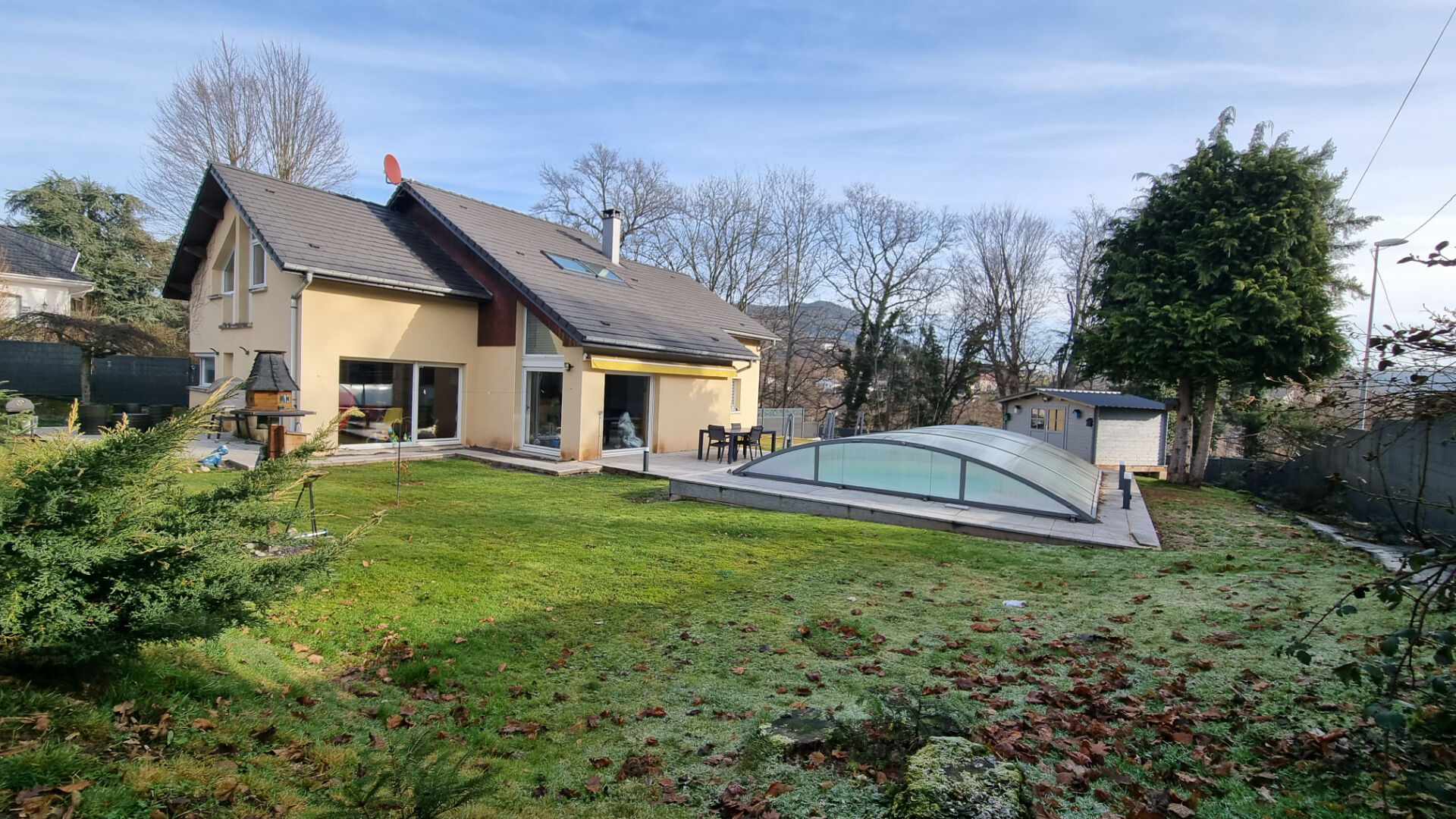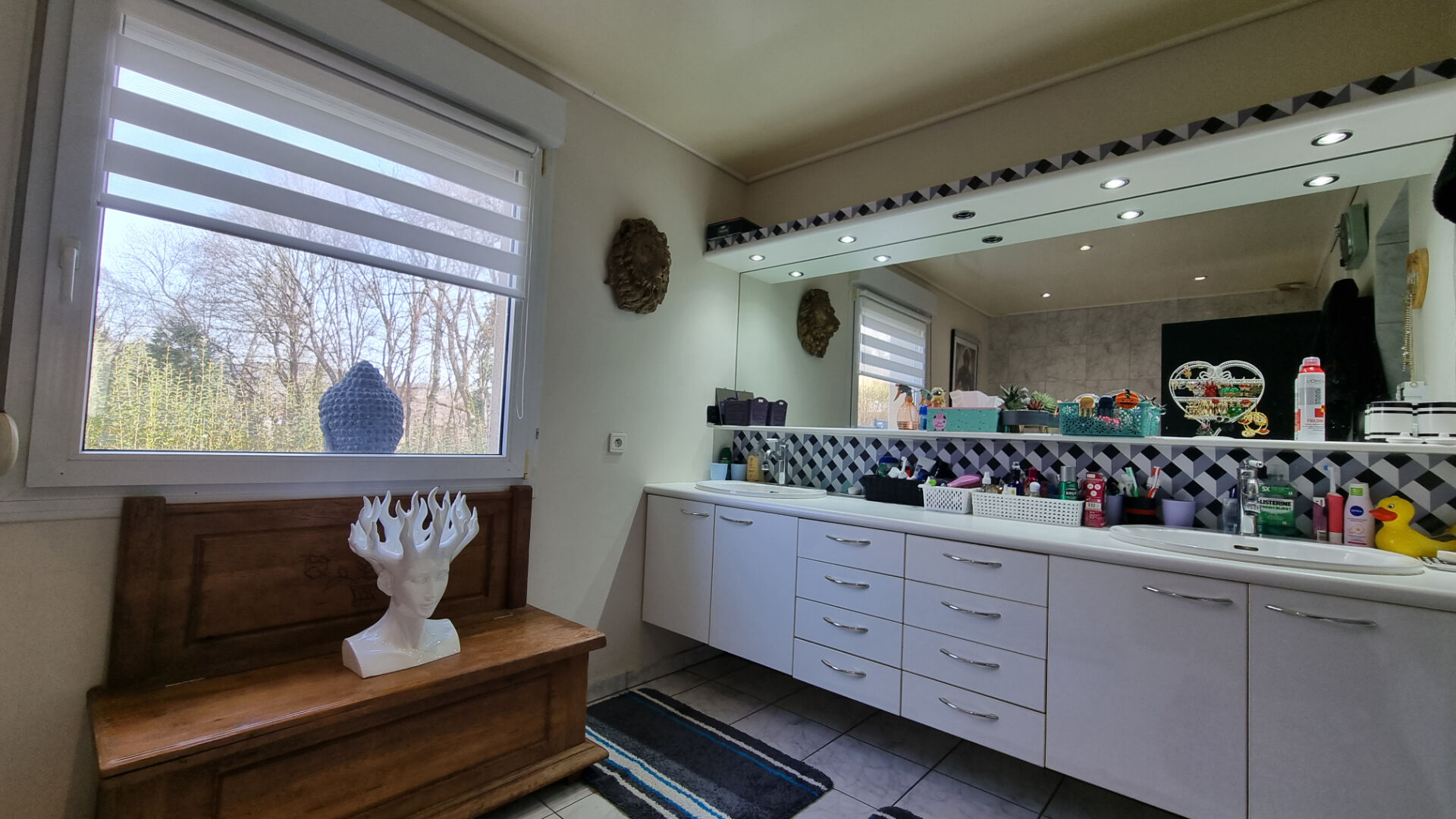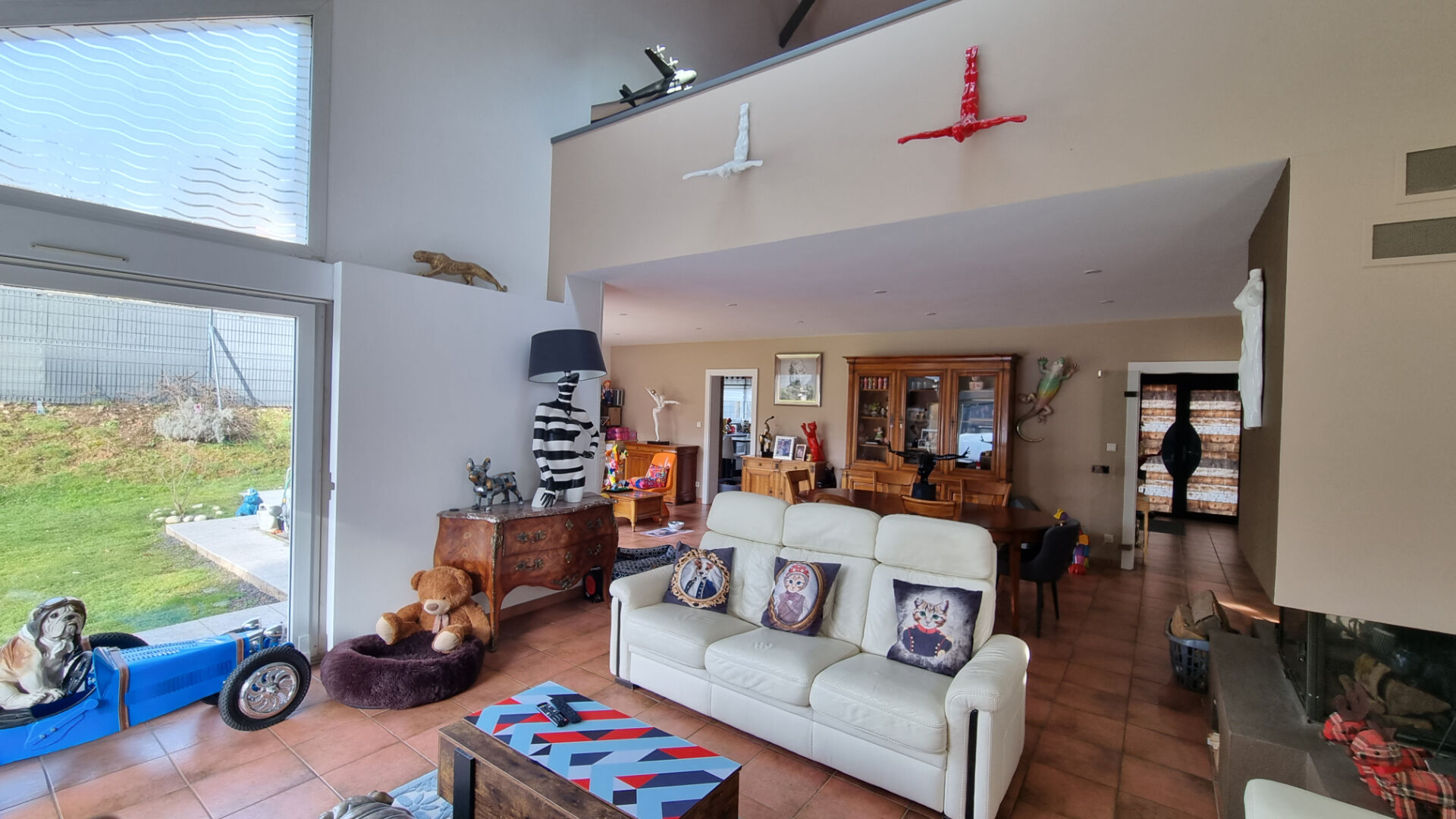 Pavillon de 1994 situé proche du centre ville, proximité école, d'une surface habitable d'environ 255 m², de nombreux travaux réalisés ( toiture - palissade - menuiseries - électricité - etc..) comprenant au rez de chaussée, hall d'entrée, vaste salon-jour avec plafond cathédrale ( 60 m² ) avec cheminée ( insert ) et accès terrasse et piscine, cuisine indépendante équipée et aménagée, 1 bureau, 1 chambre, salle de bains, wc, buanderie et cellier. A l'étage, une grande mezzanine ( 82 m² ), trois chambres, une salle de bains (baignoire, lavabo, W.C.). Au sous-sol, deux garages (portes motorisées), une cave à vins, un atelier et chaufferie. Terrain attenant clôturé et paysager d'une surface de 1499 m² avec piscine avec abris. Tout à l'égoût. Chauffage central gaz de ville