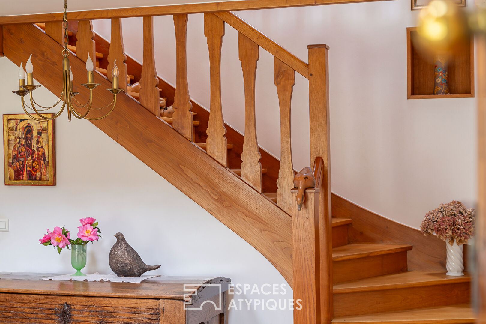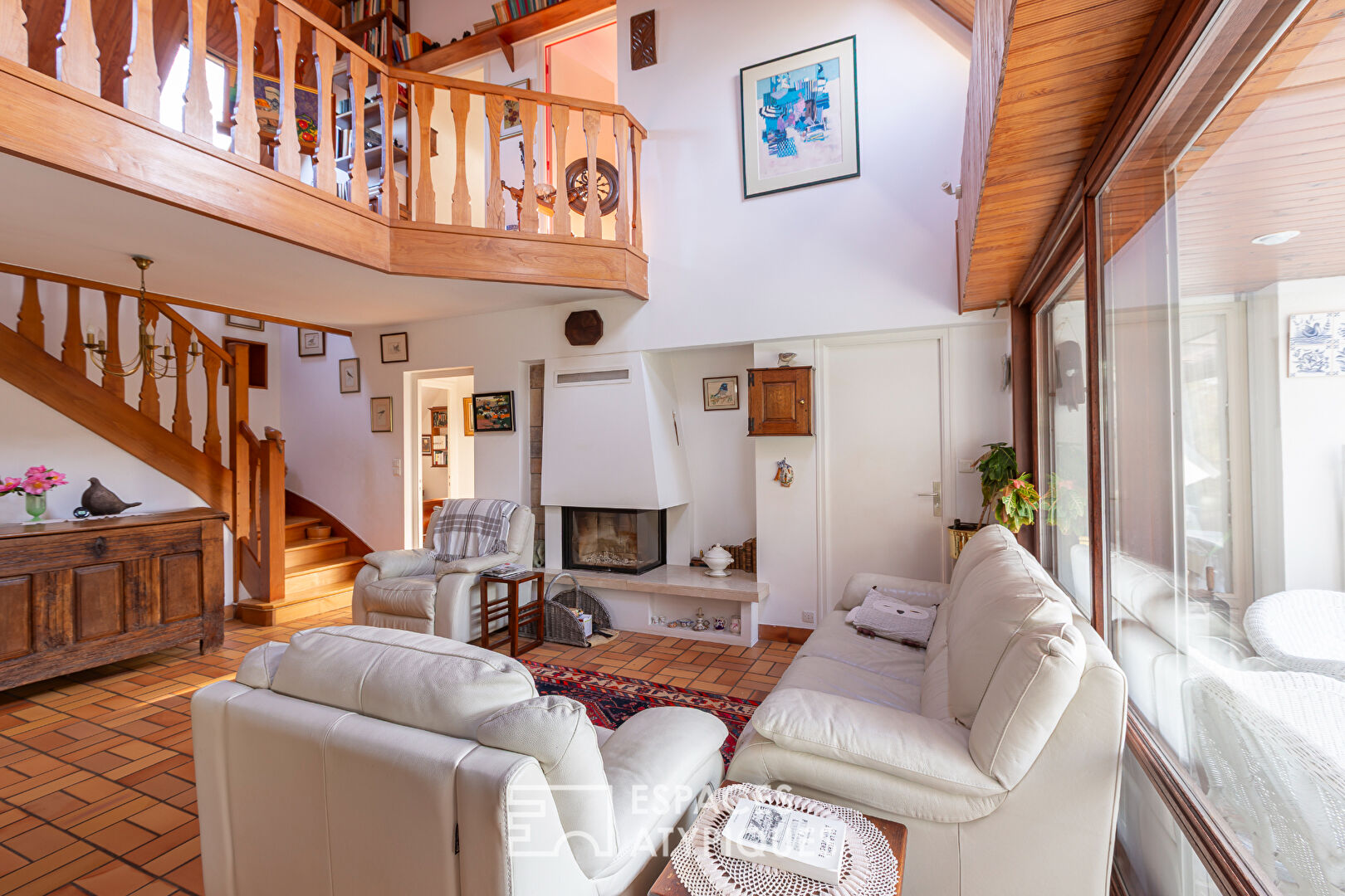 Nichée dans un écrin de verdure à Pordic, côté campagne, cette maison de 1976 déploie ses 165 m² au coeur d'un vaste terrain arboré et vallonné. Véritable refuge pour les amoureux de la nature, la propriété séduit par ses volumes singuliers et son environnement bucolique, complété par un herbage accueillant actuellement un lama, des moutons et des chèvres. Passé l'entrée de la maison, le salon-salle à manger , réchauffé par une cheminée à insert, s'articule sous une mezzanine aux boiseries chaleureuses, créant une ambiance feutrée et lumineuse. Le rez-de-chaussée accueille également une cuisine aménagée indépendante, une chambre et sa salle de bain attenante, deux bureaux et une véranda. Cette pièce est un véritable trait d'union entre intérieur et extérieur et permet de profiter de la vue sur le jardin en toute saison. A l'étage, la mezzanine desserre trois chambres et une salle de bains. Les extérieurs sont une invitation à la contemplation. Le jardin paysager, agrémenté d'un bassin d'ornement et d'une allée de pierre, s'ouvre sur un terrain vallonné offrant une intimité totale. Des prestations complètent l'ensemble : un garage, un atelier, un sauna et un grenier aménageable offrant un potentiel d'évolution intéressant. Rare pour une construction de cette époque, le bien affiche un DPE classé C, gage d'un confort thermique maîtrisé. Des panneaux photovoltaïques ont été installés sur les dépendances, un poulailler de 100 m2 héberge plusieurs poules. Un jardin potager, deux serres, un étang ... un endroit rare et authentique. Ce bien de caractère allie le charme des années 70 à la sérénité d'une vie au grand air. Une opportunité de s'approprier un lieu de vie singulier aux portes de la côte bretonne. Une visite s'impose pour ressentir l'âme de cette demeure. salon/salle à manger de 38 m2 loggia 6 m2 véranda 24 m2 1 chambre et salle de bains au rez-de-chaussée 3 chambres et salle de bains à l'étage 1 cheminée insert 1 sauna 1 grenier aménageable panneaux photovoltaïques convecteurs électriques CLASSE ENERGIE : C / CLASSE CLIMAT : B Montant moyen estimé des dépenses annuelles d'énergie pour un usage standard, établi à partir du prix des énergies indexé année 2021, 2022, 2023 : entre 2160 euros et 3000 euros. Les informations sur les risques auxquels ce bien est exposé sont disponibles sur le site Géorisques: www.georisques.gouv.fr Contact : Rachel LUCAS : 06.85.59.29.50 RSAC Saint-Brieuc : 430 137 166 Rachel LUCAS (EI) Agent Commercial - Numéro RSAC : 430137166 - SAINT-BRIEUC.