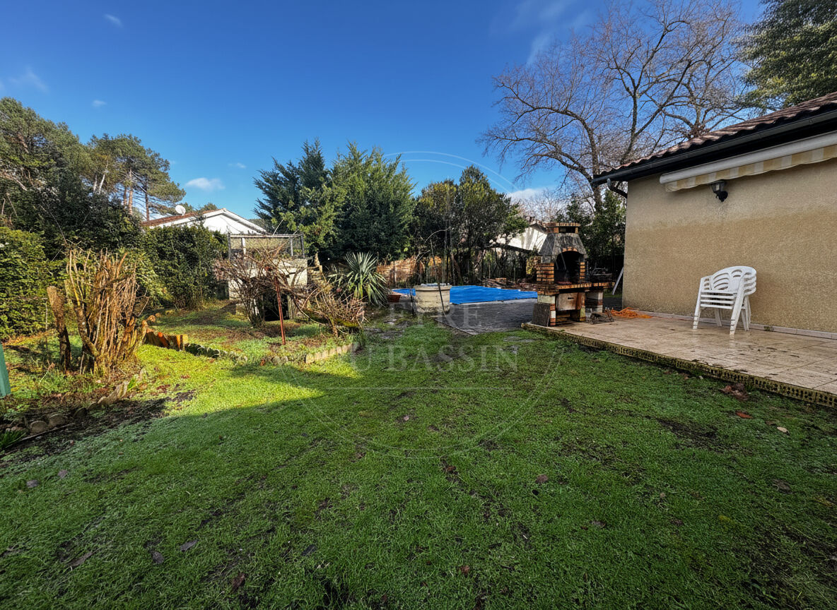 Maison de plain pied pied d'environ 103 m² édifiée sur une parcelle de 965 m² Cette maison des années 70 a bénéficie d'un agrandissement en 2007 laissant place à un salon séjour d'environ 40m² avec cuisine aménagée et équipée, d'un WC et d'une salle d'eau. L'ancienne partie se compose d'un salon avec cheminée, de 3 chambres, d'une salle d'eau et de l'ancienne cuisine pouvant être aménagée en une pièce supplémentaire. Une véranda, un garage d'environ 26 m² ainsi qu'une cave sont accolées à la maison. L'accès aux combles peut se faire par le garage. A l'extérieur, une piscine au sel de 6x3,5 entourée d'une terrasse permet de profiter de l'environnement particulièrement calme. Un local technique et un abris jardin permettent de rajouter des espaces de stockage supplémentaires. Les avantages du bien : L'environnement calme, la superficie de la parcelle, la piscine et de nombreuses possibilités d'aménagement. (3.68 % honoraires TTC à la charge de l'acquéreur.) Marie SEPULLE (EI) Agent Commercial - Numéro RSAC : 949 817 217 - BORDEAUX.