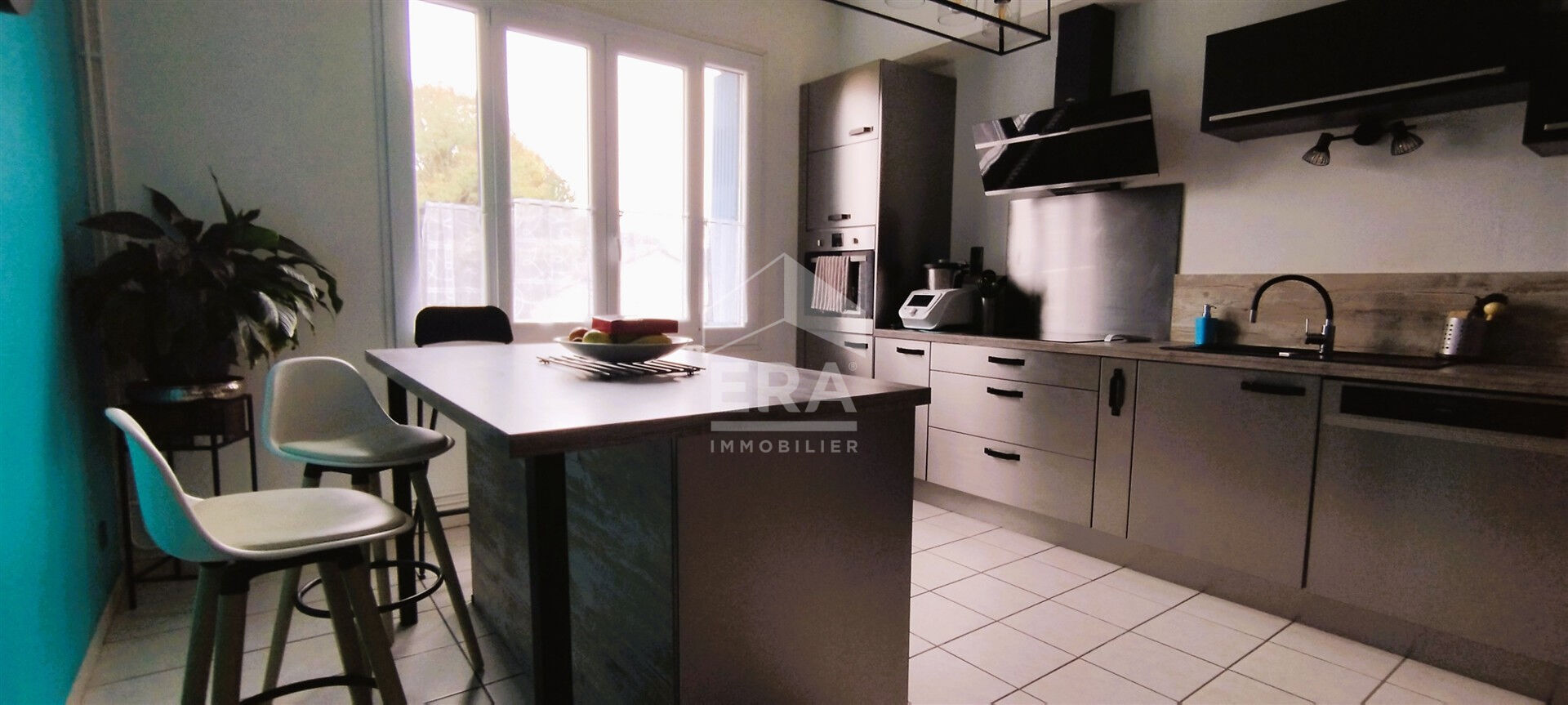 Charmante maison, idéale pour une famille à la recherche de confort et d'espace. Composée de 5 chambres, dont une suite parentale au rez-de-chaussée, parfaite pour un accès facile. Belle cuisine aménagée et équipée, séjour lumineux orienté plein sud, garantissant une belle luminosité tout au long de la journée. Vous apprécierez également la présence d'une cheminée pour des soirées chaleureuses. Le terrain est clos et comprend un abri adossé à l'arrière de la maison ainsi qu'un garage indépendant. Située dans un quartier calme, cette maison est d'un très bon état général. Le tout, à proximité des commodités locales.
