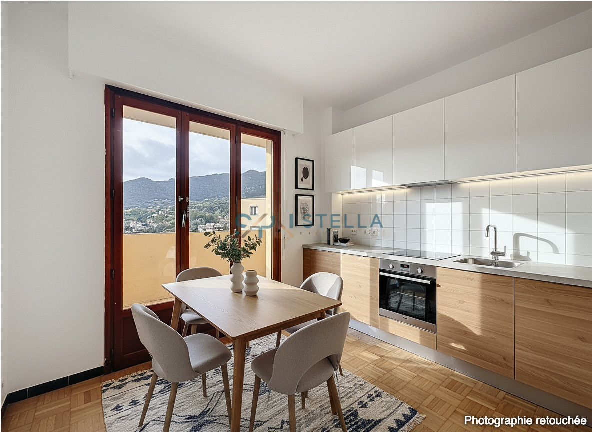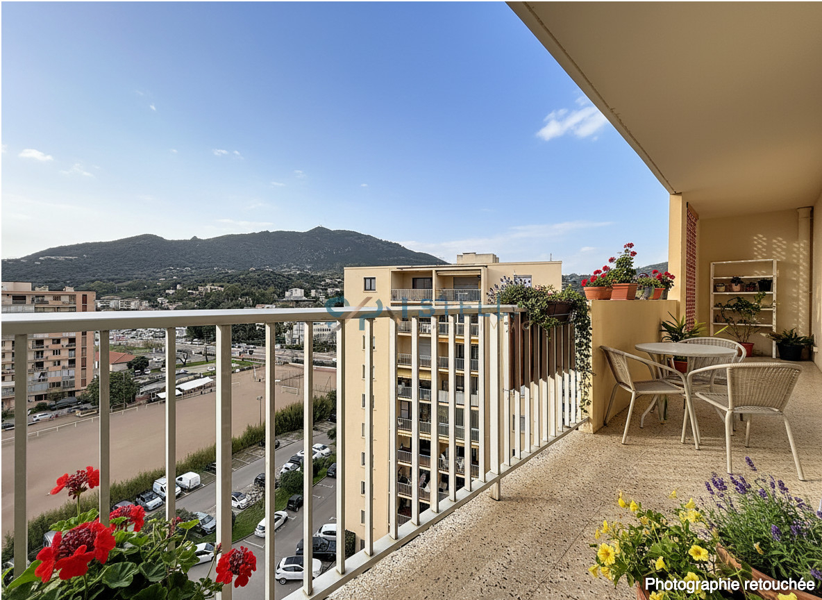 L'agence Stella Patr'Immo, spécialiste à Ajaccio, est ravie de vous présenter en exclusivité un nouveau bien situé en dernier étage. Implanté dans le quartier vivant du Binda, à proximité immédiate de toutes les commodités (écoles, commerces, transports), cet appartement T3 de 84 m² vous séduira par son fort potentiel. Situé au 9e étage avec ascenseur, cet appartement traversant bénéficie d'une vue dégagée ainsi que de deux belles terrasses, offrant luminosité et confort de vie. Il se compose : ? D'un beau séjour ? D'une cuisine indépendante ? De deux chambres, dont une avec accès direct à la terrasse ? D'une salle d'eau ? D'un cellier Des travaux de rafraîchissement sont à prévoir, représentant une véritable opportunité de valorisation et de personnalisation selon vos envies. Un dossier complet comprenant les devis de rénovation est à votre disposition, vous permettant de vous projeter sereinement et d'anticiper précisément le budget travaux. Ce bien constitue une excellente opportunité, que ce soit pour une résidence principale ou un investissement avec valorisation à la clé. Contactez-nous pour organiser une visite. Honoraires à la charge du vendeur. Copropriété de 90 lots (Procédure en cours). Charges annuelles : 1360 euros. Alexandre DELERIA (EI) Agent Commercial - Numéro RSAC : 2 - .