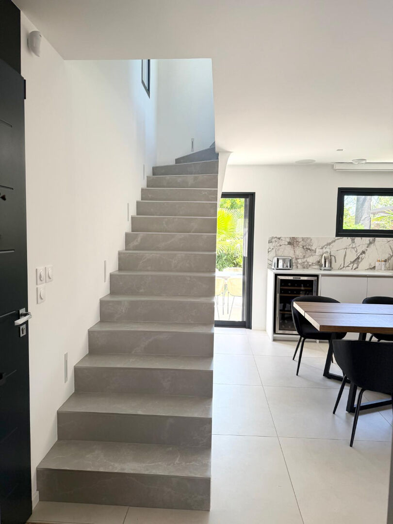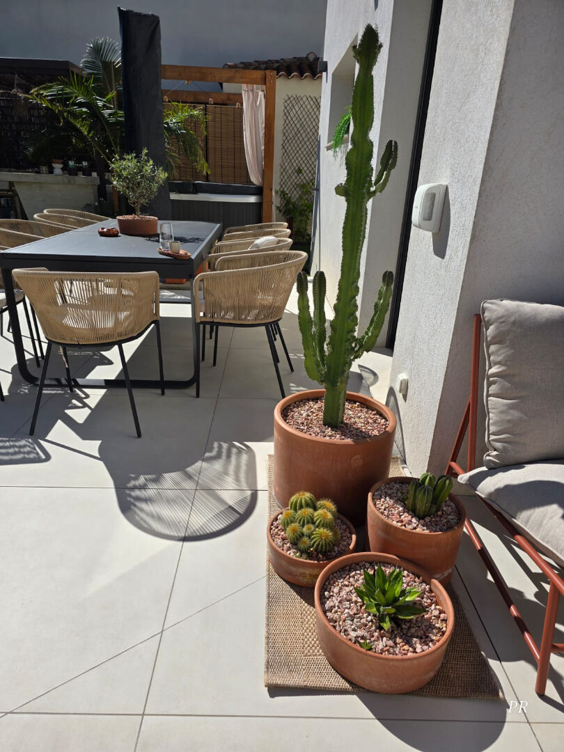 Dans un environnement paisible, Villa contemporaine de 2022, édifiée sur un terrain de 416m², en impasse. Villa alliant lignes épurées et prestations haut de gamme. En RDC, Grande pièce de vie lumineuse ouvrant sur terrasse. A l'étage : deux chambres (dont une avec dressing) et une élégante salle d'eau. Bel espace extérieur, d'une surface utile de 280m² environ, composé d'une grande terrasse, d'un salon de jardin avec banquette, d'un espace convivial avec jacuzzi, cuisine d'été et bar sous pergola. Deux places de parking closes avec porte électrique + pergola végétalisée. A proximité immédiate des commodités, cette villa allie parfaitement calme, confort et praticité au quotidien. A visiter sans tarder !Un bien d'exception, prêt à vivre. Patricia BATTINI (EI) Agent Commercial - Numéro RSAC : - .