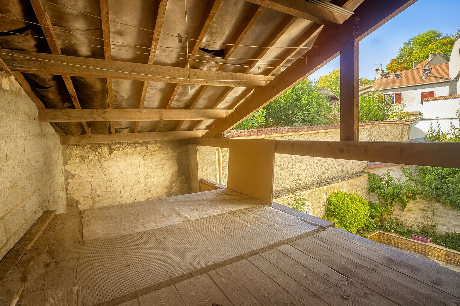 CENTRE-VILLE DE MAULE - A 13 minutes à pied de la gare, au coeur du centre et proche de toutes les commodités. Maison ancienne avec séjour et cheminée, cuisine ouverte, prolongée par une cour ensoleillée sans vis-à-vis. S'ajoutent une cuisine d'été, une buanderie, un WC et un garage double. A l'étage, un palier avec poutres apparentes dessert deux chambres, une salle de bains, une salle d'eau et un WC. Un espace grenier, ancien atelier de menuiserie, offre la possibilité de créer une chambre supplémentaire. Au deuxième étage, une chambre supplémentaire complète l'ensemble. Maison au fort potentiel, à remettre au goût du jour, idéale pour un projet familial ou d'aménagement personnalisé. (4.91 % honoraires TTC à la charge de l'acquéreur.)