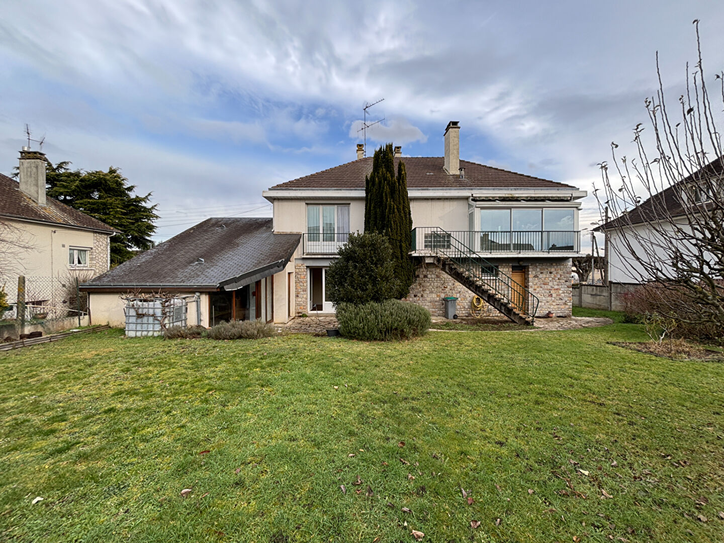 La Ferté-Bernard, pavillon indépendant 147m² habitables avec quatre belles chambres. Cette belle construction traditionnelle vous séduira par ses beaux volumes et son côté atypique. Au rez-de-chaussée : double entrée, dégagement avec rangement desservant salle d'eau, wc, deux spacieuses chambres de 15m² chacune dont une ouvrant sur jardin. A l'étage : palier distribuant cuisine A/E 10m² env., grand séjour/salon lumineux 34.50m² avec cheminée foyer ouvert et balcon donnant accès au jardin, dégagement desservant wc, salle d'eau et deux autres belles chambres de 15m² chacune encore. Deux garages 24m² et 32m² avec portes motorisées. Chaufferie. Cave. Atelier 16m². Jardin clos. Chauffage central gaz de ville (chaudière 1an et demi). Menuiseries PVC double vitrage de qualité avec volets roulants électriques. (7.10 % honoraires TTC à la charge de l'acquéreur.)