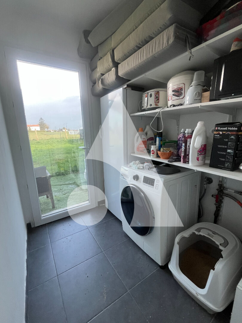 maison de plein pied à 15 min de Niort, avec porte de garage motorisée comprenant : une entrée, une cuisine aménagée et équipée ouverte sur le salon, une buanderie, un couloir desservant sur le coin nuit avec 3 chambres, une salle d'eau avec sèche serviette et un wc Poêle à granulés dans la pièce de vie terrain d'environ 300m² A venir visiter rapidement