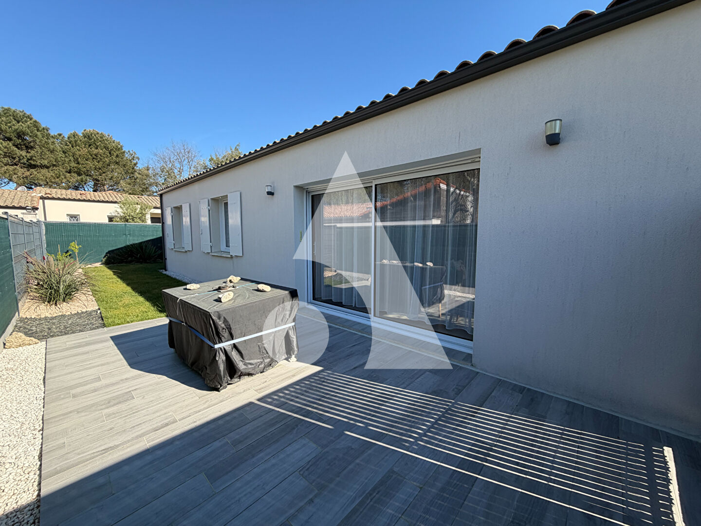 En exclusivité, beau plain-pied récent de 2019 de 102 m² dans un environnement calme, proche des commodités. Vous profiterez d'une très belle pièce de vie lumineuse avec cuisine ouverte aménagée, idéale pour la vie de famille et les moments conviviaux. La maison offre 3 chambres confortables avec rangements, une salle d'eau moderne, un WC indépendant ainsi qu'un cellier attenant à la cuisine, pratique pour le stockage et la buanderie. Un garage et une terrasse carrelée complètent l'ensemble. Côté confort, le bien bénéficie d'un excellent classement énergétique DPE A, gage de très bonnes performances d'isolation et de faibles consommations, ainsi que de la climatisation pour un confort en toutes saisons. A l'extérieur, vous apprécierez le terrain clos de plus de 320 m², agréable et facile d'entretien, permettant de profiter d'une terrasse, d'un coin détente ou d'un espace de jeux pour les enfants. Maison idéale en résidence principale ou secondaire sur le secteur très recherché de La Tremblade. (4.50 % honoraires TTC à la charge de l'acquéreur.) Christophe Henrot (EI) Agent Commercial - Numéro RSAC : 420892770 - SAINTES.