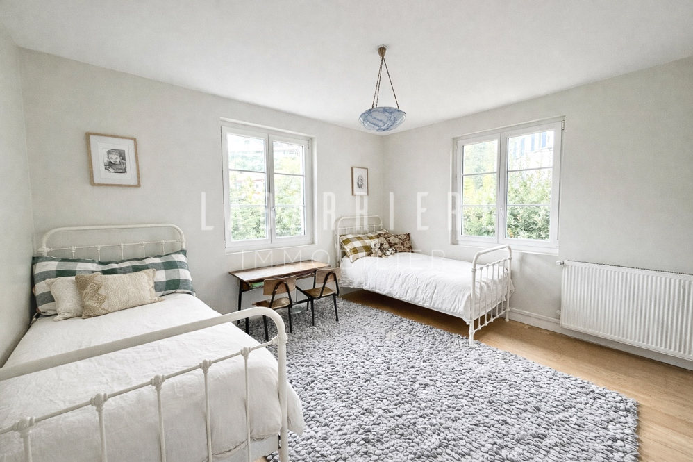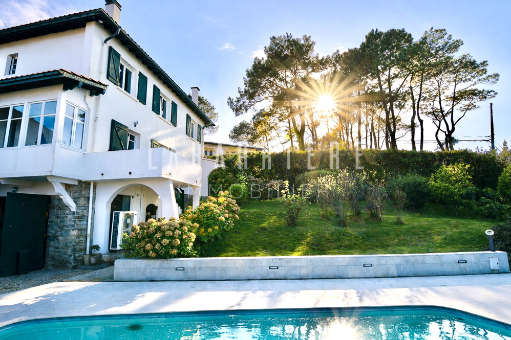A seulement quelques mètres de la plage, cette propriété de caractère des années 1930 séduit par son allure bourgeoise. Édifiée sur un terrain paysagé de plus de 1 800 m², particulièrement rare à cette distance du littoral, la propriété développe 180 m² , offrant de beaux volumes et une organisation idéale pour une vie de famille ou une résidence secondaire de standing. Dès l'entrée, la maison dévoile une atmosphère chaleureuse et élégante. Le salon lumineux profite d'un aperçu océan, tandis qu'un espace séjour distinct permet de créer une ambiance plus intimiste. La cuisine indépendante, ouverte sur l'extérieur, bénéficie d'un accès direct à une terrasse avec aperçu mer, parfaite pour les repas en extérieur. A l'arrière de la cuisine, une coursive intérieure vitrée mène à une véranda, véritable espace complémentaire baigné de lumière, pouvant être aménagé en salon d'hiver, atelier, espace de lecture ou pièce de détente selon les envies. Ce niveau comprend également une chambre et une salle d'eau. A l'étage, l'espace nuit se compose de cinq chambres, dont plusieurs offrent de belles vues dégagées sur l'océan, renforçant le caractère privilégié de la maison. Une salle de bains avec baignoire et douche, complète cet étage parfaitement adapté à une vie familiale confortable. En rez-de-jardin, la maison dispose de plusieurs espaces fonctionnels, comprenant un garage, un abri, une buanderie et un atelier, tandis que l'allée permet le stationnement de plusieurs véhicules, un confort notable dans ce secteur côtier très recherché. Le jardin, véritable écrin de verdure, accueille une piscine chauffée au sel, sécurisée par une alarme à immersion, parfaitement intégrée à l'environnement et propice à des moments de détente. La maison bénéficie d'un chauffage par pompe à chaleur et conjugue avec justesse le charme de l'ancien et le confort contemporain. Un bien rare à Saint-Jean-de-Luz, réunissant emplacement d'exception, volumes généreux, aperçus océan, jardin et piscine, à quelques pas de la plage. Une propriété de caractère destinée à une clientèle en quête d'un cadre de vie privilégié, entre élégance, discrétion et art de vivre en bord de mer. Estimation des coûts annuels d'énergie du logement : Entre 1440 euros et 2010 euros par an. Prix moyens des énergies indexés sur les années 2021, 2022, 2023 (abonnements compris). Honoraires d'agence inclus : 59 000 euros TTC, soit 3,8 % du prix net vendeur, à la charge de l'acquéreur. Les informations sur les risques auxquels ce bien est exposé sont disponibles sur le site Géorisques : www.georisques.gouv.fr (3.81 % honoraires TTC à la charge de l'acquéreur.)