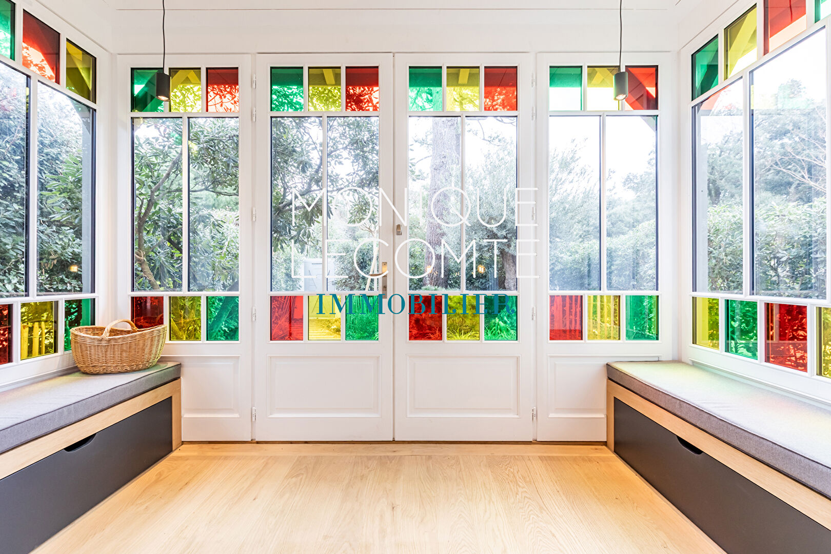PYLA-SUR -MER, l'agence Monique Lecomte Immobilier vous propose à la vente cette villa d'environ 185 M2 sur une parcelle de 463 M2 avec accès privé et direct à la plage entièrement rénovée par un architecte en 2024. Elle se compose d'une entrée, d'un séjour double avec cheminée et cuisine ouverte équipée ouvrant sur la terrasse exposée Ouest, une chambre avec salle d'eau et un dressing. A l'étage: une suite parentale avec salle de bains et dressing ainsi qu'une autre chambre avec salle d'eau. En rez-de-jardin: une salle de cinéma, une buanderie et une salle d'eau complètent cette maison aux finitions soignées idéalement située à proximité immédiate de la plage et des commerces sur le bassin d'Arcachon. (3.96 % honoraires TTC à la charge de l'acquéreur.)