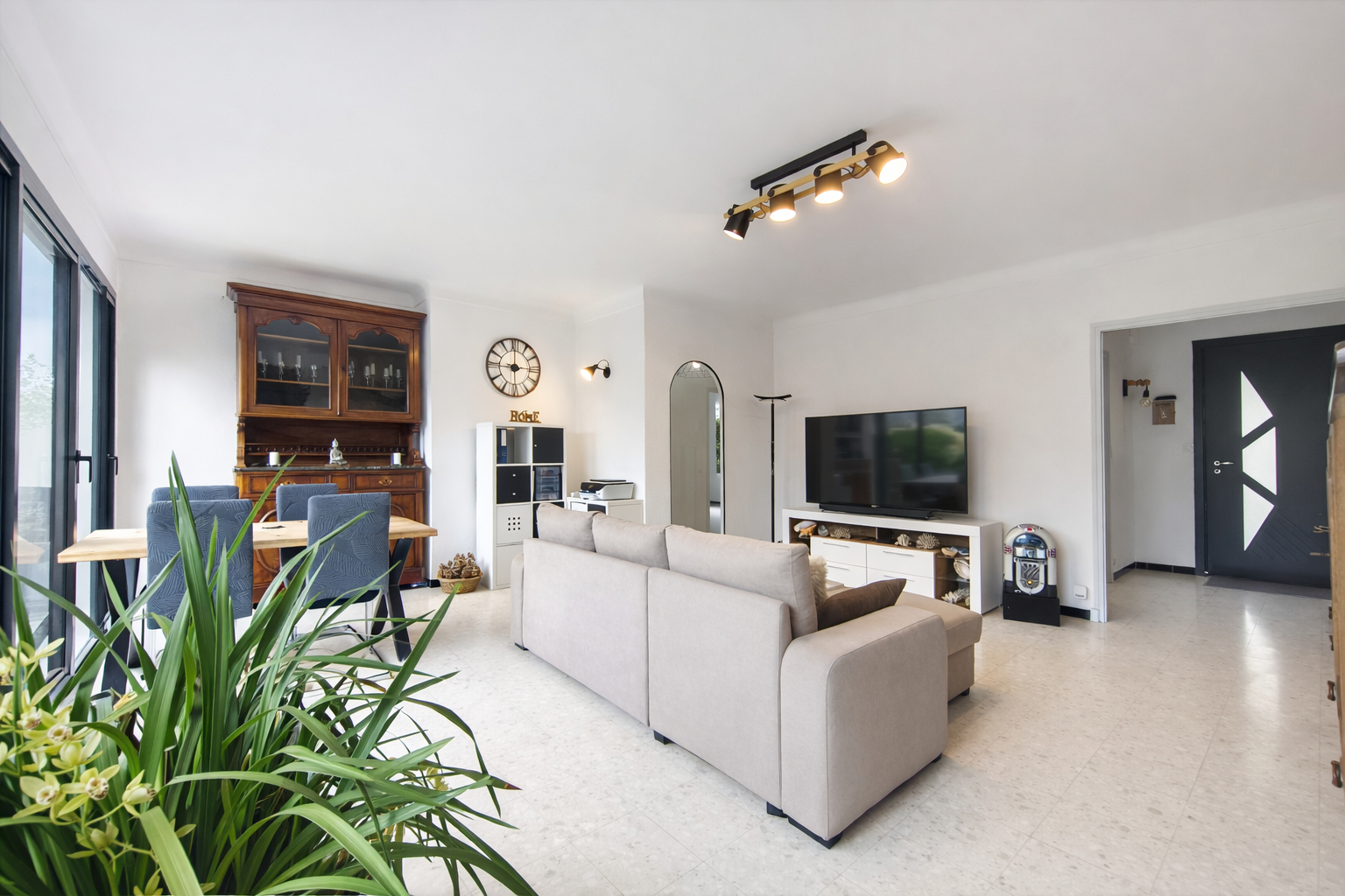 A Saint-Laurent-de-la-Salanque, dans une rue calme et bien située, cette maison plain-pied trois faces bénéficie d'un emplacement pratique, à proximité des commerces et du centre du village. L'accès aux principaux axes est rapide, tout en conservant une atmosphère paisible au quotidien. La pièce à vivre de 32,06 m² constitue le coeur de la maison. Spacieuse et lumineuse, elle s'ouvre largement sur le jardin grâce à plusieurs baies vitrées coulissantes, créant une relation naturelle entre intérieur et extérieur. Un second espace salon, plus intimiste, avec cheminée insert, permet de créer une ambiance plus feutrée. La cuisine indépendante, récente et soigneusement aménagée, a été pensée comme une véritable pièce à part entière, fonctionnelle et agréable, avec vue sur le jardin. Côté nuit, la maison dispose de deux chambres avec rangements intégrés, d'une salle d'eau lumineuse avec douche à l'italienne et double vasque, ainsi que d'un WC indépendant. Un espace supplémentaire, aujourd'hui dédié au rangement et à la buanderie, offre un potentiel d'aménagement, notamment pour la création d'une troisième chambre selon les besoins. Le jardin ceinture la maison sur trois faces, sans vis-à-vis, et la possibilité d'y imaginer différents aménagements, dont une piscine; est réel. Ce bien est proposé en mandat exclusif GOT Immobilier, avec une visite virtuelle réalisée par l'agence, permettant une première découverte qualitative avant toute visite sur place. Votre Conseiller Local, Thierry : 06 14 13 37 92
