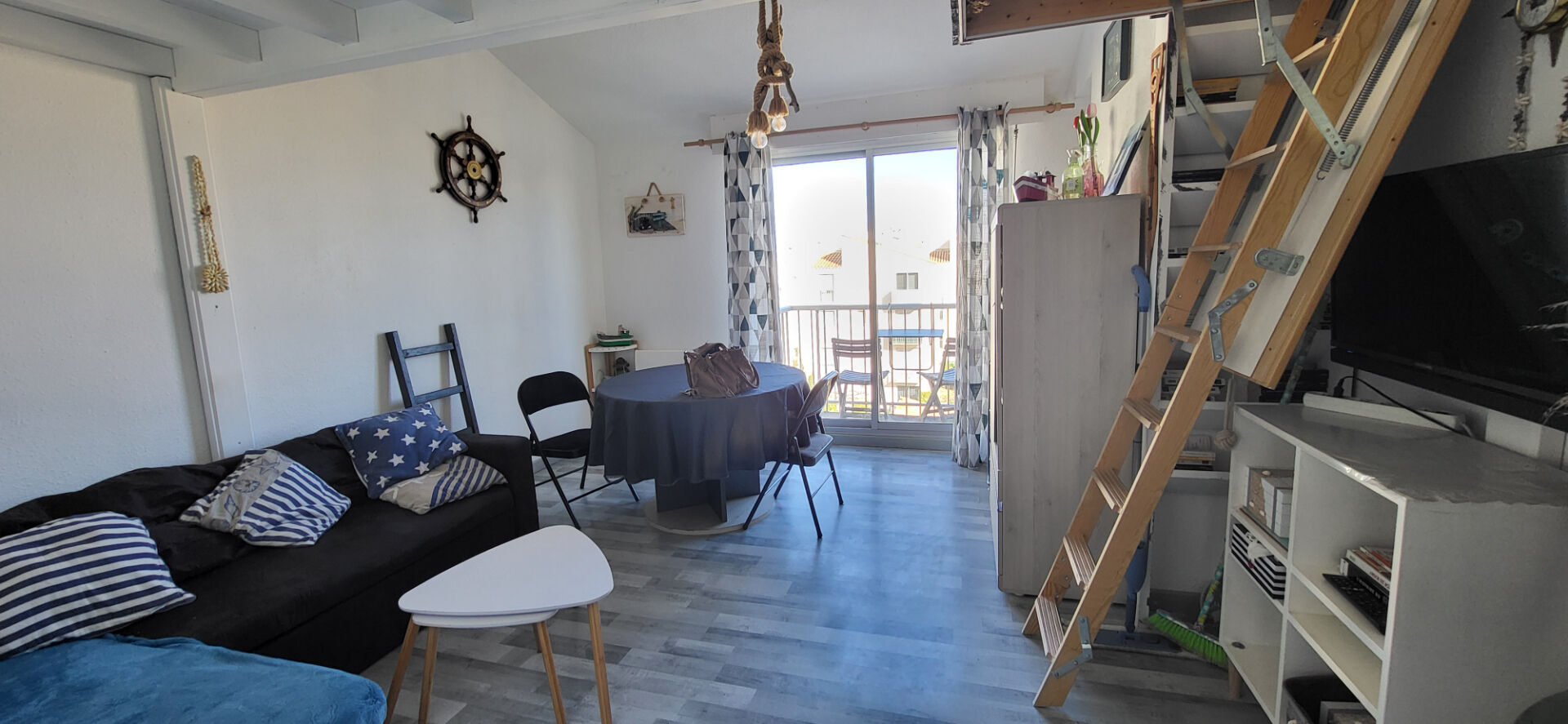 A louer appartement 2 pièces avec mezzanine au dernier étage (4ème étage sans ascenseur) d'une résidence sécurisée avec facilité de stationnement. Cet appartement meublé se situé à quelques mètres de la plage et du marché avec tous les commerces à pied. Il est composé d'une entrée desservant la salle d'eau, wc indépendants, 1 grande chambre de 13m2 avec placards, petit espace cuisine aménagée et équipée, séjour donnant accès à un balcon, accès à une mezzanine par une échelle escamotable contenant un couchage de 2 personnes. Une belle terrasse sans vis à vis. Loyer: 590 euros + 35 euros de charges (comprenant la taxe d'ordures ménagères + charges de copropriété) Dépôt de garantie: 590 euros Honoraires charge locataire: 259 euros (état des lieux inclus)