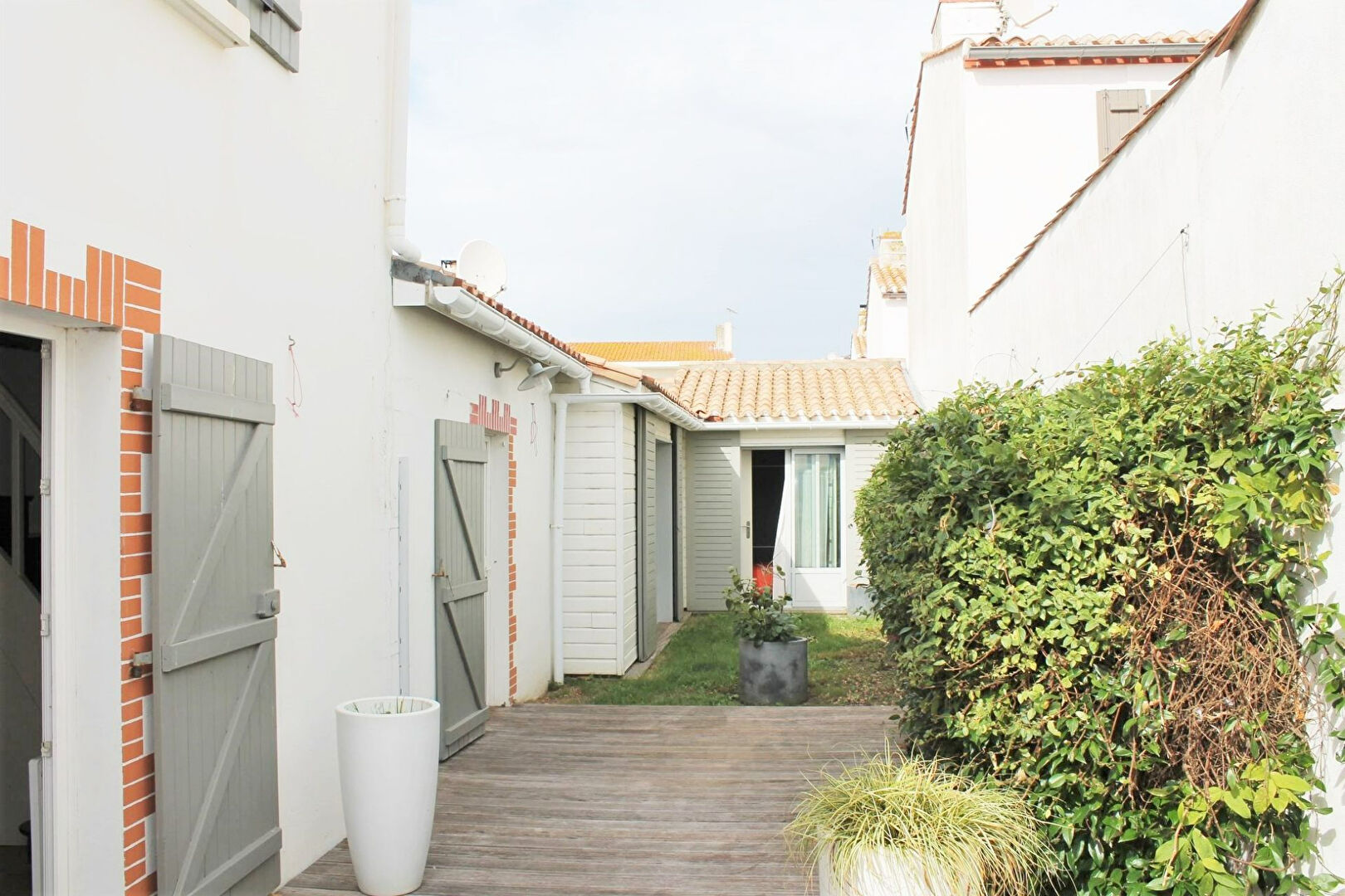 Cette maison MEUBLEE se trouve au calme d'une ruelle de Croix de Vie, dans le quartier du Maroc, à Saint Gilles Croix de Vie. Elle se situe à quelques pas du marché, de la gare et du port de pêche et de plaisance. La grande pièce à vivre de 30 m² se distingue en deux parties ; un coin salon avec son poêle à bois, et un espace pour déjeuner. Elle s'ouvre sur un petit jardin au Sud Ouest, à l'abri des regards grâce à son portail haut. La cuisine est indépendante et a aussi un accès sur l'extérieur. La chambre parentale a sa propre salle d'eau avec WC. Une autre salle d'eau avec wc est à votre disposition. A l'étage, vous trouverez 2 petites chambres communicantes. Petite terrasse de 14 m² avec un barbecue en dur. Cabanon pour ranger vélos et matériels (passage par le séjour). Chauffages électriques. Terrain de 142 m². Disponible de suite. Dépôt de garantie : 1100 euros. Honoraires locataire : 759 euros (visites, constitution du dossier, rédaction du bail : 552 euros, état des lieux : 207 euros). Les Informations sur les risques auxquels ce bien est exposé sont disponibles sur le site : GEORISQUE : www.georisques.gouv.fr.