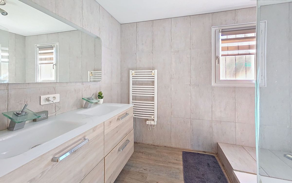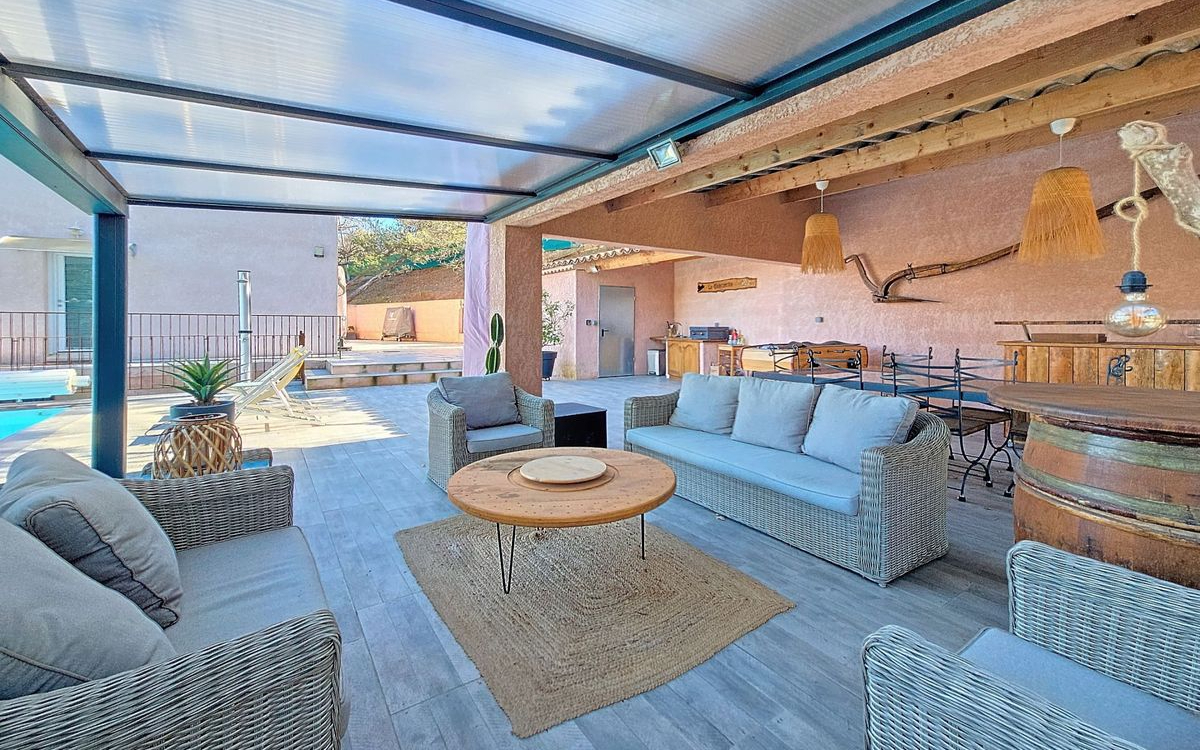 Grande villa de 2012 - idéale pour une famille ou pour créer 2 logements indépendants Venez découvrir cette belle propriété récente, pensée pour offrir soit une vaste maison familiale de 5 chambres, soit deux habitations séparées grâce à ses entrées opposées qui garantissent à chacun tranquillité et intimité. La villa est aujourd'hui organisée en un T3 lumineux côté Est, avec terrasse, et un T4 spacieux côté Ouest, profitant d'un accès direct à tous les espaces extérieurs : terrasse, piscine, cuisine d'été, jacuzzi et boulodrome. Implantée sur un terrain d'environ 2200 m² dans un environnement campagne, elle a été construite avec soin par un artisan maçon. Aucun travaux à prévoir : tout est prêt pour y vivre confortablement. Vous bénéficierez de prestations de qualité : double vitrage PVC, portail automatique, plusieurs places de stationnement, piscine avec volet électrique, douche solaire, WC extérieur, jacuzzi, boulodrome, etc. Prix de vente : 600000 euros, honoraires agence à charge vendeur.