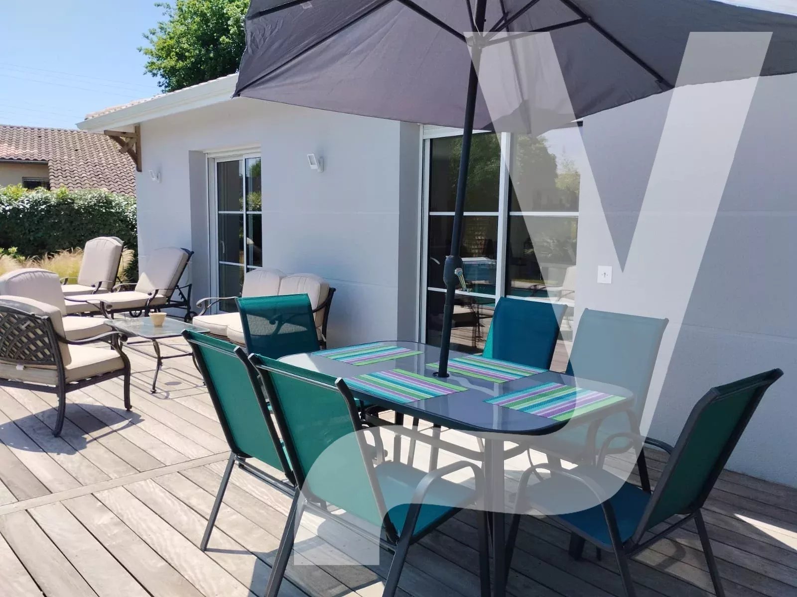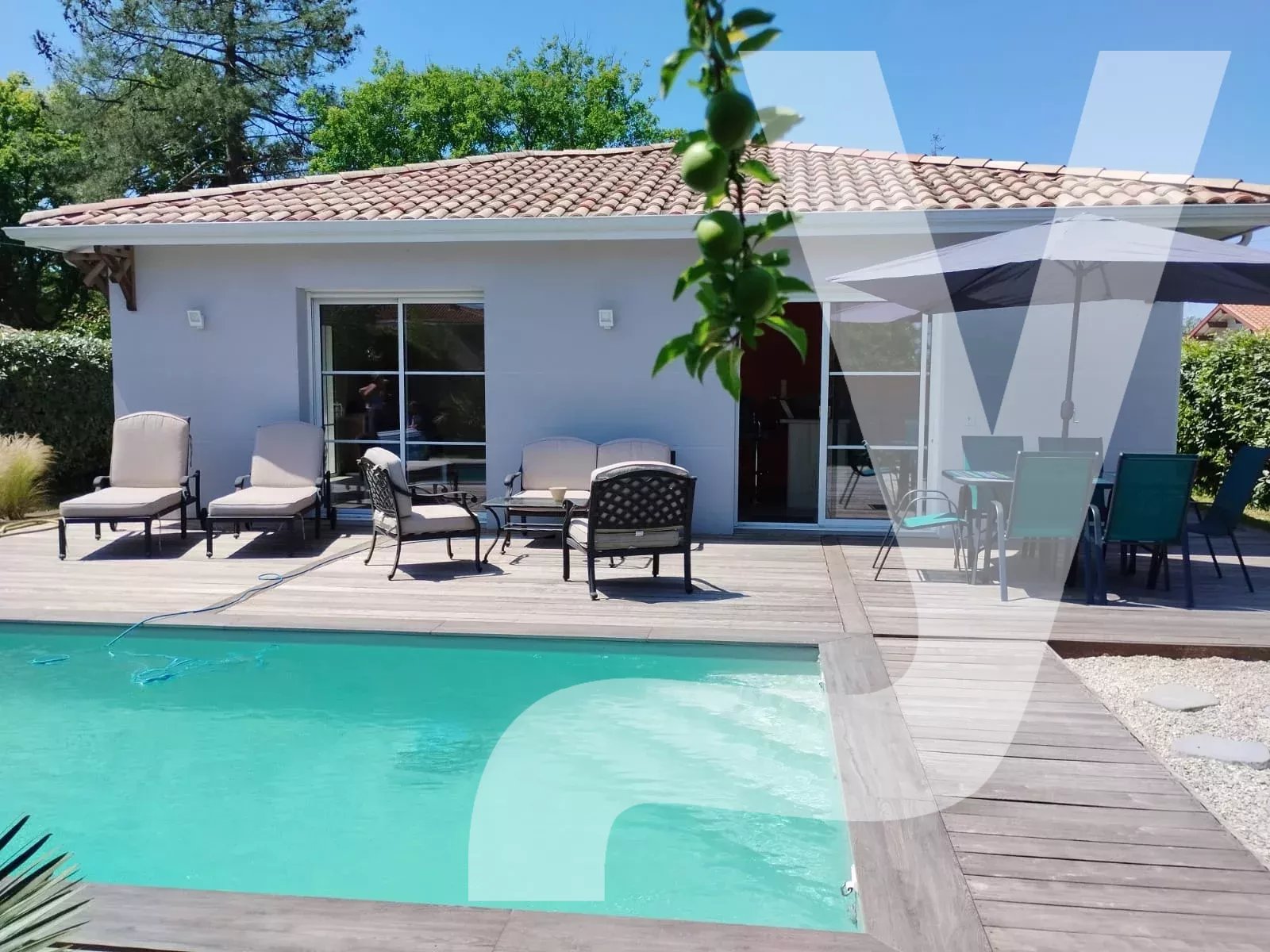 Maison récente avec piscine – Quartier Meyran Coup de cœur assuré pour cette maison de 2018, située dans le quartier prisé de Meyran, à deux pas des commerces et d’un arrêt de bus (25 m). Environnement idéal pour les amoureux de la nature : forêt, sentier du littoral et ports de Gujan accessibles à pied. Elle offre une grande pièce de vie lumineuse avec cuisine ouverte entièrement équipée, un cellier, 3 chambres dont 2 avec grands placards, une salle de bain avec douche et baignoire et des WC séparés. Côté confort : chauffage au sol par pompe à chaleur, faible consommation (95 €/mois), volets roulants centralisés, TF 1 550 €. À l’extérieur, profitez d’une terrasse en bois exotique et d’une piscine chauffée au sel (3,5 x 6 m) avec volet électrique. ✨ Aucun travaux à prévoir – Maison clé en main.