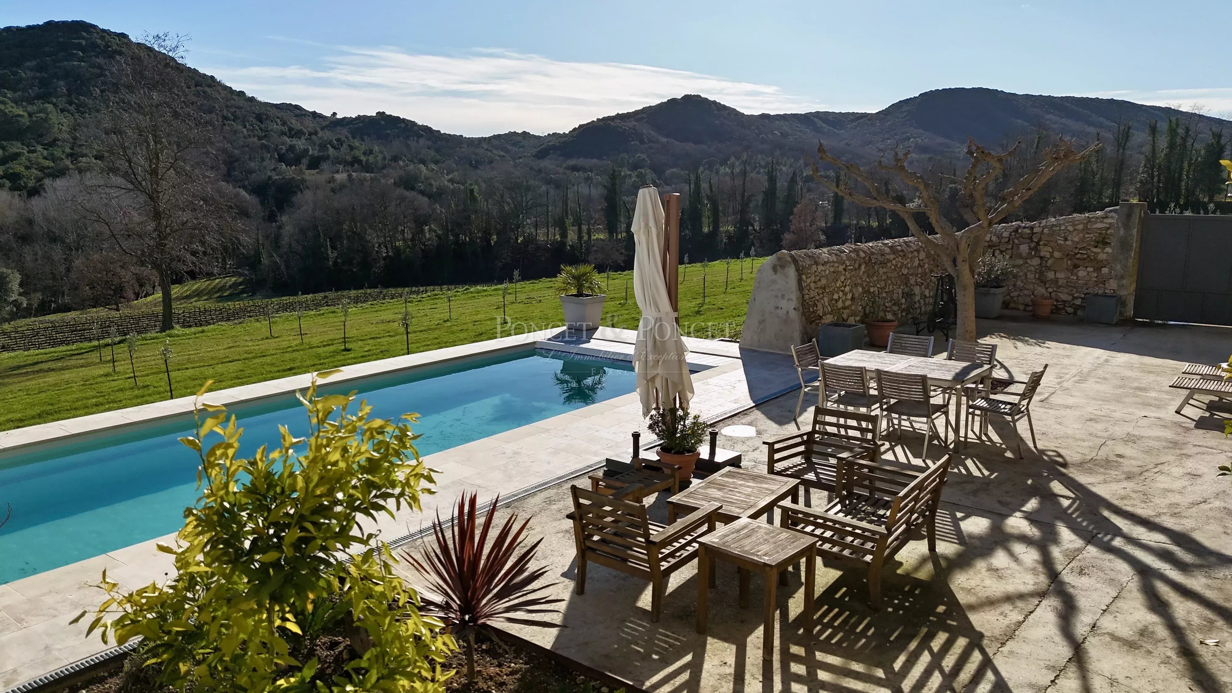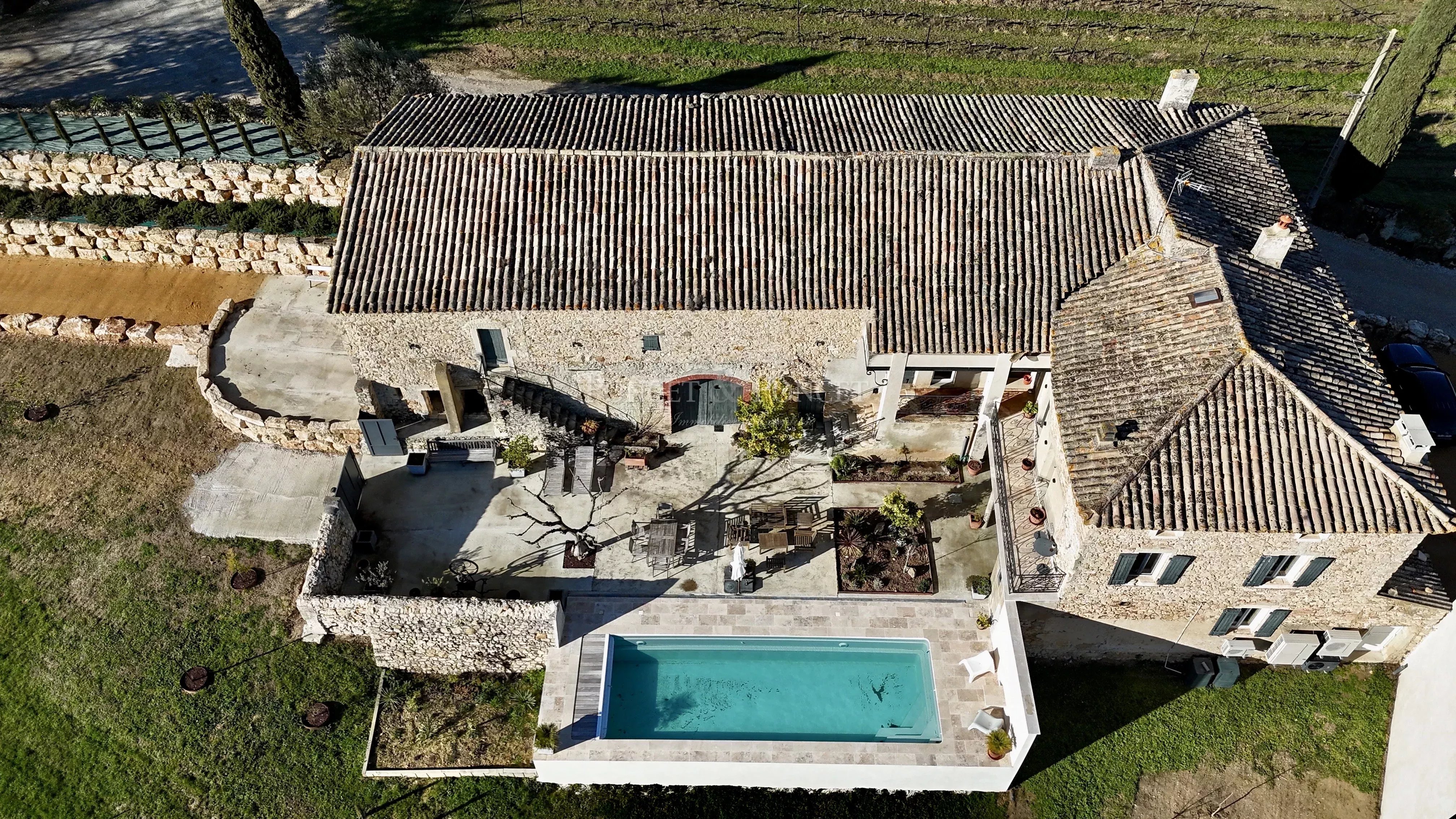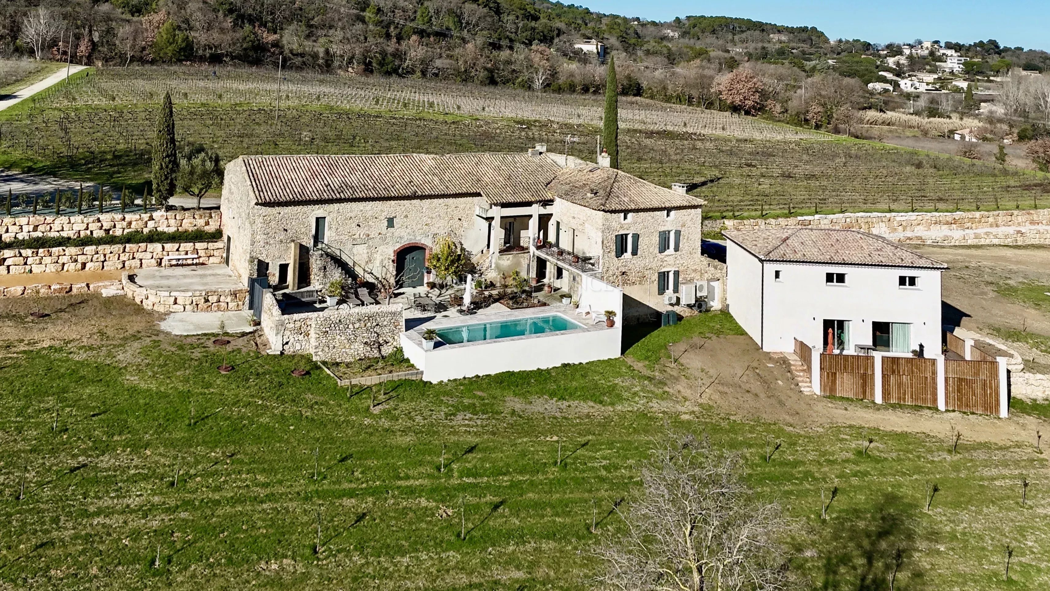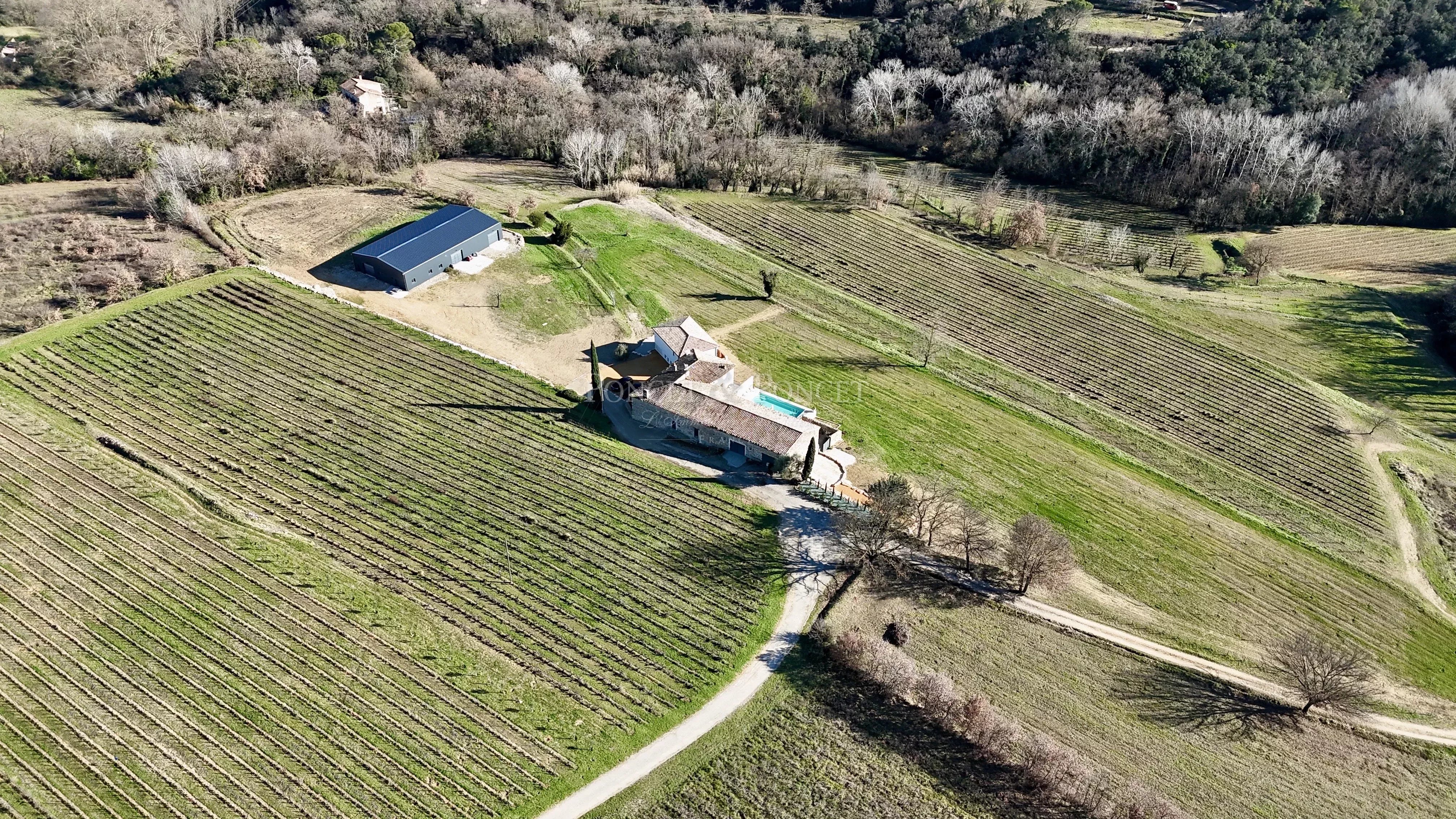 Implantée sur les coteaux, au cœur d’un environnement naturel préservé, cette propriété bénéficie d’un emplacement privilégié alliant calme absolu et excellente accessibilité. Les premiers commerces et services sont accessibles en quelques minutes, tandis que l’autoroute se rejoint très rapidement. La gare TGV d’Avignon à 35 minutes, permettant de relier Paris en moins de 3 heures et l'aéroport de Montpellier à 1h20 de trajet. Depuis les hauteurs du domaine, la vue panoramique s’étire à perte depuis les champs, les vignes, les forêts et les collines environnantes jusqu’au Mont Ventoux ! DESCRIPTION: Véritable propriété de caractère, ce domaine viticole bio d’environ 10 hectares, dont 5,25 hectares de vignes certifiées, séduit par son authenticité, ses volumes et son potentiel rare. Deux sources sont présentes et un ruisseau borde la partie basse du domaine. Il s’articule autour de trois bâtiments principaux : • Le Mas provençal, datant du début du XIXᵉ siècle, entièrement en pierre et déclaré en habitation. Il développe environ 600 m², dont près de 400 m² à aménager, correspondant à l’ancienne cave en rez-de-chaussée et aux espaces de stockage à l’étage, accessibles de plain-pied par l’arrière. La partie déjà rénovée, répartie sur deux niveaux, propose quatre chambres et bénéficie d’un chauffage par pompe à chaleur air/eau. Deux caves voûtées, deux ateliers, une superbe terrasse, une piscine coque au sel, ainsi qu’un terrain de boules complètent cet ensemble, tous parfaitement exposés. À terme, après travaux, il est possible de créer un mas principal d’environ 600 m² habitables. • Une maison indépendante neuve d’environ 140 m², aux prestations contemporaines. Récemment édifiée, elle répond aux normes PMR en rez-de-chaussée, dispose de trois chambres dont une de plain-pied, d’une cuisine haut de gamme entièrement équipée ouverte sur le séjour, avec accès direct à une grande terrasse en bois. Domotique intégrée et climatisation réversible viennent parfaire le confort. • Une cave viticole neuve, d’environ 497 m² au sol, livrée en 2024 et conforme aux dernières normes. Elle comprend une vaste cave de vinification offrant un fort potentiel de développement, un espace garage accueillant le matériel viticole et agricole (pouvant faire partie de l’acquisition), un local phytosanitaire, ainsi qu’un logement indépendant de type deux pièces de 55 m², entièrement équipé. Une mezzanine de stockage surplombe cet espace et est directement accessible depuis la cave. Le domaine est complété par une plantation remarquable d’arbres fruitiers : Environ 250 oliviers, 75 amandiers, 38 abricotiers, 40 pistachiers, ainsi que 40 pommiers issus d’une variété créée par les propriétaires actuels. Des devis pour la toiture et la façade du mas sont d’ores et déjà disponibles. CE QUE NOUS EN PENSONS: Il s’agit d’une propriété rare et inspirante, conjuguant le charme d’un mas provençal authentique, un outil viticole récent et performant, et un cadre naturel exceptionnel. Les vues panoramiques, la diversité des bâtiments, la certification biologique des vignes et le potentiel d’aménagement font de ce domaine un bien à part, idéal pour un projet viticole ambitieux, une résidence de prestige, ou une activité d’accueil haut de gamme. Un lieu où l’on ressent immédiatement l’espace, la sérénité et une véritable qualité de vie provençale. Contact : Thierry Lallemand +33(0)6 62 51 94 07 Les informations relatives aux risques auxquels ce bien est exposé sont disponibles sur le site Géorisques : www.georisques.gouv.fr