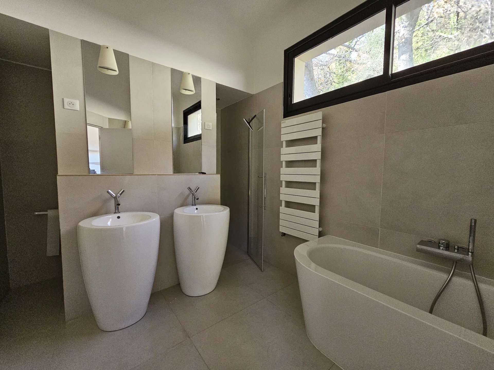 Dominant le village de Saint-Vallier-de-Thiey, cette villa d'environ 160 m² + annexes offre un cadre de vie unique, où l'élégance contemporaine rencontre l'authenticité provençale. Chaque espace a été pensé pour capter la lumière et profiter d'une vue spectaculaire sur les Alpes-Maritimes, jusqu'à la Méditerranée. Implantée sur un terrain clos de 2 000 m² en restanques, agrémenté d'une oliveraie, la propriété bénéficie d'un environnement privilégié et proche du village. Un intérieur lumineux et chaleureux Le vaste séjour, entièrement ouvert par de grandes baies vitrées, offre un volume exceptionnel baigné de lumière. Une cheminée suspendue Focus, véritable pièce d'art, vient sublimer cet espace de vie convivial.La terrasse plein sud, véritable prolongement du salon, accueille un espace détente et un jacuzzi avec vue l'endroit parfait pour savourer le panorama.La cuisine contemporaine, conviviale et parfaitement équipée, s'ouvre quant à elle sur une seconde terrasse à l'ouest, idéale pour les soirées barbecue. Espace nuit & organisation La villa propose 4 chambres :Deux chambres au rez-de-chaussée, dont chacune ouvre sur une terrasse privativeDeux chambres en rez-de-jardin, profitant d'une salle d'eau communicante. Une mezzanine ouverte, aménagée en bureau, domine le séjour et crée un espace supplémentaire idéal pour le télétravail ou un coin lecture. Une buanderie fonctionnelle ainsi qu'une superbe salle de bains (douche à l'italienne, baignoire, double vasque, WC) complètent l'ensemble. Extérieurs & dépendances La villa dispose également d'un garage attenant avec porte motorisée, plusieurs caves, un atelier, une remise pour le jardinage.De quoi offrir de nombreuses solutions de rangement et de stockage, tout en conservant un extérieur soigné et harmonieux. Prestations haut de gamme Le bien bénéficie d'équipements pensés pour le confort durable : double vitrage aluminium récent, Pompe à chaleur neuve avec plancher chauffant au rez-de-chaussée, Aspiration centralisée. Matériaux de qualité : carrelage sur mesure de Salerne, plan de travail en granit, sanitaires premium, pierre naturelle en extérieur Un bien rare, où charme, modernité et panorama se rencontrent Cette propriété exceptionnelle offre un cadre de vie privilégié, à seulement quelques minutes des commodités et des axes principaux. C'EST UN COUP DE COEUR !