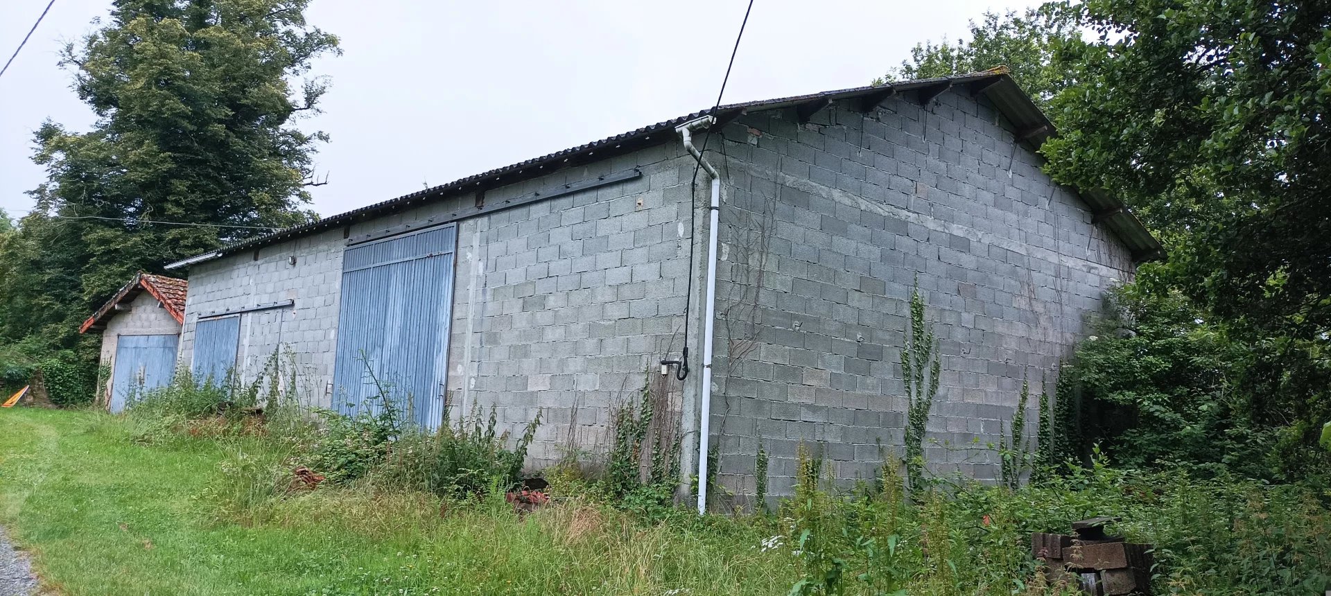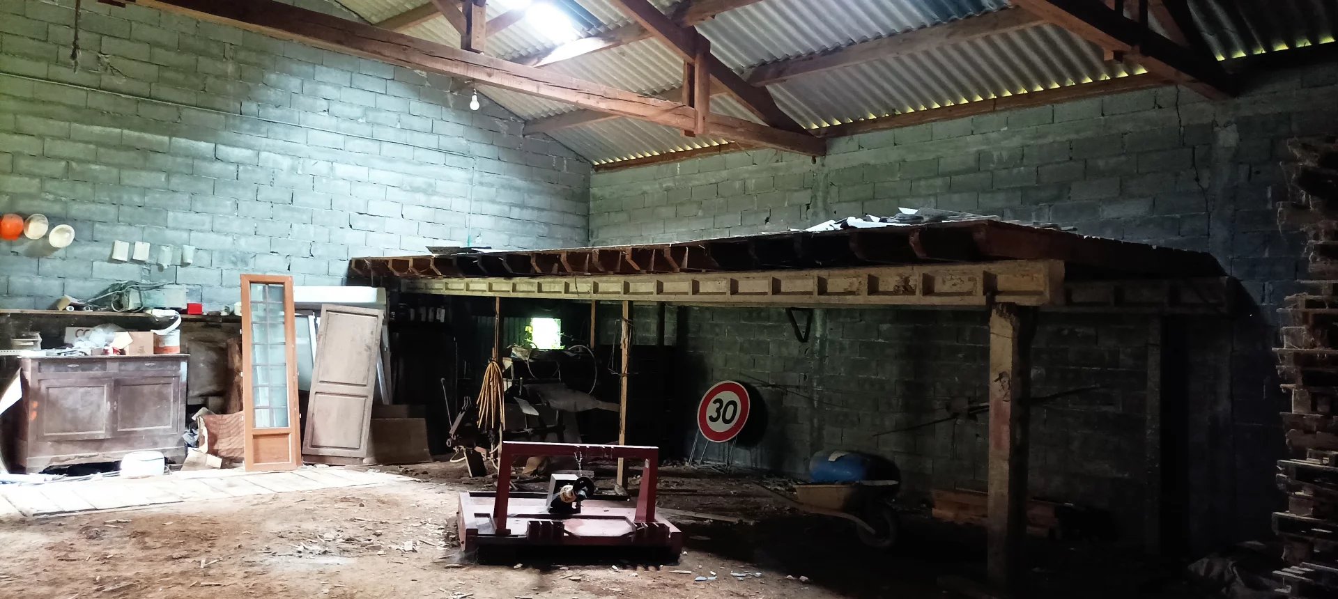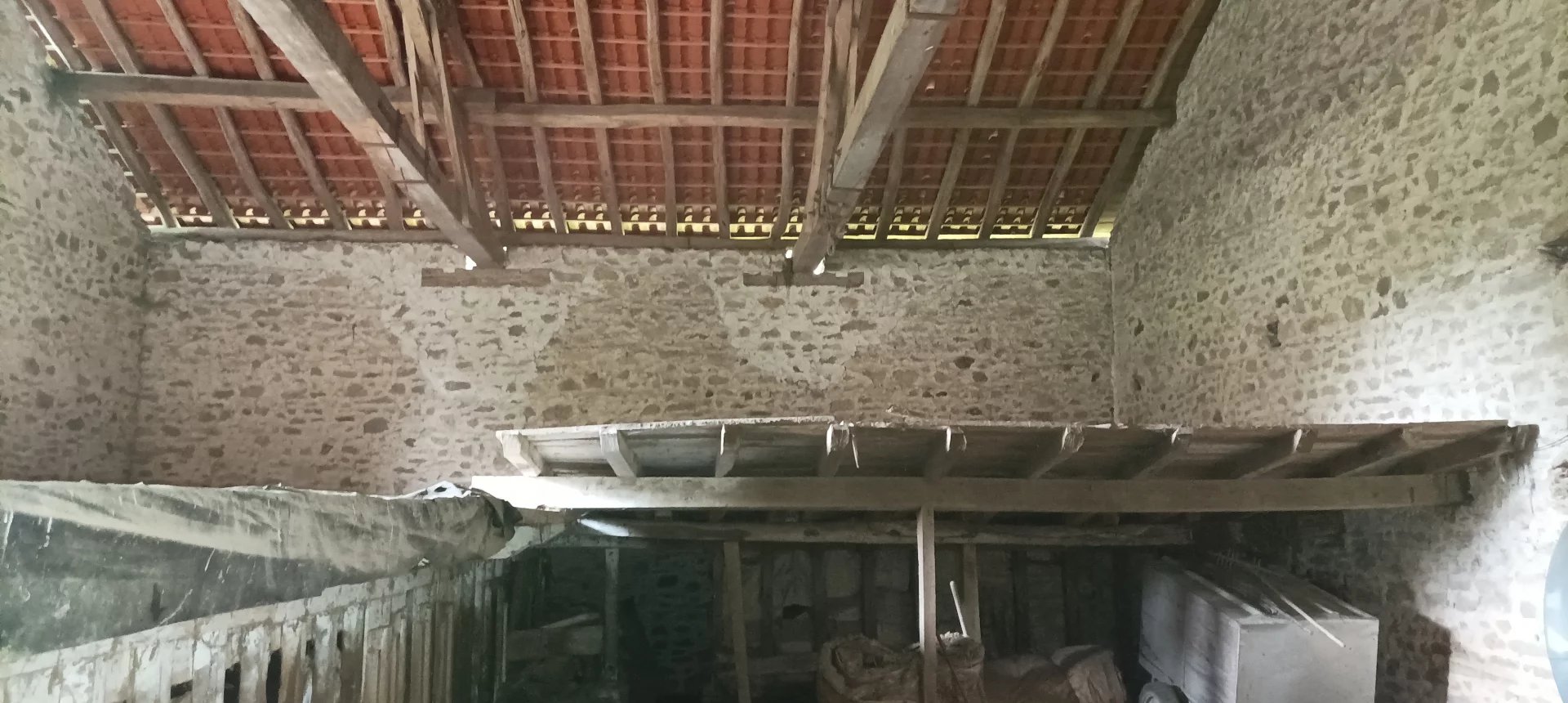 Grange de plus de 170m² en bon état, toiture saine avec son jardin de 400m². En face garage et atelier. De l'eau et electricite sur place.