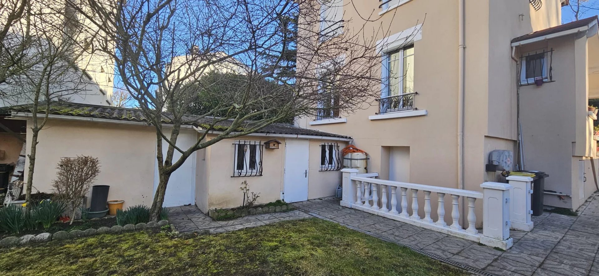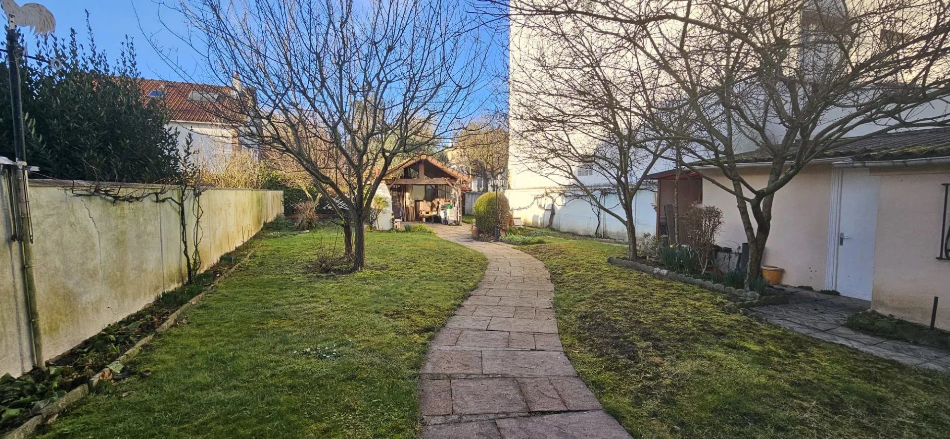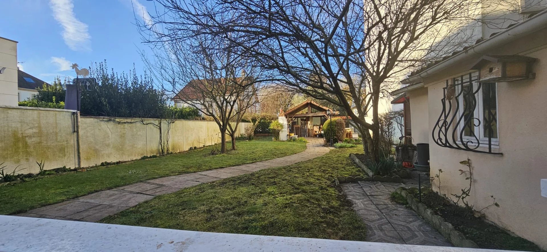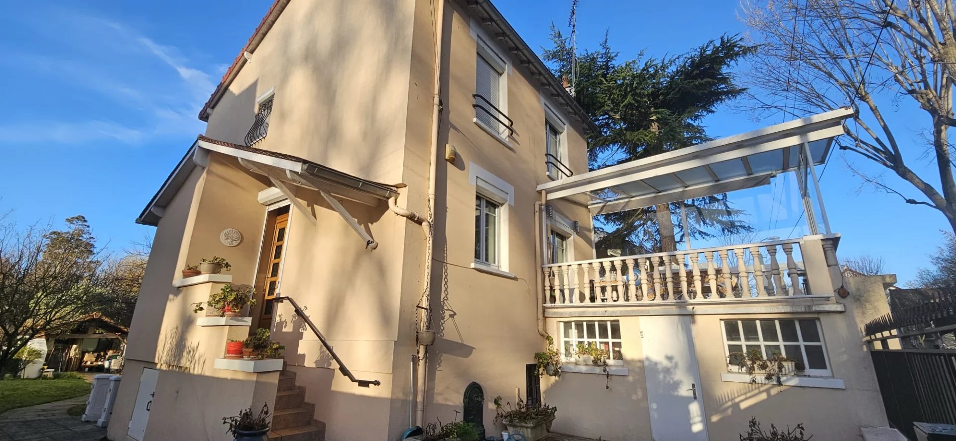 Proche toutes commodités, RER futur métro, écoles et commerces. Maison ancienne de 5/6 pièces de 168.25m² surfaces utiles et 90.79m² en habitable, sur terrain clos de 413m². Comprenant : au rdc: hall d'entrée, WC, séjour double accès terrasse couverte, cuisine équipée ( possible US), bureau avec placards, à l'étage : 3 chambres spacieuses, salle de bains avec WC avec combles aménagés. Le tout édifié sur sous-sol total en RDJ : buanderie, chaufferie gaz, garage sur rue avec portail automatique, dépendances, stationnement pour plusieurs véhicules et beau Jardin sans vis a vis. A voir !