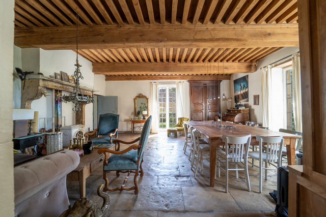 - Séjour 43 m² dalles Bourguignonnes - Plafond à la Française- Cheminée + poêle à bois.