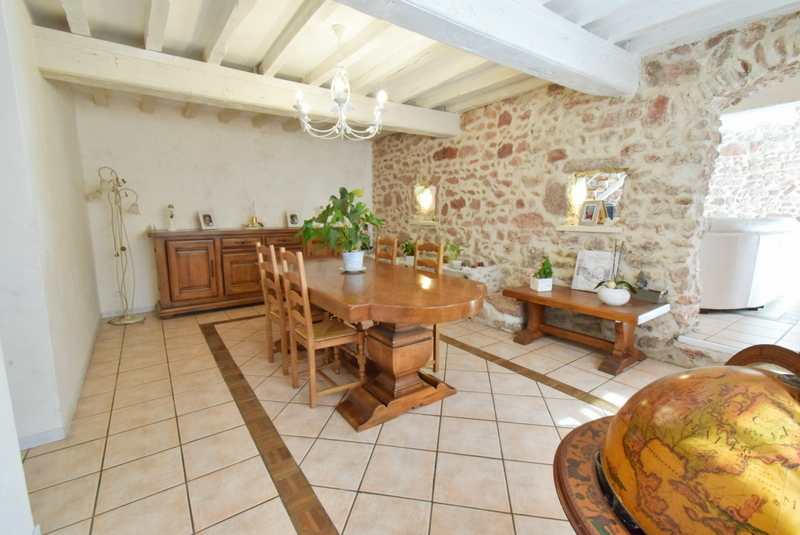 Une maison en pierre rénovée composée d'une habitation 160 m² environ - 2 chambres + 1 salle de bains - grenier à la suite, extension 125 m² avec piscine couverte, terrasse extérieure, cour et terrain, le tout sur 1000 m² environ.