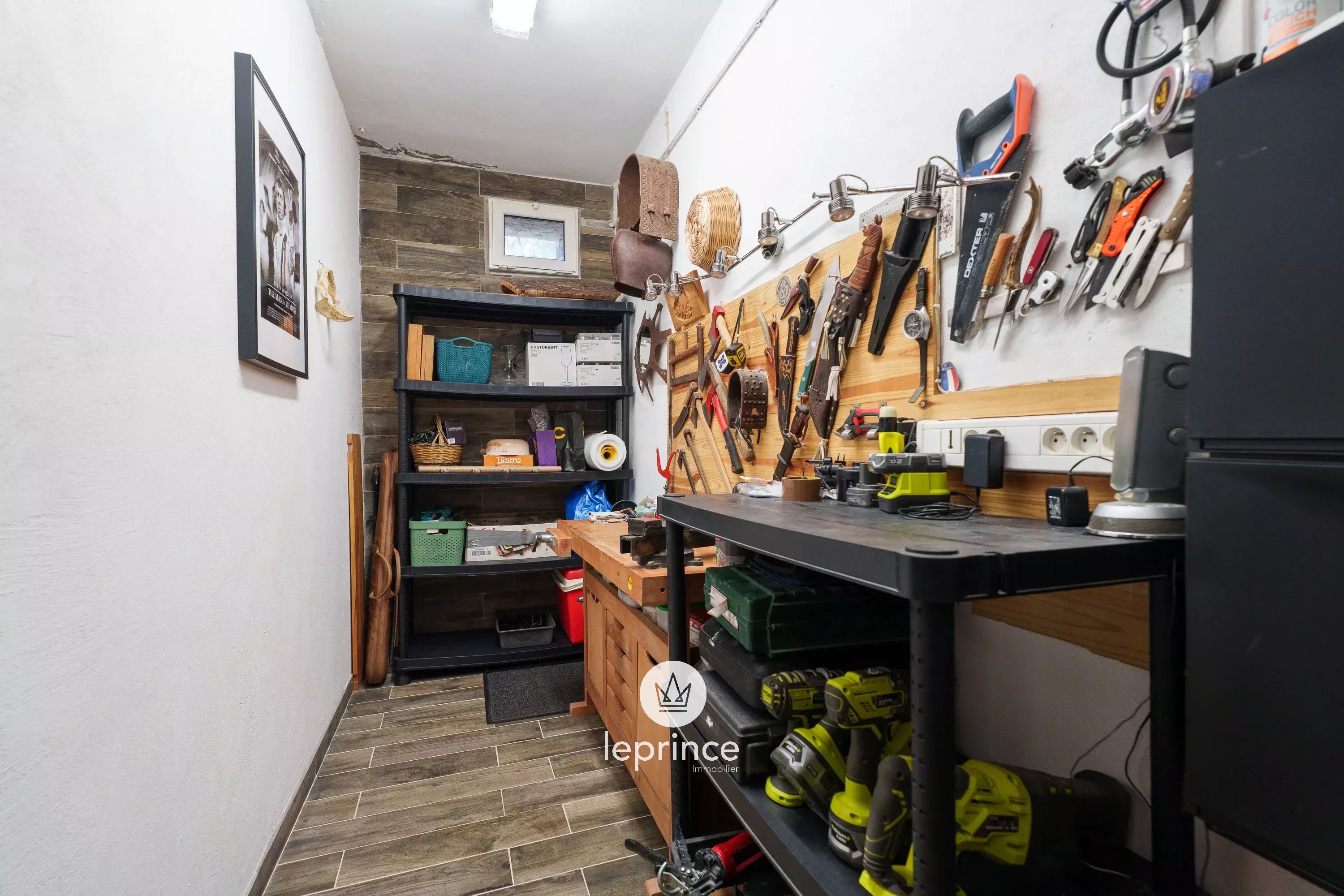 Una scala interna conduce al livello inferiore, dove si trovano un ampio dressing e un’area laboratorio, con accesso diretto all’esterno e un forte potenziale di sviluppo, con la possibilità di creare un monolocale indipendente.