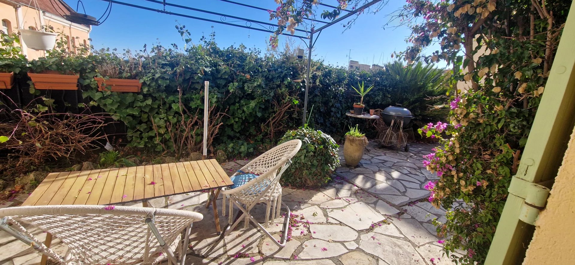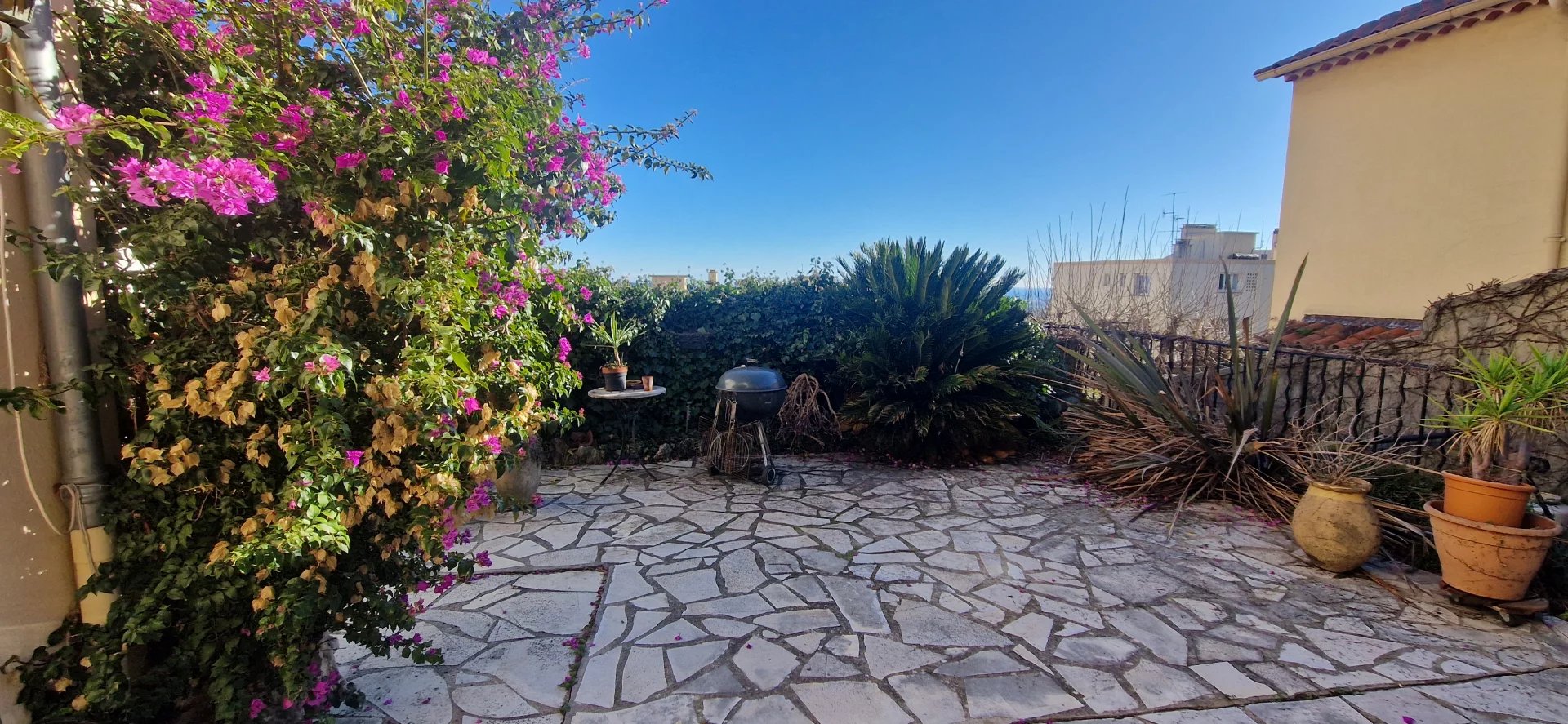 Au calme, proche de toutes les commodités du centre ville, jolie maison des années 1930, sur beau jardin en restanques et belles terrasses avec très belle vue jusqu'à la mer. D'une surface d'environ 95m2, elle se compose d'une cuisine, Salon avec cheminée, 2 chambres dont une avec mezzanine, 2 salles de douche, wc. Cave, abri jardin. Possibilité 2 logements. Parkings à proximité.
