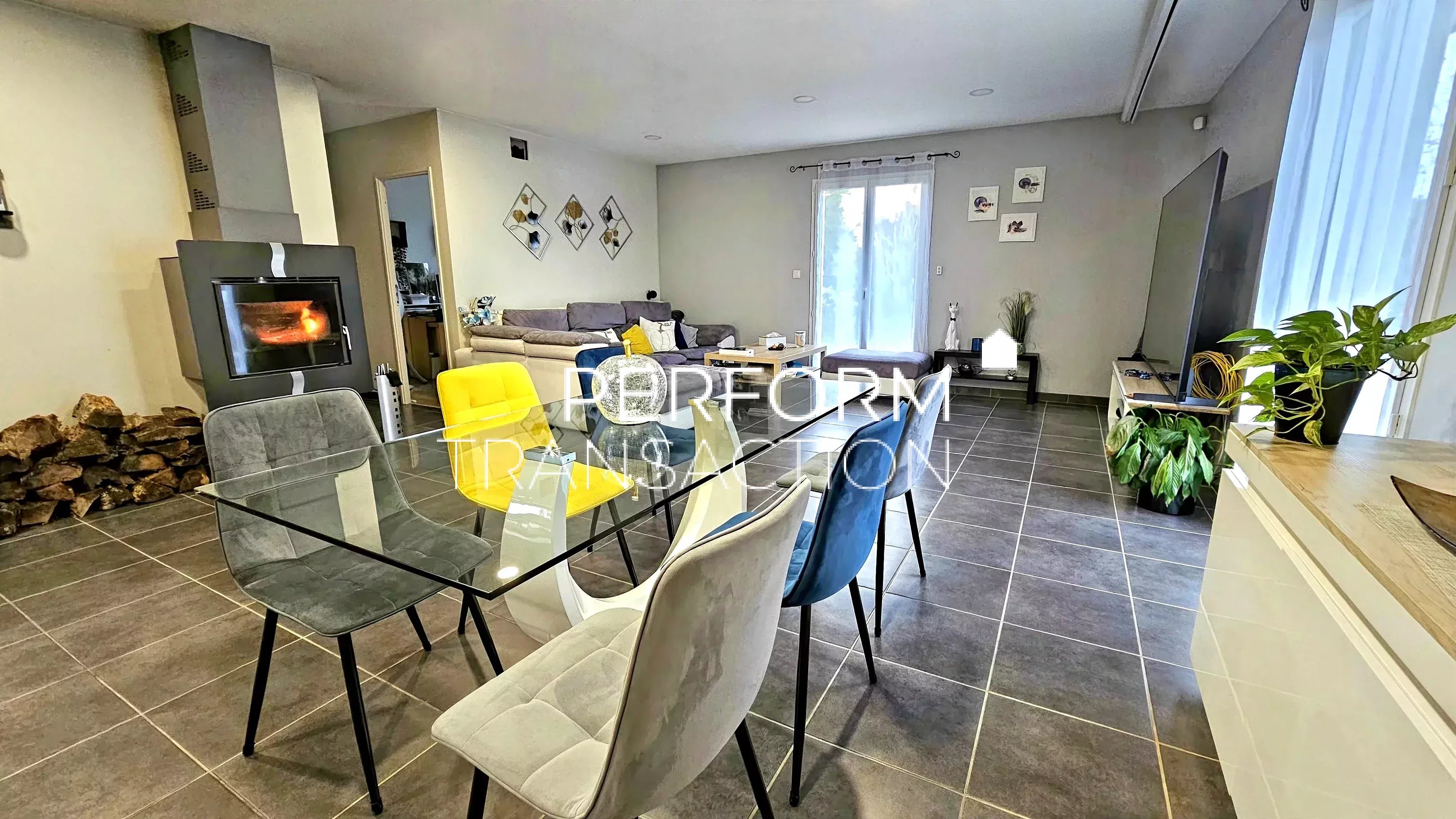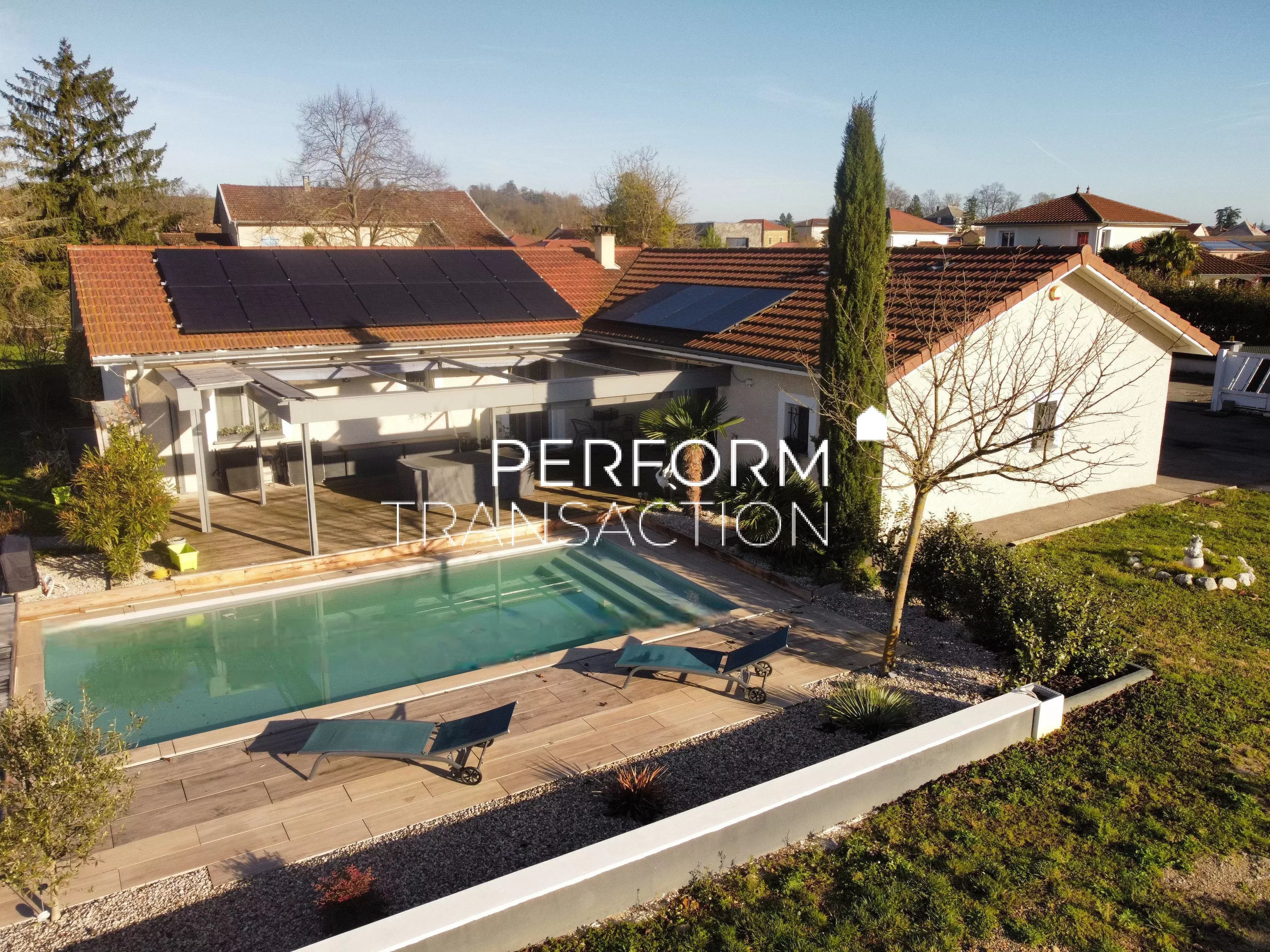 Superbe villa contemporaine de plain-pied, construite en 2013 offrant 160m² habitables alliant modernité, confort et prestations haut de gamme. Composition Pièce de vie spacieuse et lumineuse ouverte sur une cuisine moderne entièrement équipée 4 chambres dont une suite parentale avec salle d'eau privative, 1 bureau, 1 wc indépendant, 1 salle de bains principale avec wc et buanderie fonctionnelle et bien agencée. Annexes et dépendances Garage non attenant de 57m² avec porte sectionnelle motorisée, dépendance à l'arrière du garage Chalet bois au fond du terrain. Extérieurs Terrain clos, plat et arboré de 2 000m² Portail motorisé de 5 mètres Piscine chauffée (8x4m) par pompe à chaleur avec terrasse coulissante permettant de moduler l'espace Plusieurs points d'eau extérieurs Système d'arrosage automatique pour les haies Panneaux solaires pour une autonomie énergétique accrue Adoucisseur Poêle à bois Assainissement individuel Taxe F : 1570€ Perform'Transaction, Karine MILLET +7 87 39 41 51