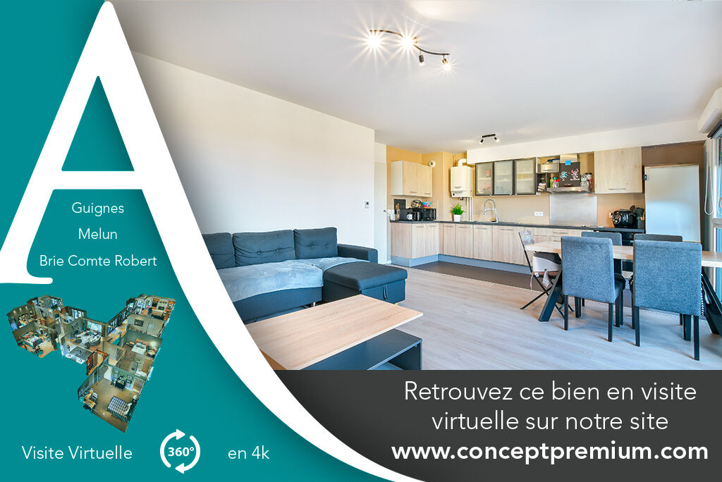 L'Adresse Concept Premium vous présente sa dernière exclusivité : Situé au coeur de la ville de Guignes, dans une résidence récente de 2015 et sécurisée, à 2 min des commerces et des écoles (maternelle et primaire), à moins de 4km de la gare (Gare SNCF direct Paris Gare de l'Est 35 min). Découvrez ce superbe appartement trois pièces d'environ 59m², avec son entrée avec placard, une grande pièce de vie lumineuse d'environ 26m² et sa cuisine américaine aménagée et équipée. Mais aussi un accès à son balcon pour profiter des petits déjeuner ou apéritifs extérieurs. Vous y découvrirez deux belles chambres dont une de plus de 11m2, une salle de bains et un WC indépendant. Vous aurez également la possibilité d'y stationner vos véhicules grâce à ses deux places privatives. Les PLUS : - un agencement au top - Une résidence récente - Une pièce de vie lumineuse - Un extérieur - Deux places de stationnement - Les écoles accessibles à pied - Aucun travaux à prévoir Vous l'aurez compris, contactez-nous pour une visite !! Copropriété de 73 lots - dont 28 lots habitation. (Pas de procédure en cours). Charges annuelles : 920 euros. Christophe VALOT (EI) Agent Commercial - Numéro RSAC : 899 435 192 - MELUN.