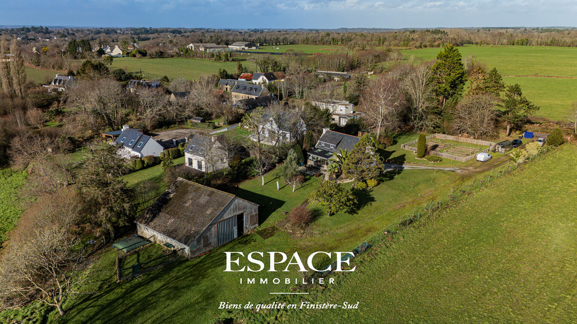 Entre campagne et littoral, à quelques minutes du Centre-ville de Concarneau et du bord de mer, cette maison soignée séduira les amateurs de calme, d'espace et de nature. Édifiée sur un terrain de 5 000 m², elle offre un environnement campagnard privilégié, idéal pour les passionnés de jardinage et de potager (citerne d'eau de 10 000 litres). La maison se compose, au rez?de?chaussée, d'une entrée, d'un salon séjour chaleureux avec cheminée, d'une cuisine ouverte aménagée, d'une véranda lumineuse tournée vers le jardin et la terrasse, d'une chambre, d'une salle de douche ainsi que d'un WC indépendant. A l'étage, une mezzanine distribue deux chambres, un dégagement avec un rangement ainsi qu'un WC. Un atout majeur de ce bien réside dans son grand hangar, véritable valeur ajoutée pour les artisans ou indépendants recherchant un espace de stockage (voitures, camping?car, bateau?) ou tout projet nécessitant de grands volumes facilement accessibles. Ce bien, qui ravira les acquéreurs en quête d'un cadre de vie authentique et de multiples possibilités, est à découvrir avec l'agence ESPACE IMMOBILIER, spécialiste des belles maisons et des beaux appartements en Finistère Sud. Les informations sur les risques auxquels ce bien est exposé sont disponibles sur le site Géorisques : www.georisques.gouv.fr. (4.06 % honoraires TTC à la charge de l'acquéreur.)