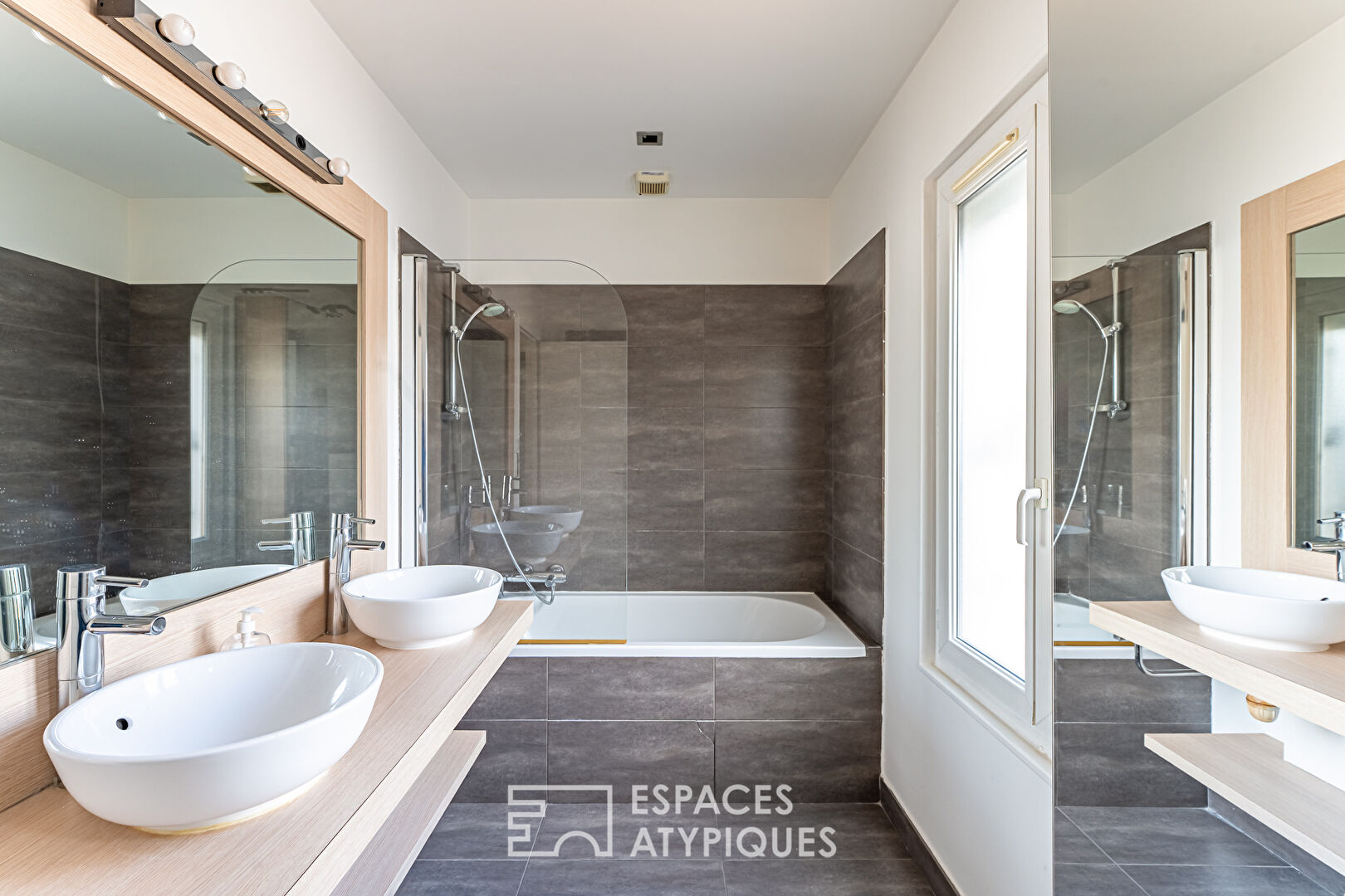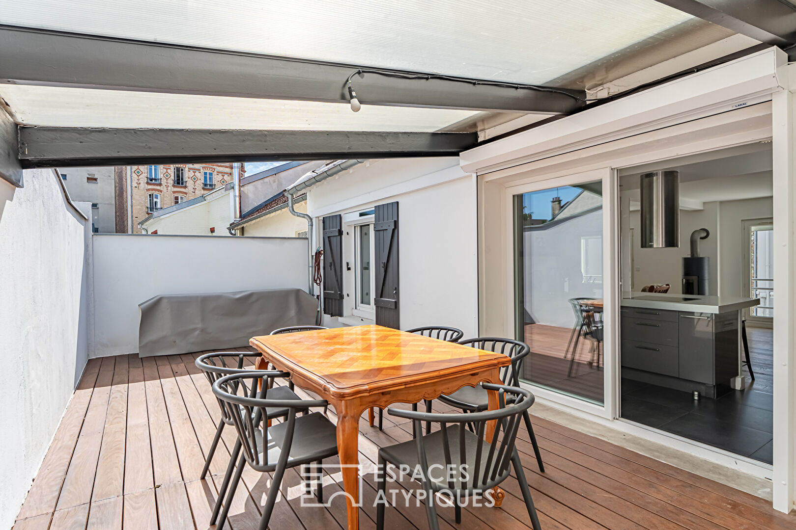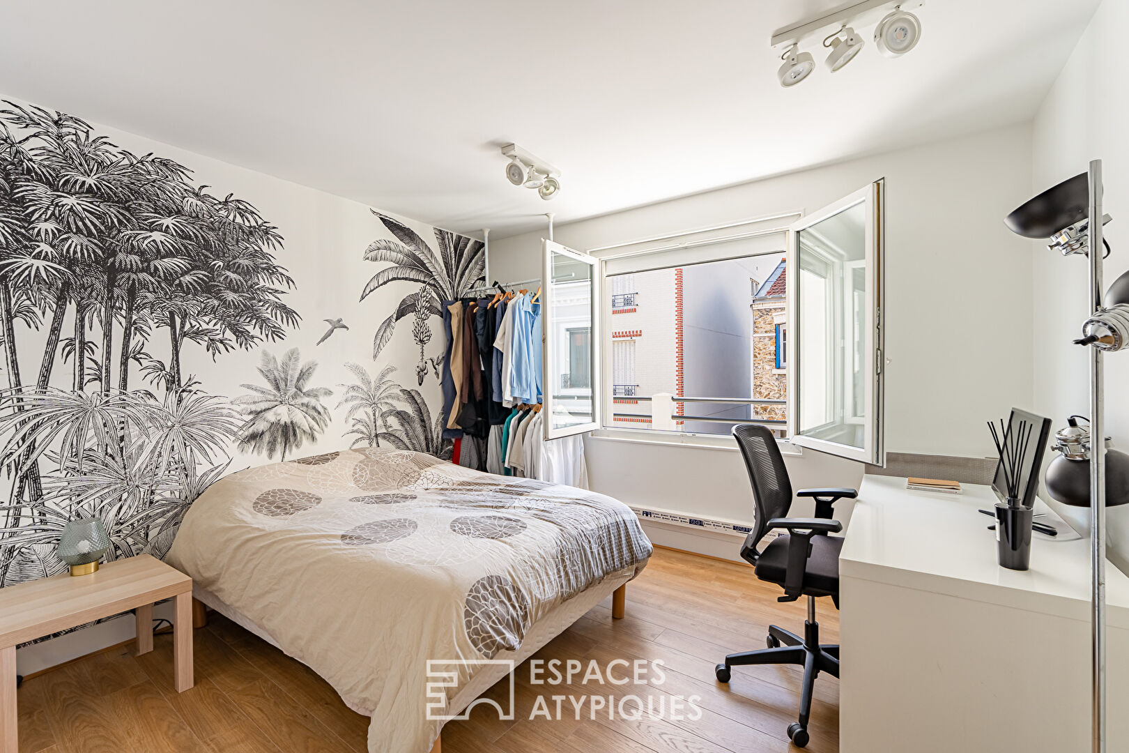 A Asnières, quartier Alma, ce duplex calme et lumineux de 178 m² au sol (115,03 m² Carrez) s'inscrit dans une petite copropriété de trois lots à faibles charges. Situé au premier et dernier étage, il se distingue par ses volumes généreux, son agencement familial et ses espaces extérieurs privilégiés : un balcon de 13m² et une terrasse de 22 m² sans vis-à-vis. Le premier niveau accueille une pièce de vie de plus de 42 m², baignée de lumière, dont la climatisation garantit un confort optimal en été, et le poêle une atmosphère chaleureuse en hiver. Elle se compose d'un séjour ouvert sur un balcon et une cuisine contemporaine ouvrant sur une terrasse idéale pour prolonger les repas en extérieur Ce même niveau comprend également deux grandes chambres de plus de 12 m², une grande salle de bains fonctionnelle ,un dressing et une buanderie. A l'étage supérieur, se trouvent une grande chambre climatisée sous combles, de 36m² au sol, une salle d'eau ainsi qu'un espace supplémentaire modulable de plus de 17 m², adapté au télétravail ou à une quatrième chambre. La terrasse orientée plein ciel constitue un véritable atout, offrant un espace intime et calme en coeur de ville. Le balcon complète agréablement les lieux en créant une continuité entre intérieur et extérieur. L'environnement immédiat se caractérise par la tranquillité du quartier Alma tout en restant parfaitement connecté : les gares d'Asnières et de Bois-Colombes ainsi que le métro Gabriel Péri (ligne 13) sont accessibles en moins d'un quart d'heure à pied. Les écoles, commerces et services de proximité participent à la qualité de vie recherchée de ce secteur. Sectorisation RPC Gilbert en maternelle / Michelet en élémentaire. Par la combinaison de ses volumes, de ses quatre chambres et de ses espaces extérieurs rares, ce duplex incarne un bien atypique et singulier. Une adresse de caractère, pensée pour conjuguer confort familial, sérénité et vie urbaine élégante. CLASSE ENERGIE : D / CLASSE CLIMAT : B. Montant moyen estimé des dépenses annuelles d'énergie pour un usage standard, établi à partir prix moyens des énergies indexés sur les années 2021, 2022, 2023 (abonnements compris) : entre 1750 euros et 2440 euros. Les informations sur les risques auxquels ce bien est exposé sont disponibles sur le site Géorisques : https://www.georisques.gouv.fr Contact : Sophie YON- 06 18 36 65 84 - EI - Agent Commercial - RSAC : 837 580 166 Nanterre. Copropriété de 4 lots - dont 2 lots habitation. (Pas de procédure en cours). Charges annuelles : 600 euros. Sophie YON (EI) Agent Commercial - Numéro RSAC : 837 580 166 - Nanterre.