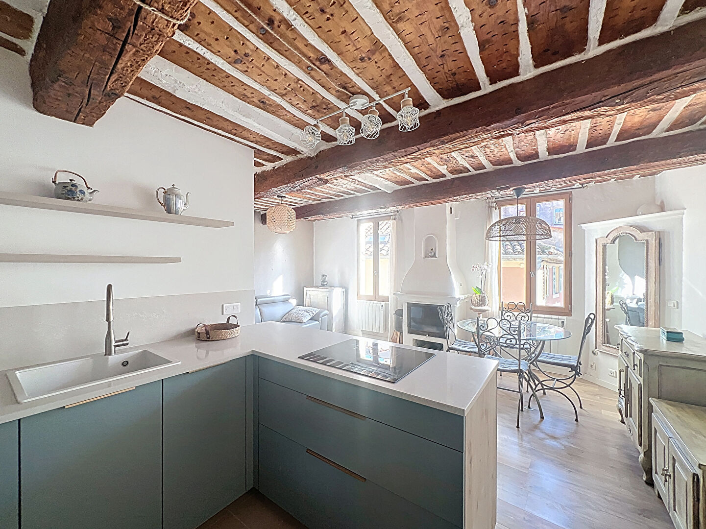 Au coeur du centre historique de Vence, sur la très agréable Place du Peyra, charmant appartement 2 pièces principales en étage élevé, de 43m² loi carrez, et exposé Est. Il se compose d'un séjour lumineux de 21m² avec insert bois et cuisine ouverte entièrement aménagée et équipée nouvellement installée, d'une chambre avec placard intégré, ainsi que d'une salle de bains avec WC. Emplacement recherché, à proximité immédiate des commerces et commodités. Charges de copropriété faibles: 59 euros par mois. Idéal pied-à-terre ou investissement locatif. Copropriété de 5 lots. Charges annuelles : 712 euros.