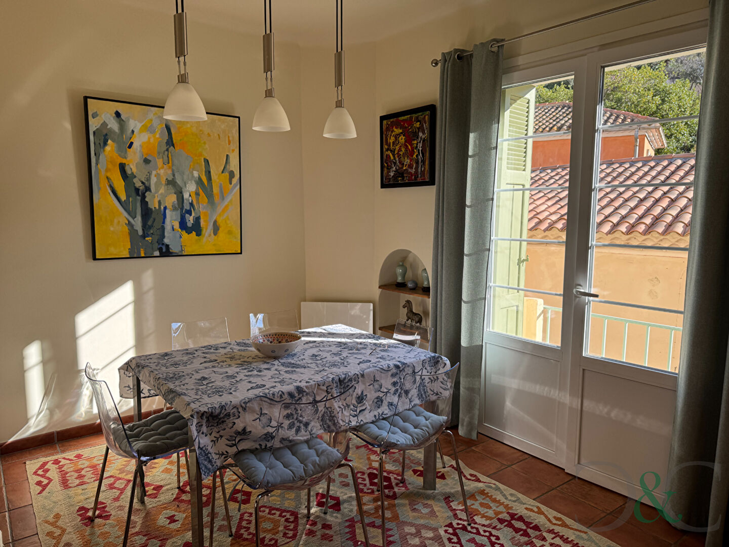 Maison de village à vendre à Bormes les Mimosas. Au coeur du village médiéval classé plus beau village de France, jolie maison entièrement rénovée et modernisée avec accès facile de plain pied. Entrée ouvrant sur la cuisine équipée, la salle à manger et son balcon et des toilettes invités. A l'étage salon avec une belle vue sur le village, chambre principale et une salle d'eau. Au réez de chaussée on trouve un espace détente, une grande chambre avec rangement. Une mezzanine en chambre avec une salle d'eau et toilettes . Le charme de l'ancien proche de la mer. Située dans une rue piétonne ou on peut mettre un table et chaises pour profiter des beaux jours ! Climatisation .Parking à proximité. Location garage possible. Vendu par Cellier et Coates agence immobilière Cellier et Coates 04 94 01 02 01