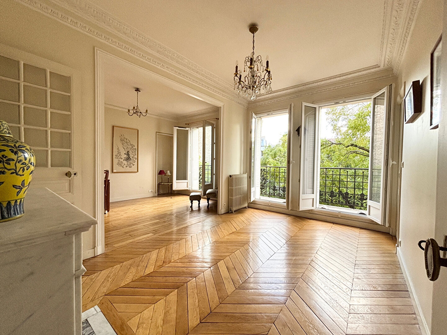 XIVè ALESIA Dans bel immeuble en Pierre de Taille parfaitement entretenu, proximité immédiate de la place d'Alésia, nous vous proposons cet appartement famial de 5 pièces en bon état. Situé au 3ème étage avec ascenseur , l'appartement bénéficie d'une exposition rue et cour, offrant une vue dégagée et une belle luminosité . Il se compose d'entre entrée , d'un séjour avec balcon, d'une salle à manger attenante, de 3 chambres (ou 2 chambres 1 bureau selon configiration) d'une cuisine indépendante, d'eun salle de bains une salle d'eau , de nombreux rangements, un wc séparé. Le charme de l'ancien est au ende-vous parquet Moulures cheminée. L'immeuble est parfaitement entrenu et dispose d'un ascenseur d 'un espace pour les vélos et caves (4.17 % honoraires TTC à la charge de l'acquéreur.) Copropriété de 33 lots - dont 17 lots habitation. (Pas de procédure en cours). Charges annuelles : 2449 euros.