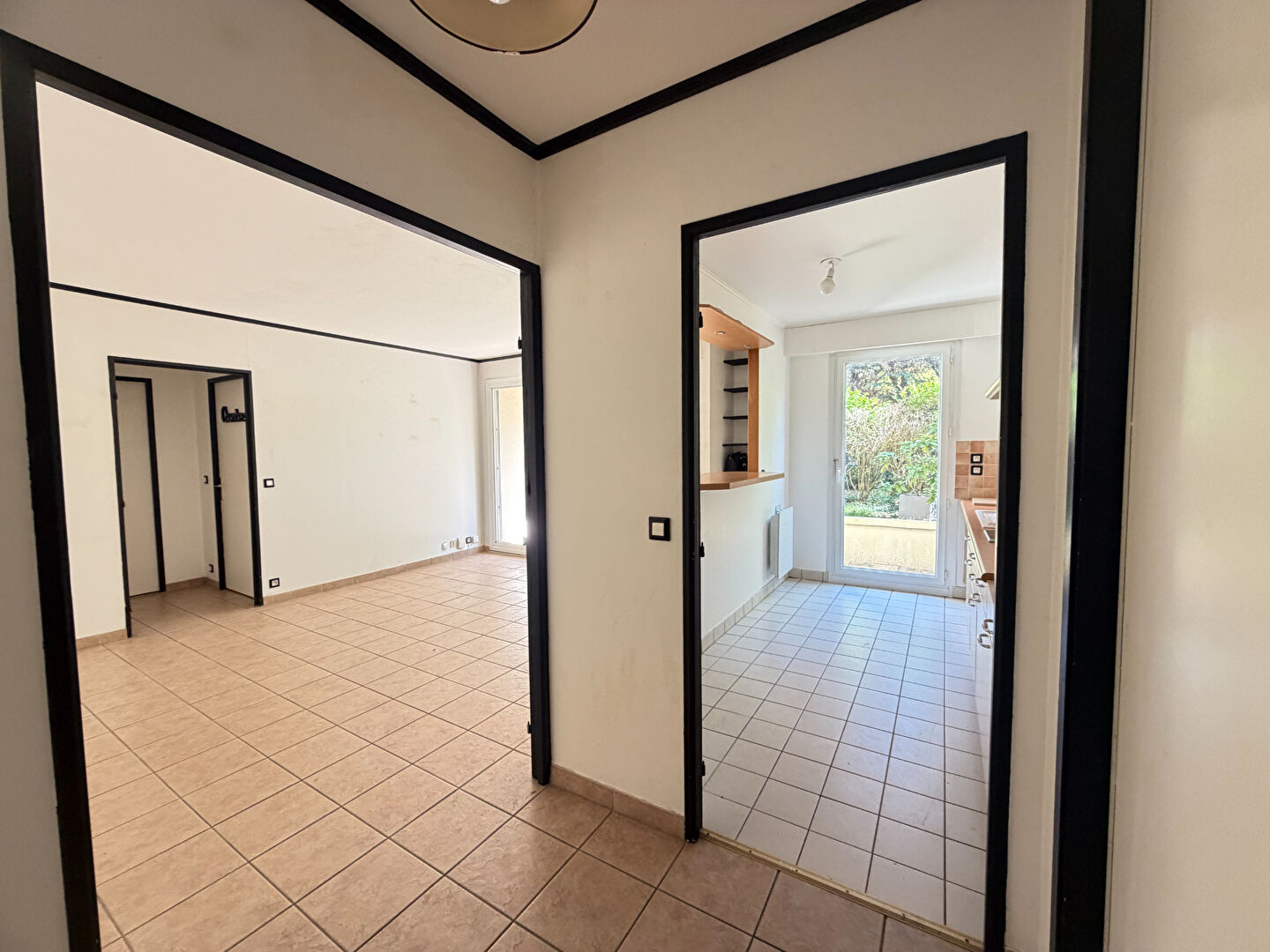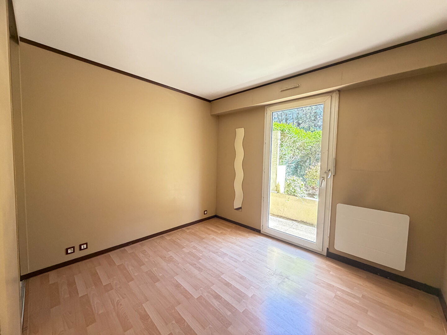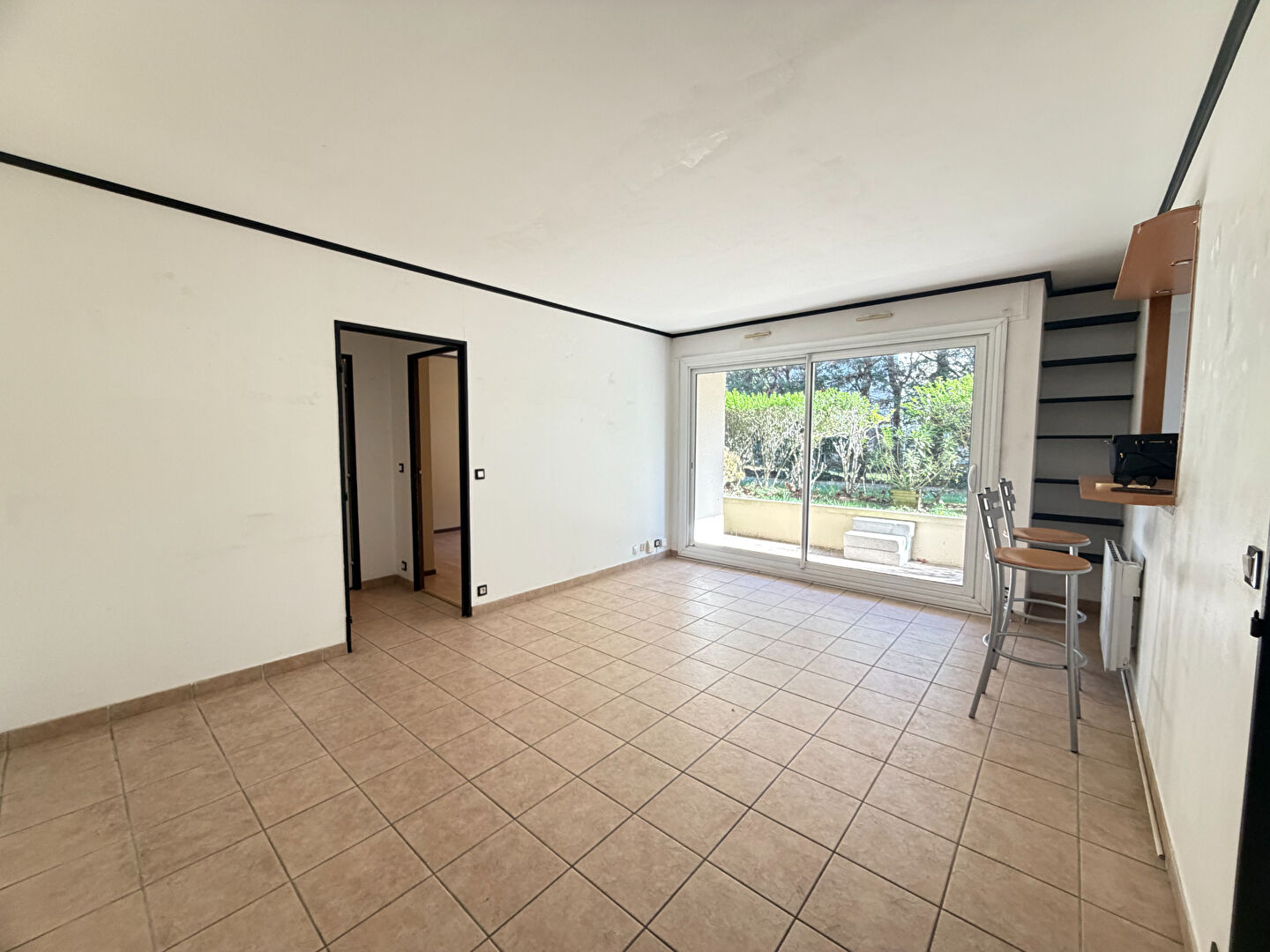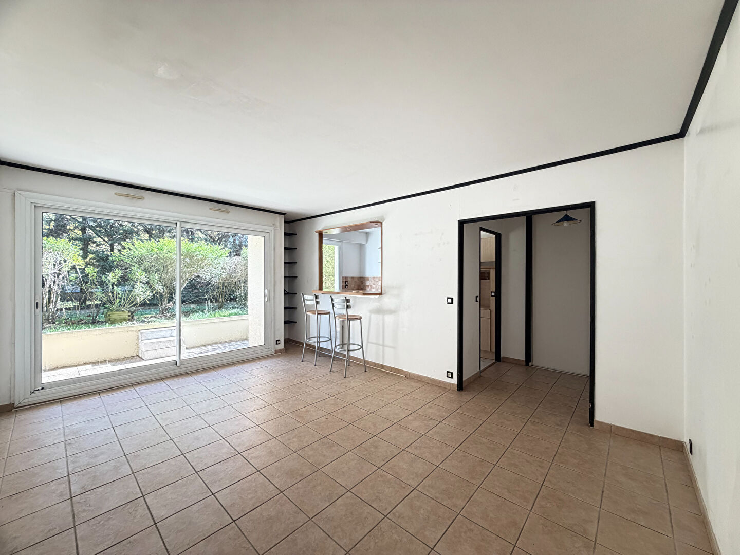 Dans une résidence standing et un environnement calme, appartement 2 pièces de 47m2 en rj avec terrasse/jardin de 12m2. Il est composé d'une entrée avec placard, une cuisine aménagée semi-ouverte, séjour de 18,50m2 donnant sur terrasse, un dégagement mène à la chambre avec placard, au wc séparé et à la salle de bains. Une cave et un BOX en sous-sol complètent ce bien. Quelques travaux à prévoir. Honoraires à la charge de l'acquéreur : 5% TTC. Charges annuelles : 1.400 euros TTC. EXCLUSIVITÉ. (5.15 % honoraires TTC à la charge de l'acquéreur.) Copropriété de 40 lots. Charges annuelles : 1400 euros.