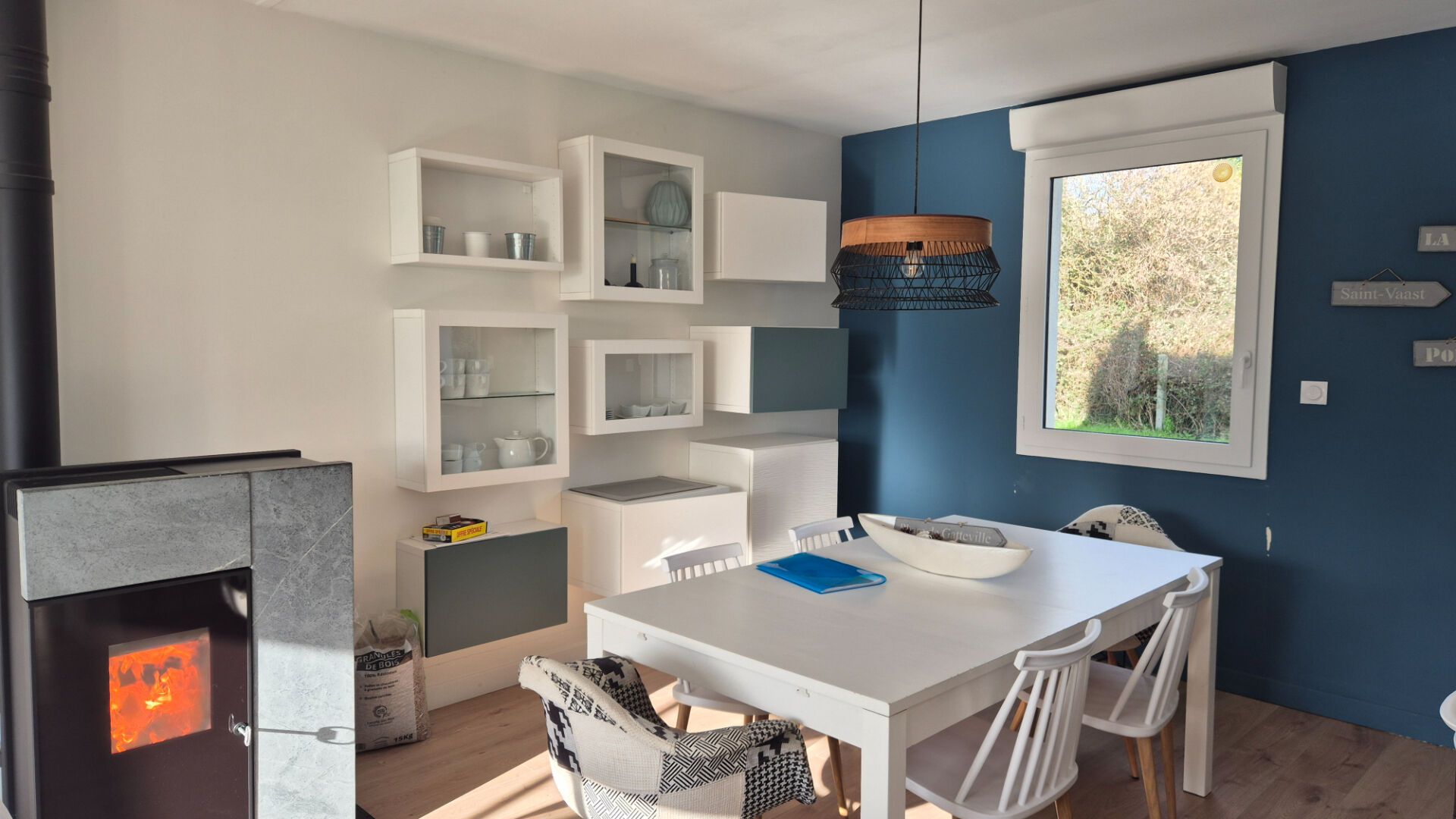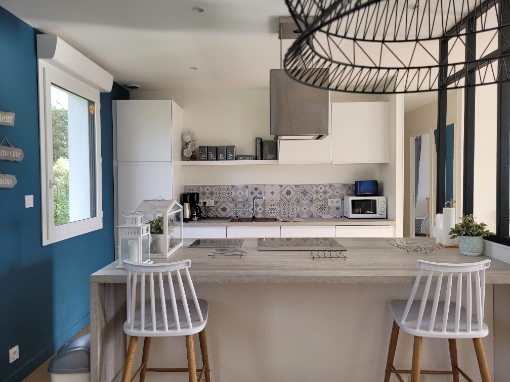 Situé dans un environnement calme et verdoyant tout en étant à proximité immédiate de la mer et à 6 km du joli bourg de Quettehou et de toutes ses commodités, vous serez séduit par ce charmant pavillon entièrement rénové et pouvant être vendu meublé, offrant une belle et lumineuse pièce de vie avec poêle à granulés et cuisine toute équipée, une jolie chambre avec dressing et salle d'eau, et deux belles chambres complémentaires à l'étage. Au sous-sol vous découvrirez un garage avec porte électrique, une cave mais également une pièce aménagée en salle de sport de plus de 30m². Agréable terrasse surélevée exposée plein Sud et jardin tout autour, le tout édifié sur une parcelle de 1025m² environ. Les informations sur les risques auxquels ce bien est exposé sont disponibles sur le site Géorisques : www.georisques.gouv.fr / Pierre LEREVEREND (5.40 % honoraires TTC à la charge de l'acquéreur.)
