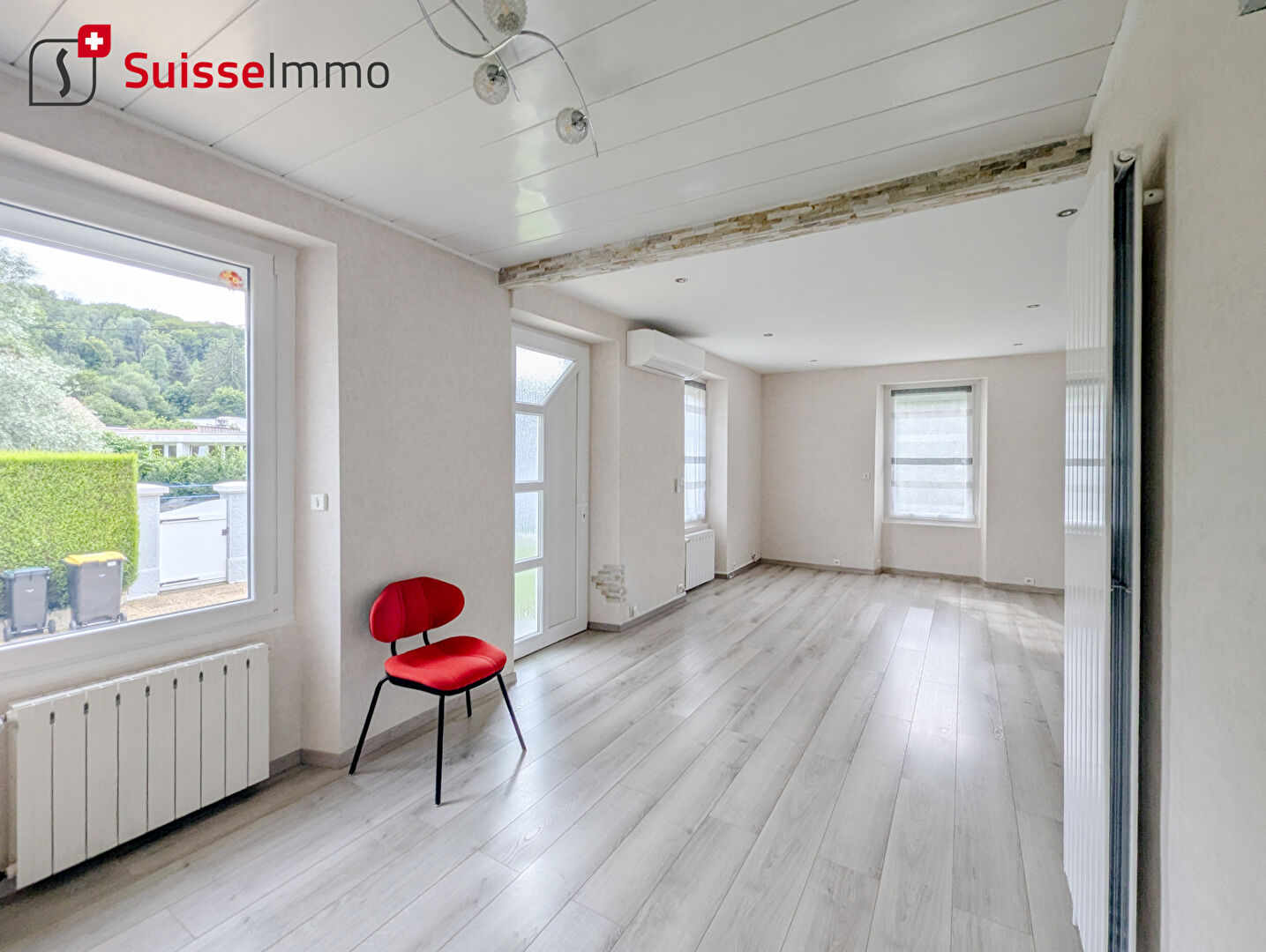EXCLUSIVITE SUISSE-IMMO Pont de Roide, proche centre ville et tous commerces,12 Kms de la frontière Suisse. Je vous propose cette très jolie maison mitoyenne sur sou-sol de 106M2 totalement rénovée !! - Au RDC: - Une cuisine équipée - Un salon-salle à manger - Une salle de bains avec toilettes - Une belle chambre A l'étage: - Deux grandes chambres - Un toilettes séparé - Une petite pièce d'eau - Au sous-sol: - Une grande buanderie avec évier, adoucisseur d'eau?.. - Une salle d'eau avec toilettes - Une pièce supplémentaire - Une petite remise - Un garage avec porte sectionnelle récente. Les+ - Aucuns travaux - Très proche commerces - Fenêtres PVC/DV/OB - Volets électriques - Chaudière gaz et possible poêle à Pellet - Climatisation - Cuisine récente - 3 toilettes ( un à chaque étage) - 2 salles d'eau - Toiture OK - Terrain totalement clos - Diag en D - Très lumineuse Si vous chercher un bien sans travaux !! Idéale première acquisition ou premier investissement.... Votre conseiller Suisse-immo Thiery Luca 0647063006 thiery.luca@suisse-immo.fr Thiery LUCA (EI) Agent Commercial - Numéro RSAC : 405 054 388 - Belfort.