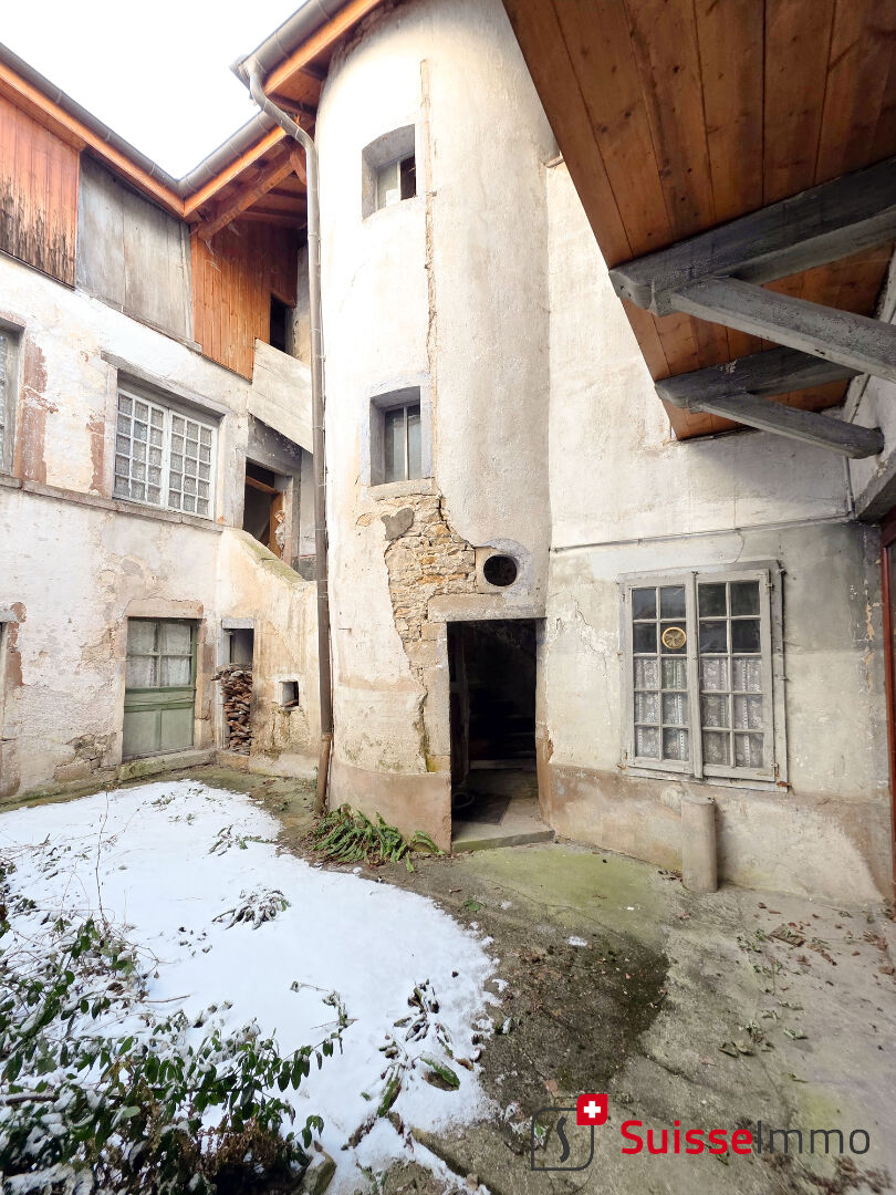 Pays de Clerval, Suisse-immo vous propose à la vente cet ancien presbytère à rénover du17ème siècle Bâtit en pierres, il se compose d'un premier bâtiment en partie rénové d'une surface de 134M2 avec un salon style début 20ème, 4 grandes chambres, un coin cuisine, une salle d'eau, et d'un toilettes, fenêtres PVC double vitrage. Deux autres annexes accolées à rénover composées de plusieurs pièces et de combles aménageables complètent ce bien. Ce presbytère bâtit en pierres possède cheminées, escalier à vis, cave voûtée, cloître, belle charpente ancienne,??. Une très belle bâtisse offrant diverses possibilités d'aménagement. Idéale investisseurs pour création logements, amateurs d'histoire et d'authenticité??. A découvrir !! Votre conseiller Suisse-immo Thiery Luca 0647063006 Thiery.luca@suisse-immo.fr Thiery LUCA (EI) Agent Commercial - Numéro RSAC : 405 054 388 - Belfort.