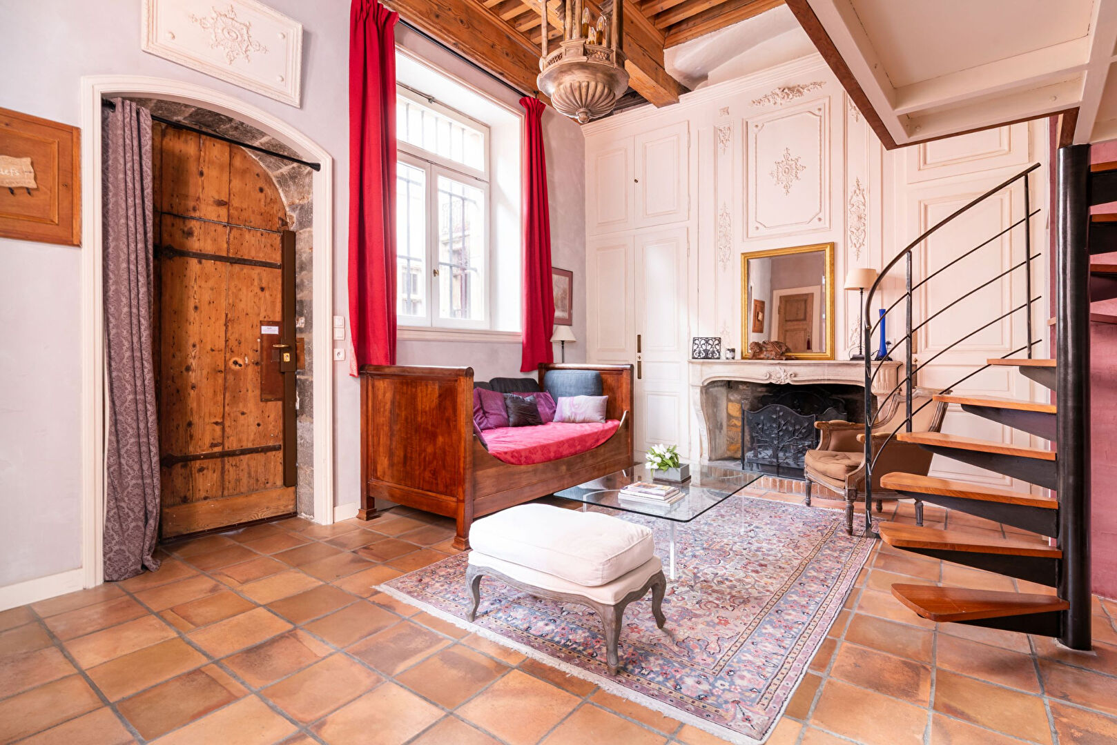 Vivre au coeur de la Tour Rose L'âme du Vieux-Lyon chez vous Nichée dans l'un des lieux les plus emblématiques du Vieux-Lyon, au sein de la mythique Tour Rose, cet appartement d'exception d'une superficie de 49m² carrez, incarne l'alliance parfaite entre patrimoine Renaissance et art de vivre contemporain. Dès l'entrée, le charme opère : hauteurs sous plafond, cheminée d'époque, boiseries anciennes et plafonds à la française témoignent de l'histoire singulière de ce lieu chargé d'âme. L'espace de vie, chaleureux et lumineux, s'organise autour d'un séjour élégant, sublimé par des matériaux nobles et une atmosphère feutrée. La mezzanine, accessible par un escalier au design affirmé, offre un espace intime et fonctionnel, tandis que la cuisine ouverte, parfaitement intégrée, invite à la convivialité dans un cadre unique. Vivre ici, c'est habiter un morceau d'histoire lyonnaise, à deux pas des traboules, des quais de Saône et des meilleures tables du quartier Saint-Jean. Un bien rare, destiné aux amateurs de lieux authentiques, où chaque détail raconte une histoire. Un appartement de caractère, pour ceux qui recherchent l'exception. Copropriété de 27 lots - dont 27 lots habitation. Charges annuelles : 675.72 euros.