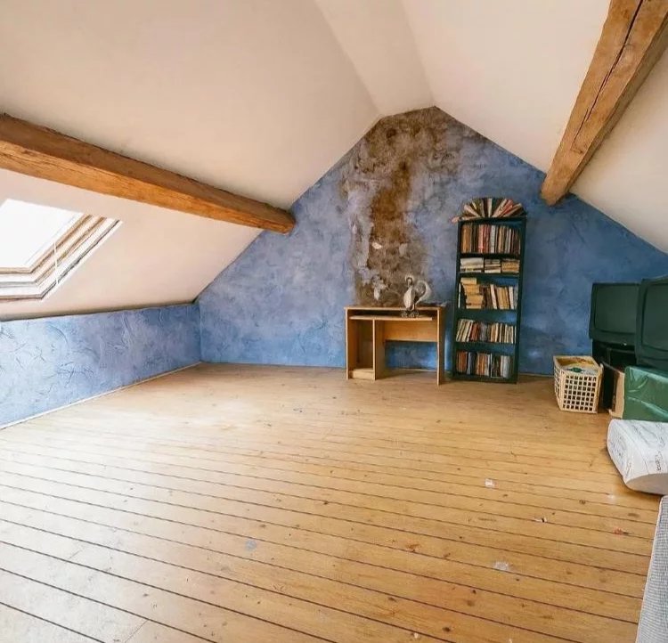 L’étage dessert deux chambres. une salle d’eau à rénover. ainsi qu’un grenier aménagé offrant un bel espace supplémentaire (chambre. bureau ou salle de jeux selon vos besoins).
