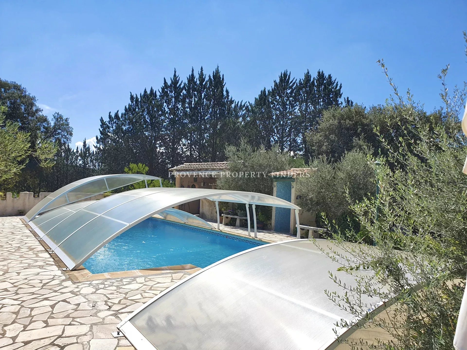 Cette jolie villa est très bien située dans un quartier charmant et calme à Lorgues. 6400m2 terrain clôturé.