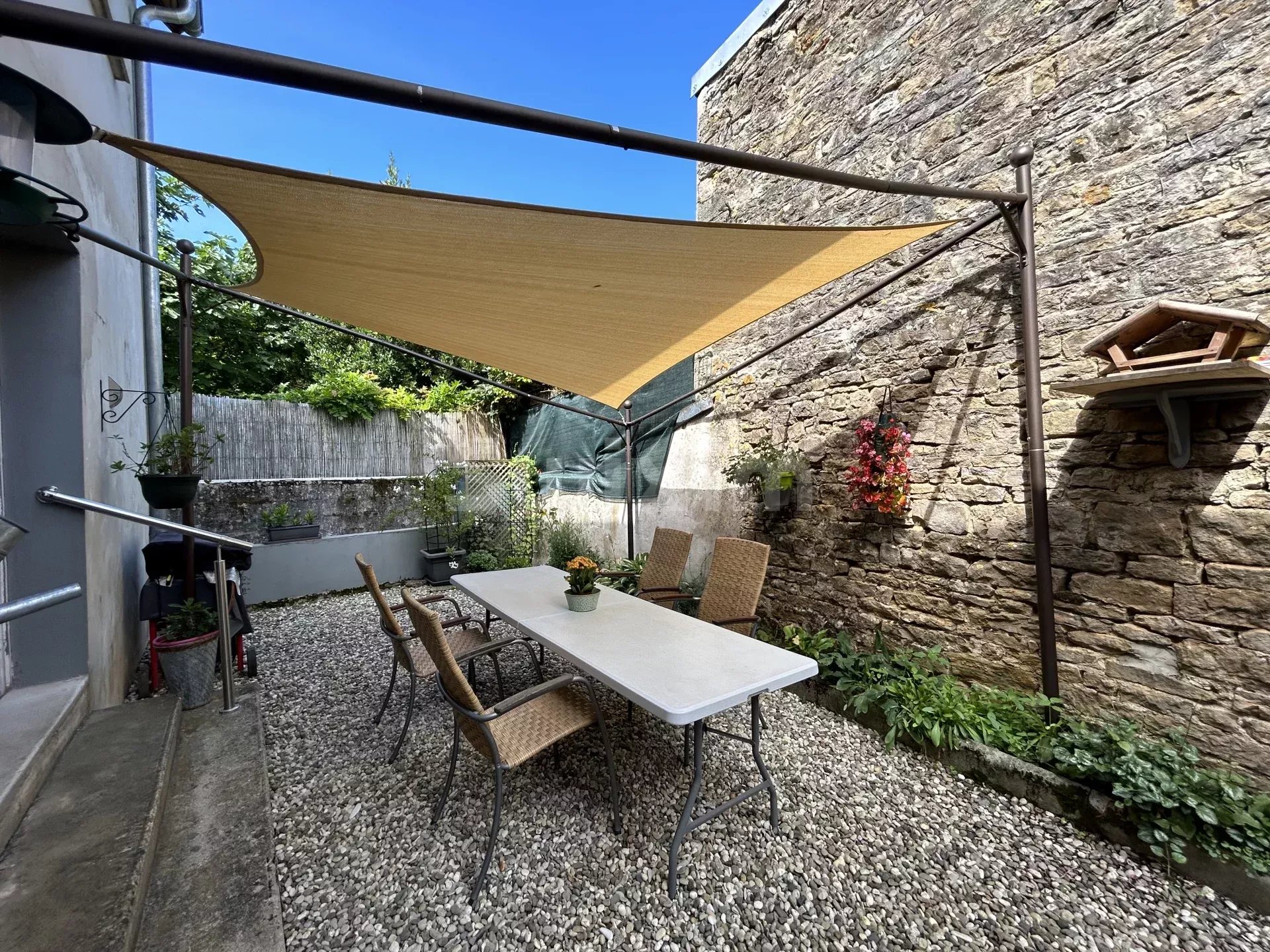 REF HN2446 : Idéalement située au centre ville de Voiteur au coeur du vignoble jurassien, cette jolie maison lumineuse avec 178 M² habitable, mitoyenne d'un côté se compose au rdc d'une cuisine équipée et meublée, 1 buanderie avec toilette et lavabo, un grand salon/salle à manger avec accès à un patio très agréable. 1 escalier dessert 5 grandes chambres spacieuses, 1 salle de douche, 1 toilette. Un garage de 60 M², une cave en terre battue complètent ce bien.