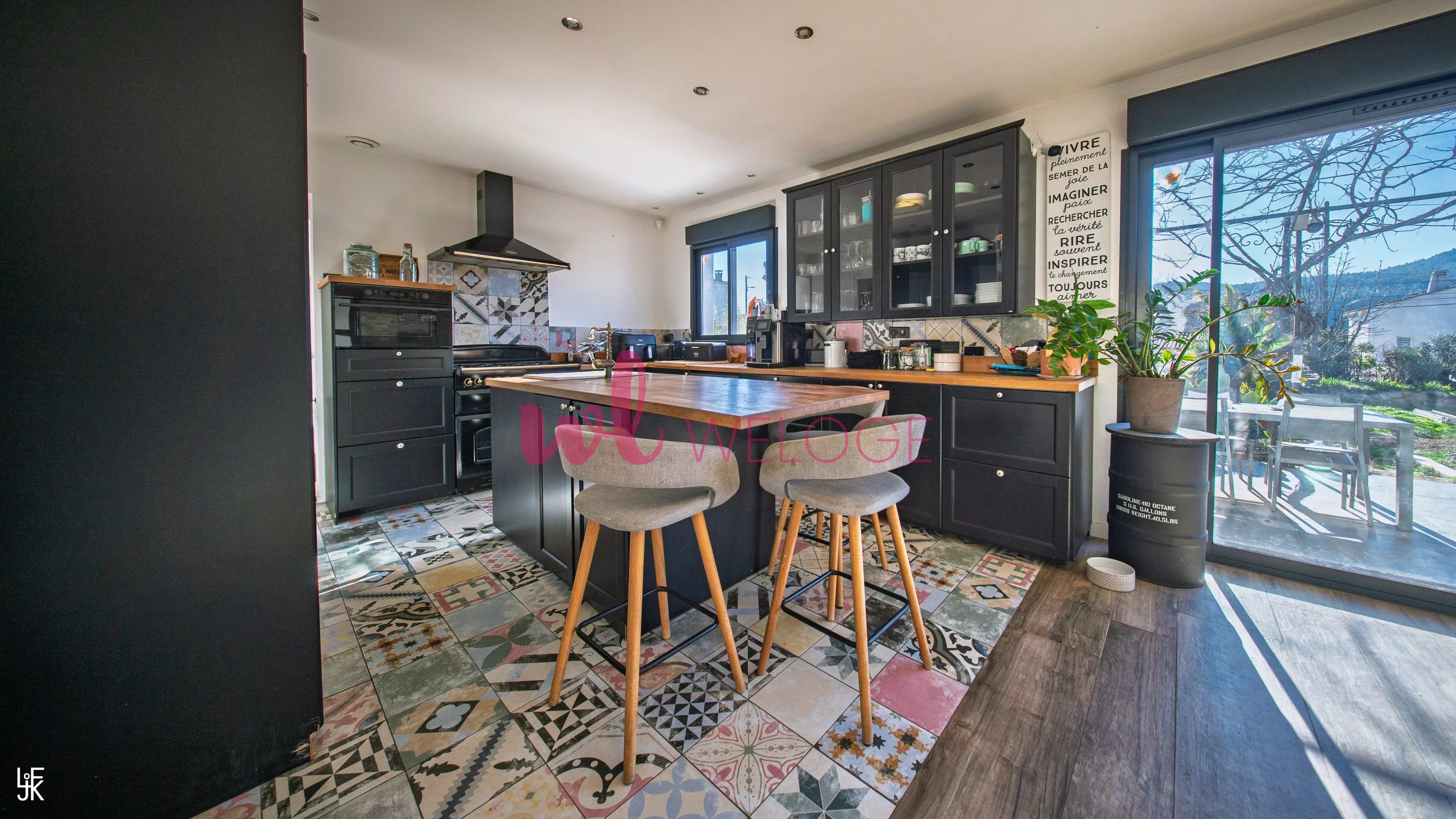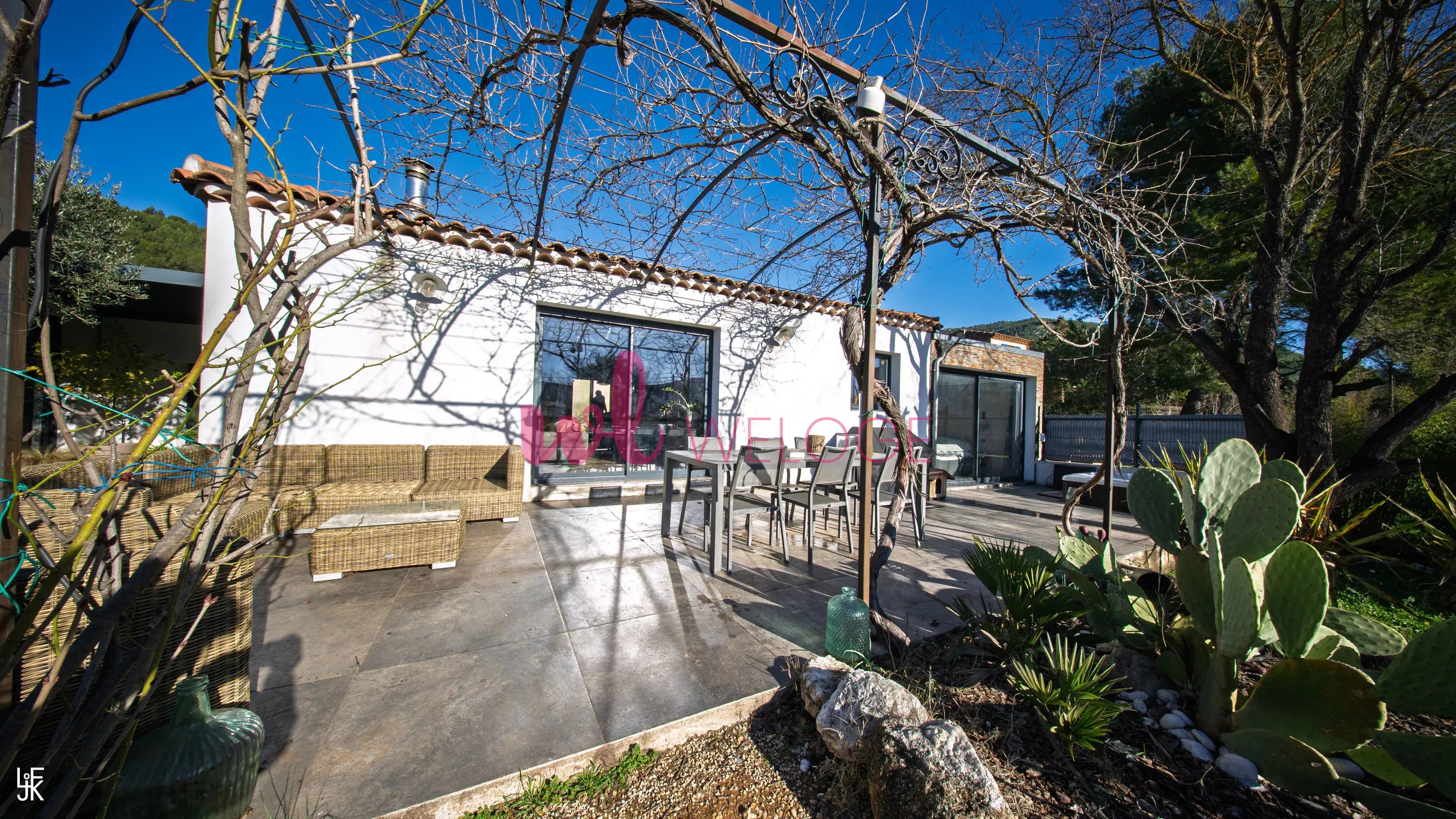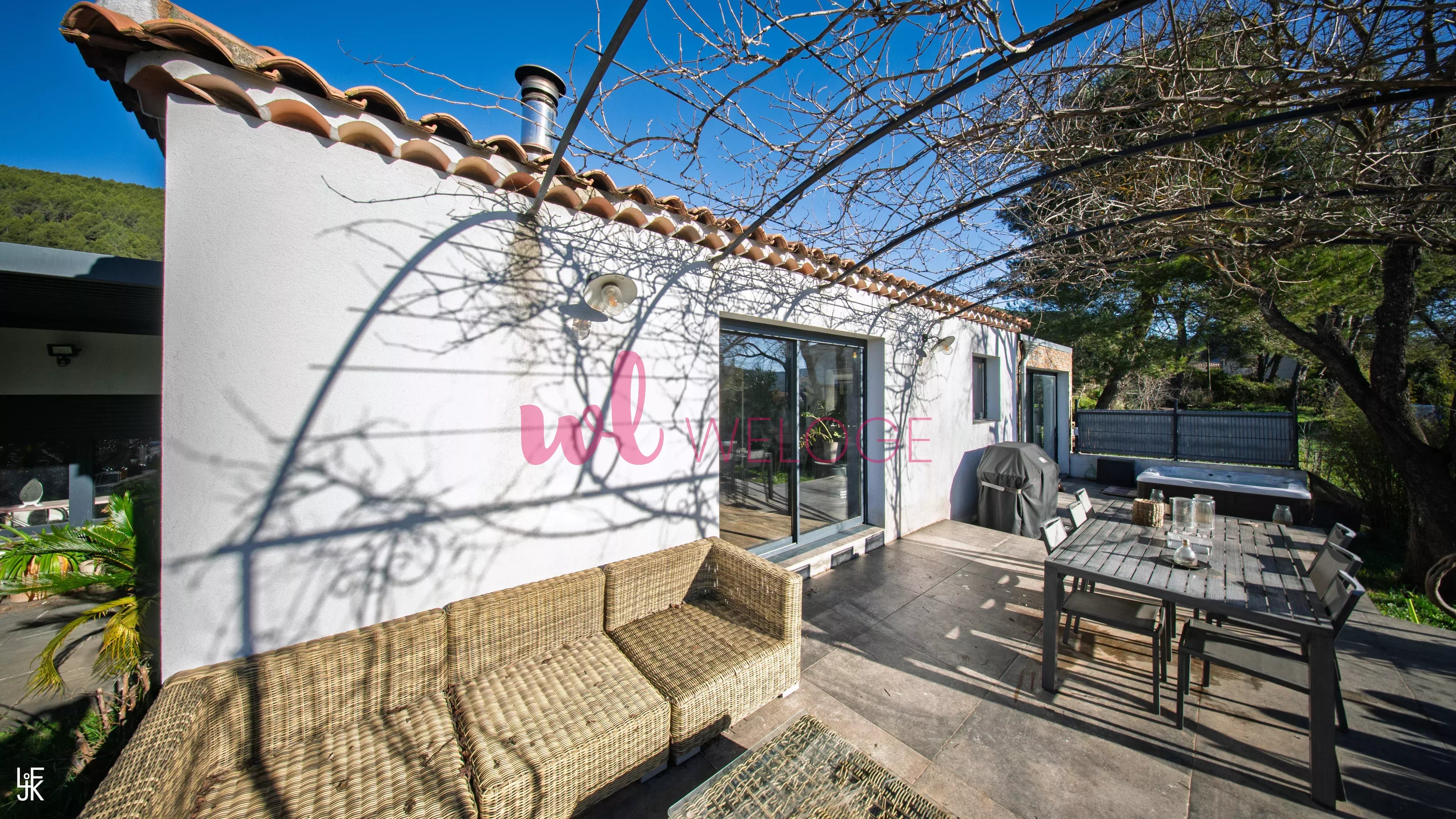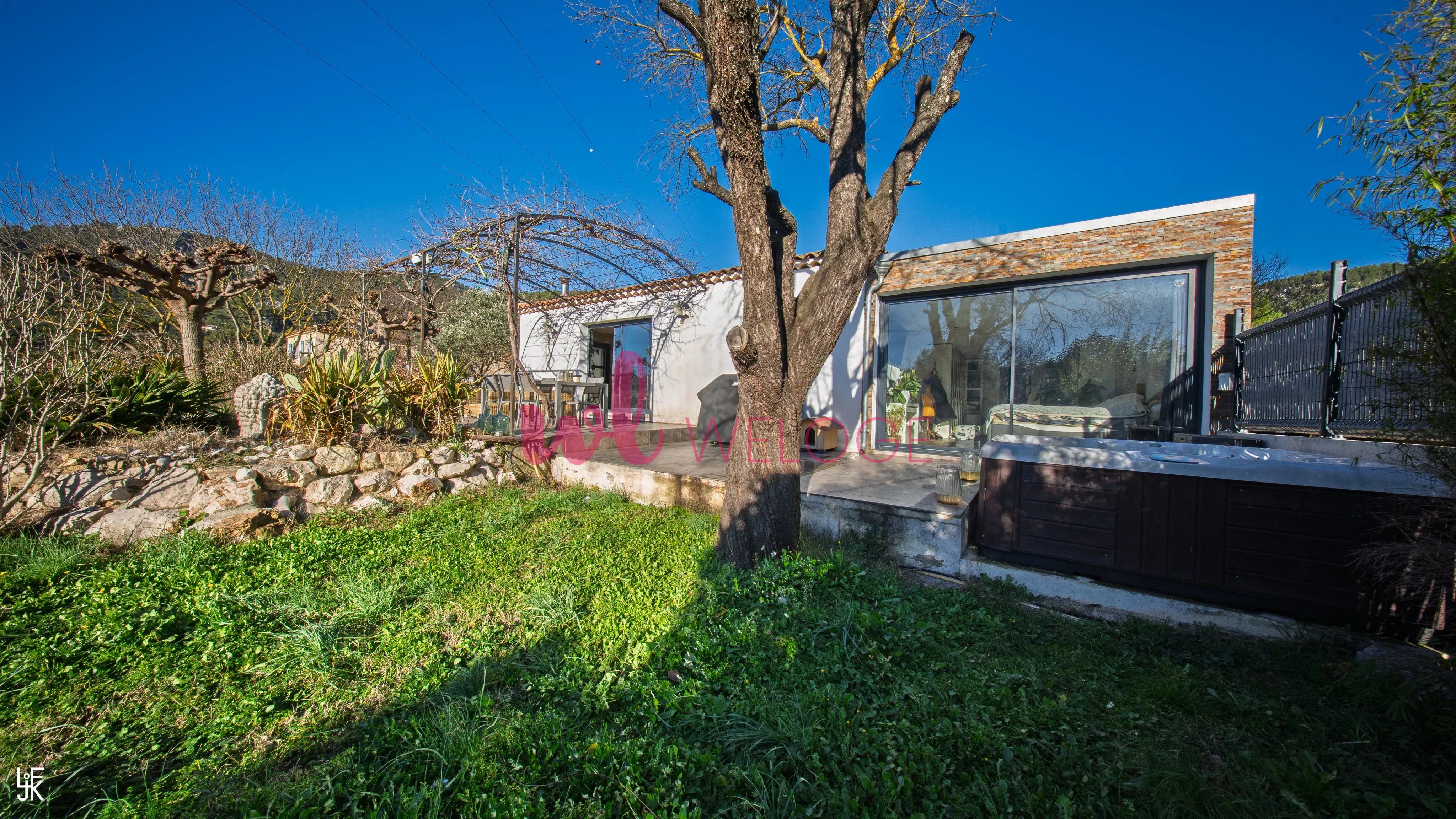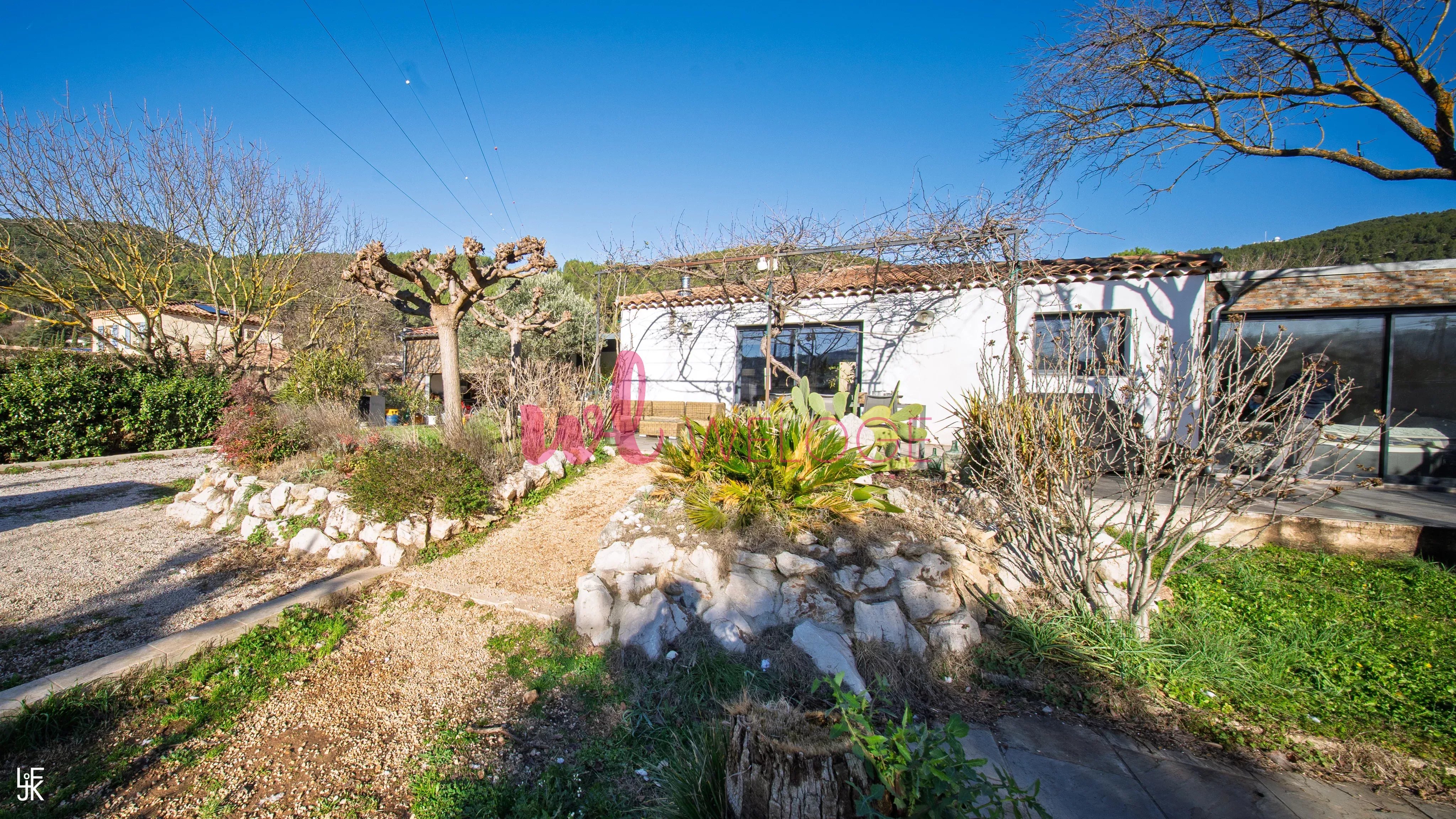 Frédéric LORGEOUX, votre agent WELOGE, vous propose à la vente cette maison à l’ambiance résolument contemporaine, mêlant avec justesse modernité, chaleur et esprit méditerranéen, située dans un cadre résidentiel privilégié à Cuges-les-Pins. Les espaces extérieurs ont été pensés comme de véritables lieux de vie. Autour de la piscine, les terrasses minérales, la végétation soignée (palmiers, oliviers, haies denses) et les lignes épurées créent une atmosphère calme et intimiste, propice à la détente. L’ensemble évoque un esprit maison de vacances haut de gamme, parfaitement intégré dans son environnement naturel. Un espace à l’arrière de la maison, plus discret, permet également de s’isoler ou d’organiser des usages complémentaires, à l’écart des espaces de réception. La terrasse, aménagée sous une pergola moderne, prolonge naturellement l’intérieur vers l’extérieur. Elle offre un espace ombragé élégant, idéal pour les repas ou les moments de repos, tout en renforçant la fluidité entre dedans et dehors. À l’intérieur, la pièce de vie se distingue par un style contemporain chaleureux, associant des matériaux bruts et authentiques : - murs en parement minéral, - sols carrelés à l’aspect bois, associés à des carreaux graphiques, - cuisine noire mate au design soigné. La distribution intérieure est particulièrement fonctionnelle. La maison offre une suite parentale d’environ 33 m², avec salle de douche attenante et dressing, un bureau adapté au télétravail ou à un usage polyvalent, ainsi qu’une chambre d’enfant, l’ensemble s’articulant autour d’un vaste espace de vie de plus de 50 m². L’ensemble est sublimé par une belle luminosité naturelle, grâce aux larges ouvertures donnant directement sur les terrasses et le jardin. Le rendu est à la fois moderne, convivial et très habité, loin d’un intérieur standardisé. Un grand garage double vient compléter les prestations, offrant un espace généreux pour le stationnement et le rangement. Cette maison séduira les acquéreurs à la recherche d’un bien clé en main, au style affirmé, offrant une véritable qualité de vie intérieure et extérieure, dans un environnement résidentiel recherché. Les informations relatives aux risques auxquels ce bien est exposé sont consultables sur le site Géorisques : www.georisques.gouv.fr