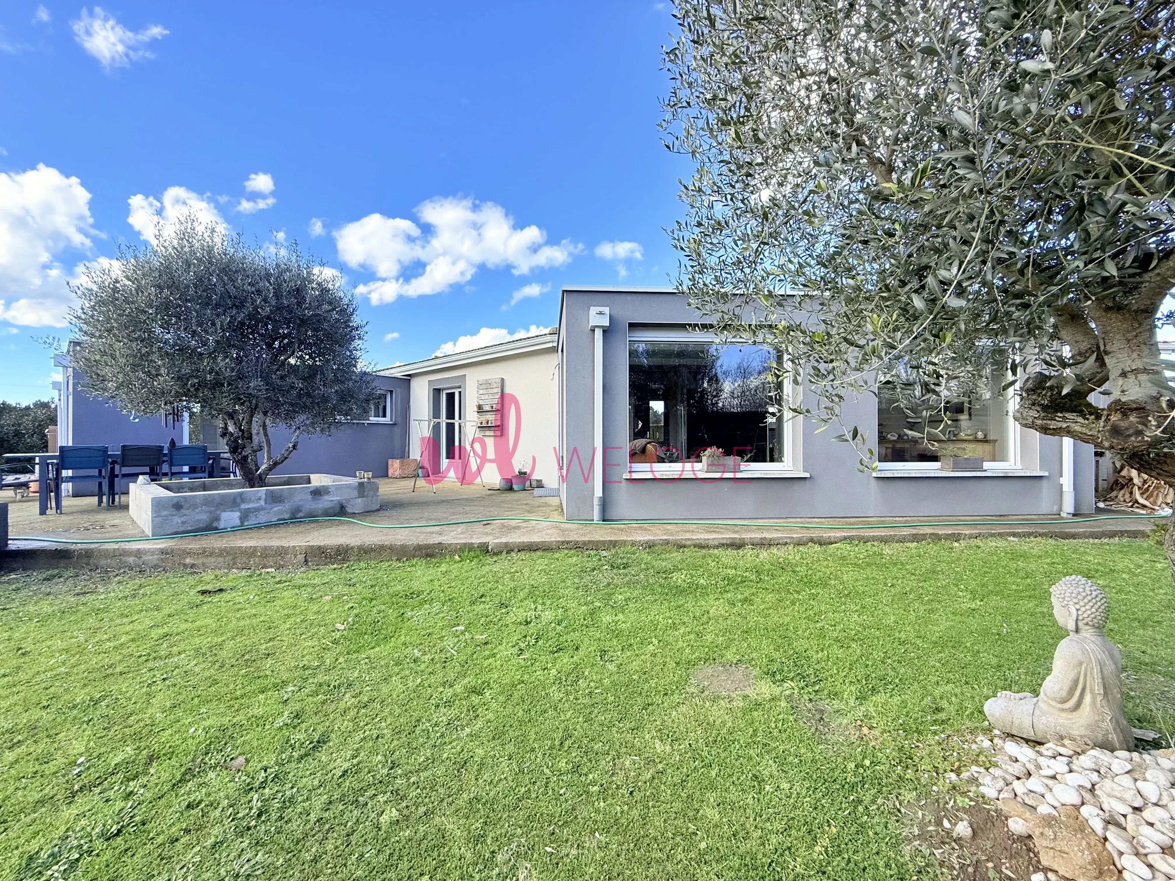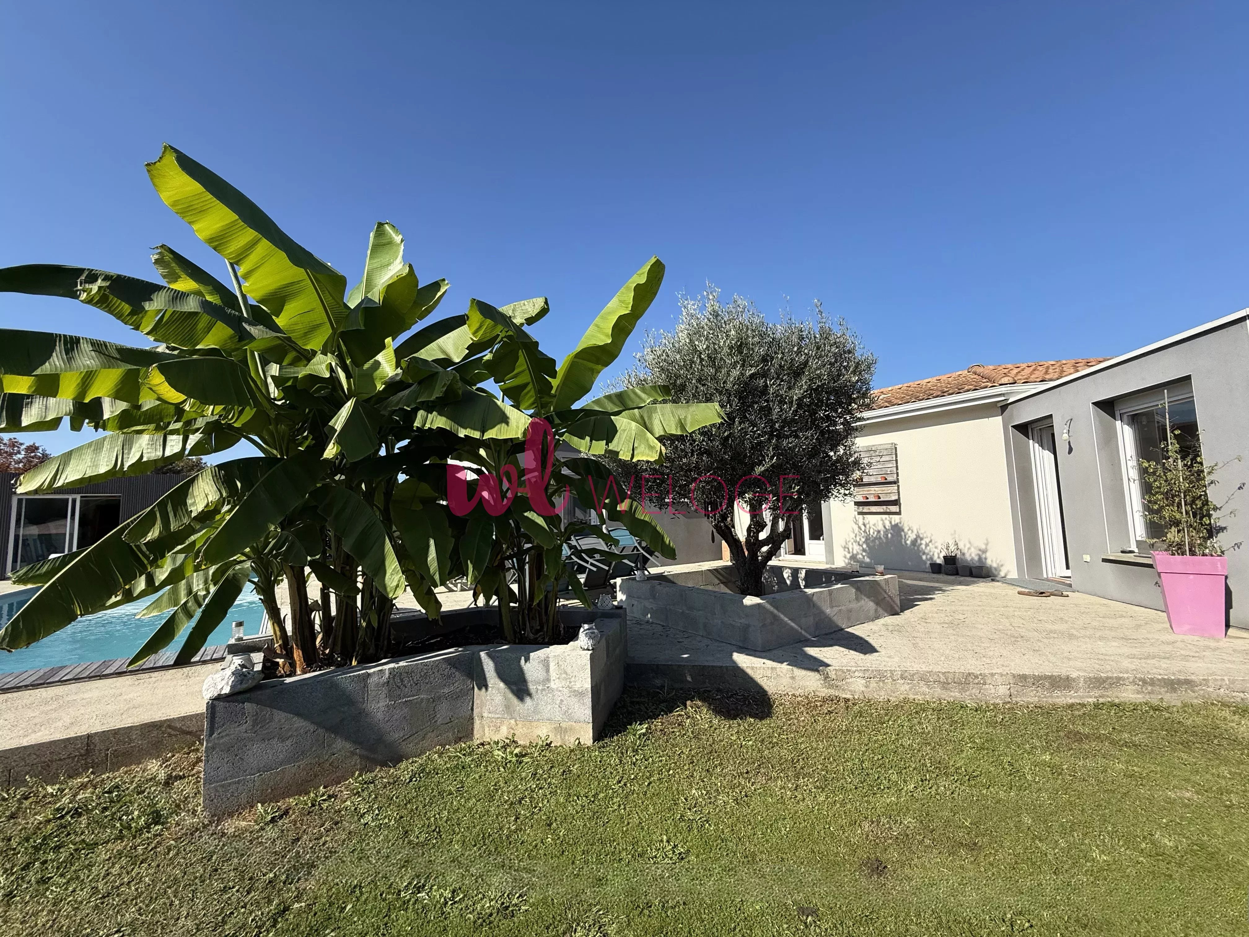 Située dans un environnement très calme sur la commune de Pouydesseaux, votre agent Weloge Teddy Jego vous propose à la vente en exclusivité cette belle maison contemporaine construite en 2006 sur un terrain clos de 1 664 m². Dès l’entrée équipée d'un placard, vous découvrirez une vaste pièce de vie composée d’une cuisine équipée ouverte sur le séjour, le tout prolongé par un salon très lumineux agrémenté d’une cheminée. Un cellier attenant vient compléter cet espace de jour fonctionnel et convivial. L'espace nuit est parfaitement agencé pour une vie de famille et comprend trois belles chambres ainsi qu'une superbe suite parentale. Cette dernière constitue un véritable atout avec son dressing, ses toilettes indépendantes et sa salle de bains privative dotée d'une baignoire et d'une douche, le tout s'ouvrant directement sur la terrasse avec une vue imprenable sur la piscine. Pour plus de confort, la maison dispose également d’une seconde salle d’eau avec douche et d’un autre WC séparé. À l’extérieur, la propriété invite à la détente grâce à sa terrasse et sa piscine au sel de 10 mètres par 4 accompagnée de son local technique et d'un abri de jardin. En complément du garage, vous bénéficierez d'un local attenant polyvalent, idéal pour aménager un bureau indépendant, exercer une activité professionnelle ou créer une salle de jeux supplémentaire. Classée en DPE B, cette maison offre un confort thermique optimal et des économies d'énergie significatives grâce à ses équipements récents, notamment l'installation de panneaux solaires et de climatisations réversibles. Sa localisation est stratégique puisqu'elle permet de profiter de la quiétude des lieux tout en étant à seulement quinze minutes du centre-ville de Mont-de-Marsan et à proximité immédiate des accès à l'autoroute A65 vers Bordeaux ou Pau. De plus, la maison bénéficie d'un emplacement porteur d'avenir avec la future gare TGV prévue à Lucbardez-et-Bargues, qui se situera à seulement dix minutes. Ce bien est proposé au prix de 369 000 euros. Contactez-moi pour planifier une visite.